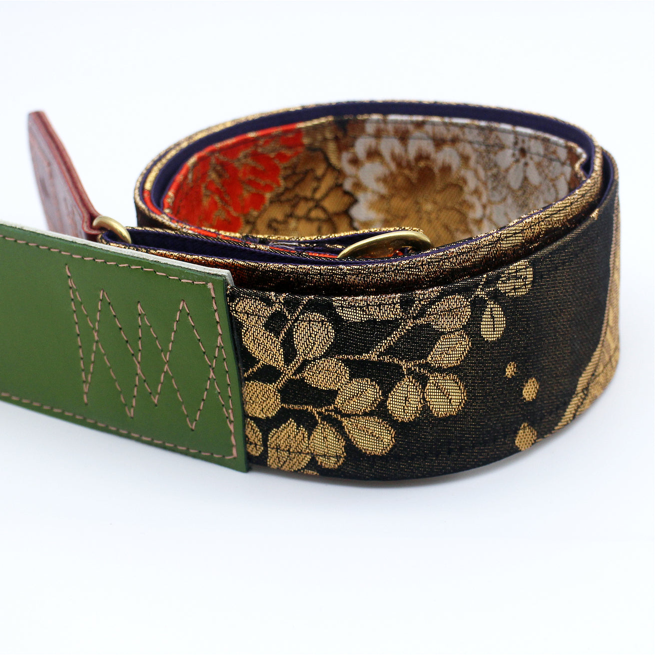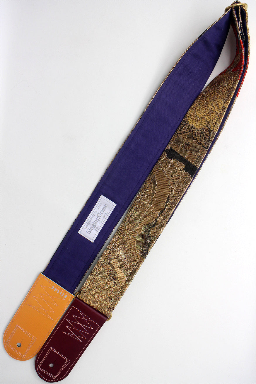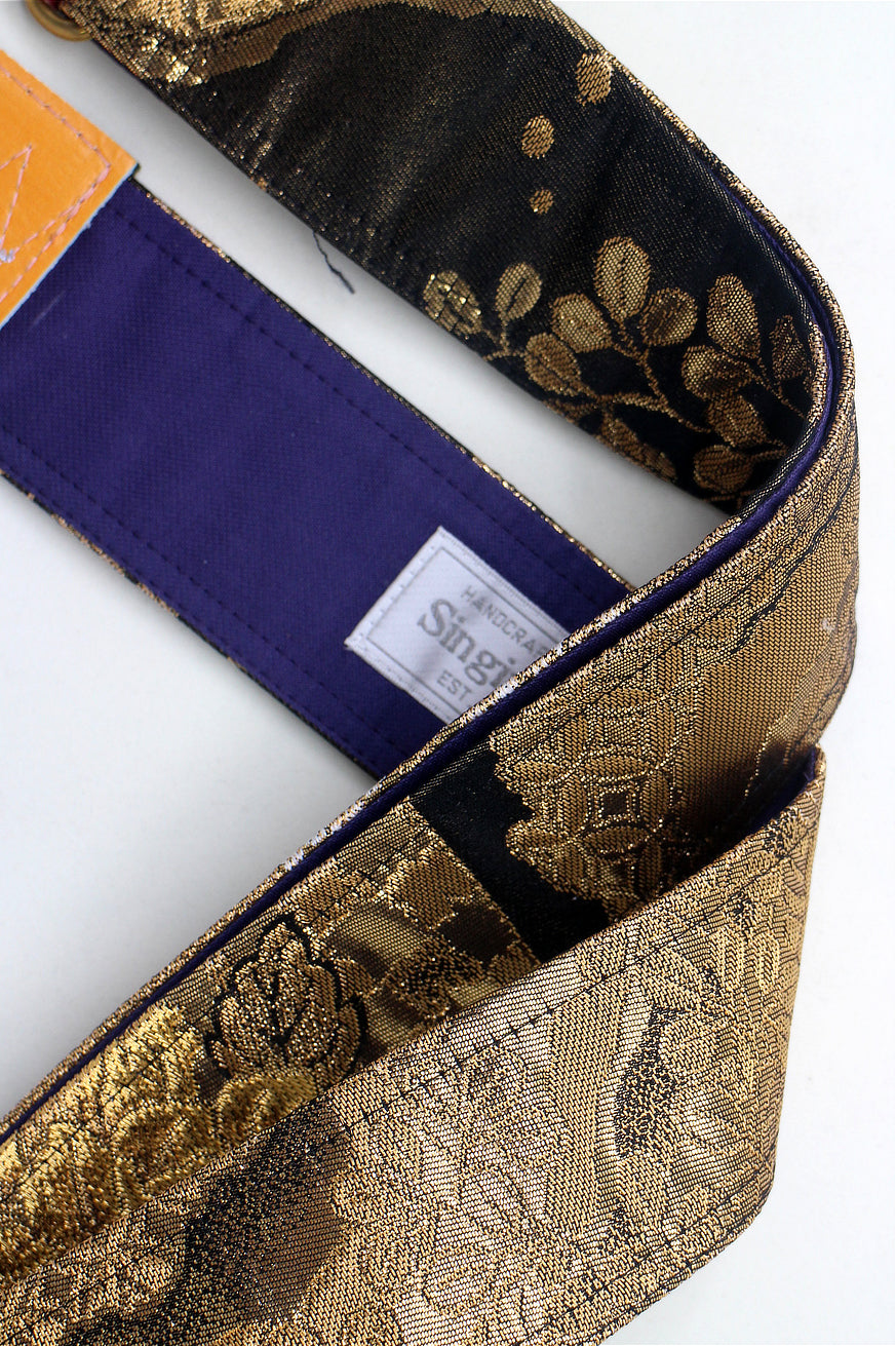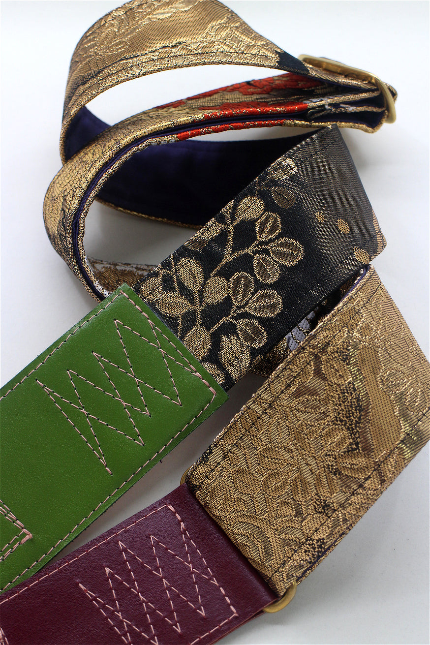 Unique and beautiful guitar strap [SC325122] - hand made in Japan from recycled silk woven kimono obi, leather and brass
