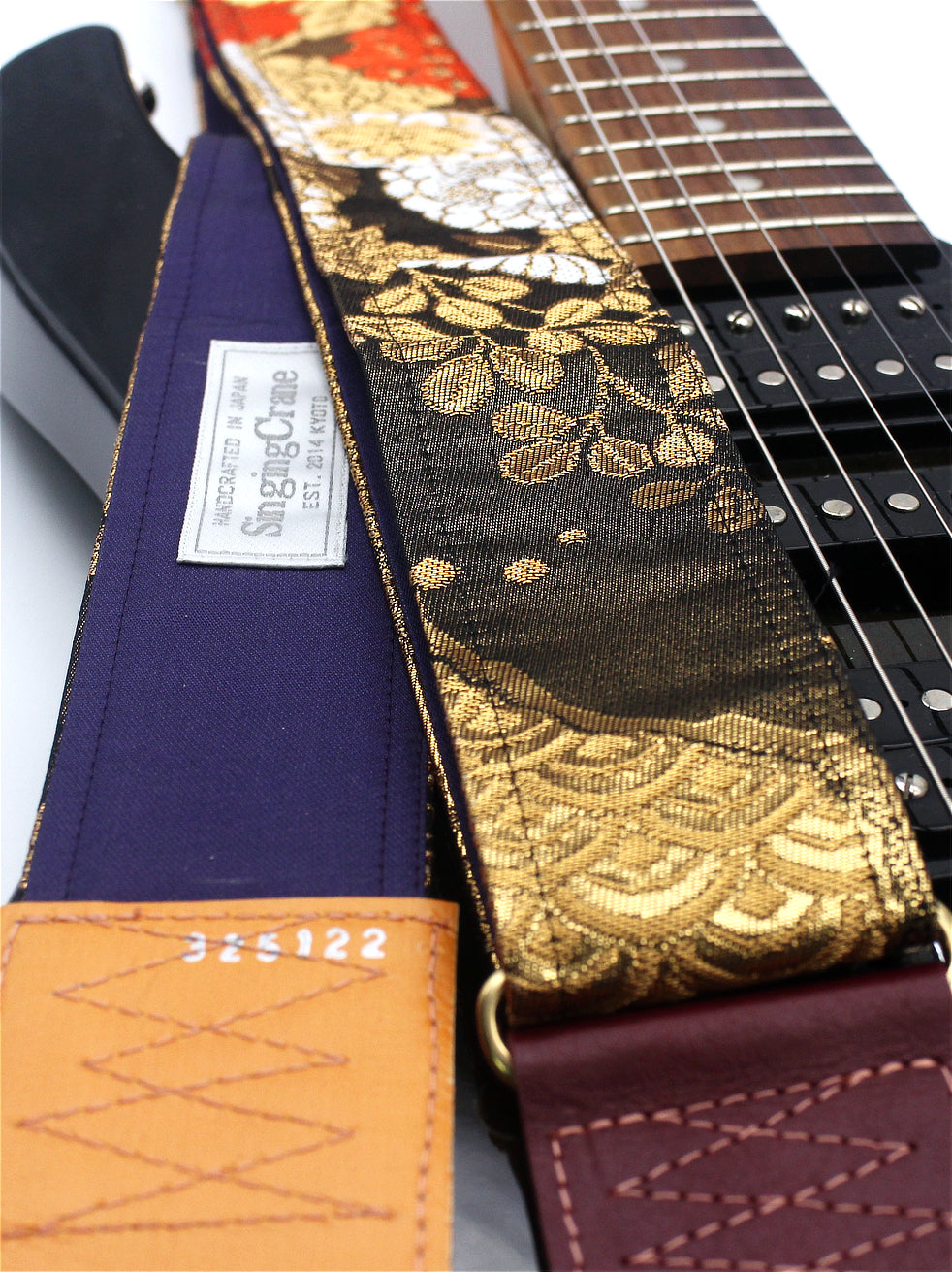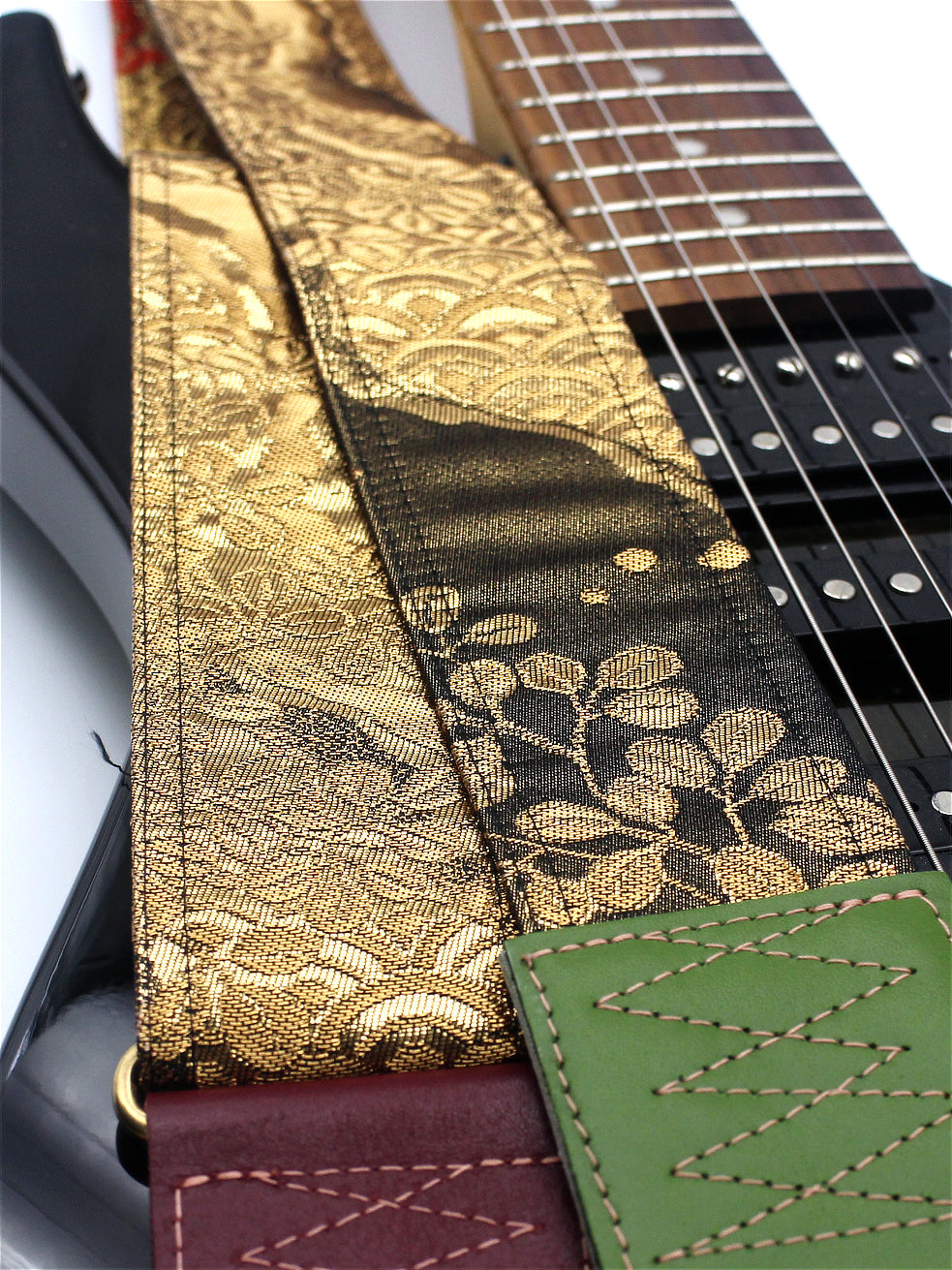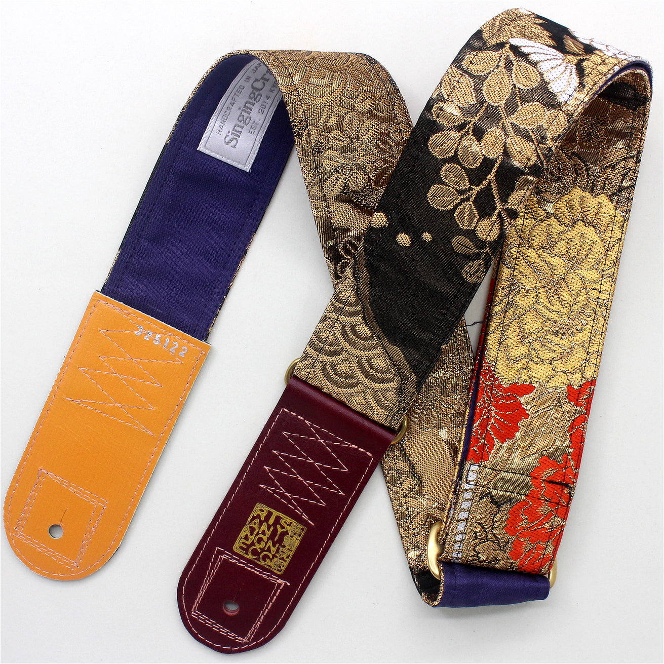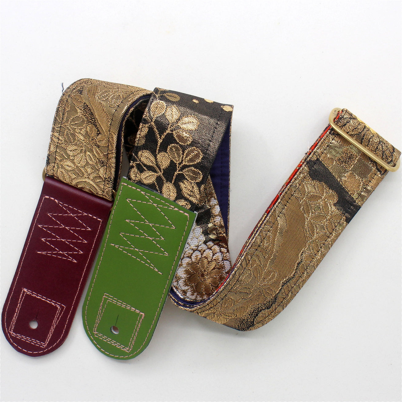 Unique and beautiful guitar strap [SC325122] - hand made in Japan from recycled silk woven kimono obi, leather and brass