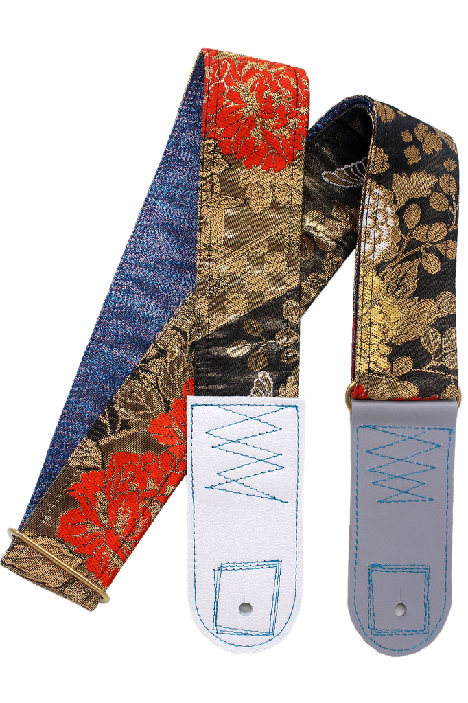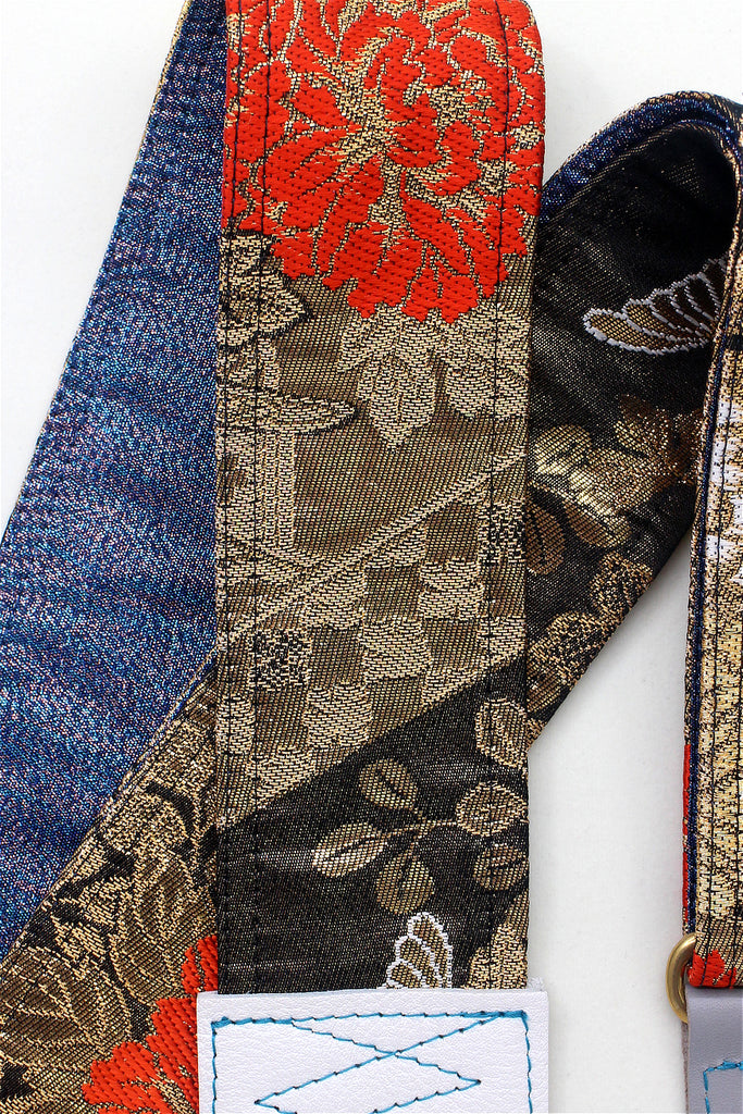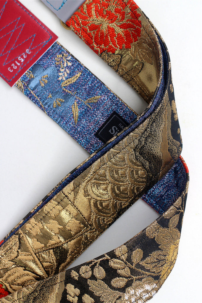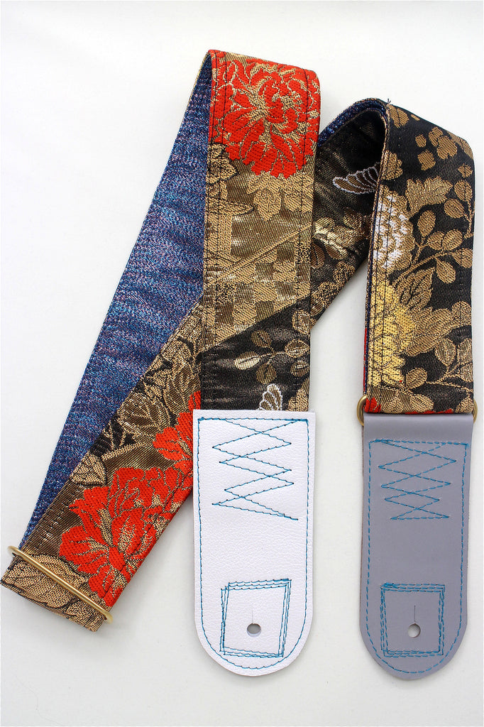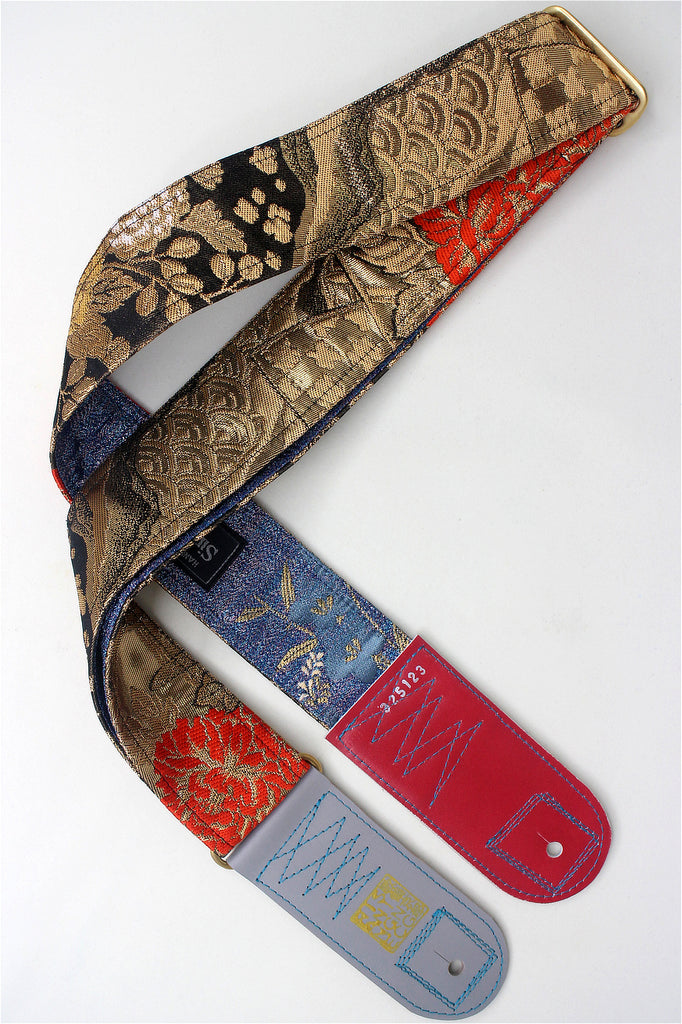 Unique and beautiful guitar strap [SC325123] - hand made in Japan from recycled silk woven kimono obi, leather and brass