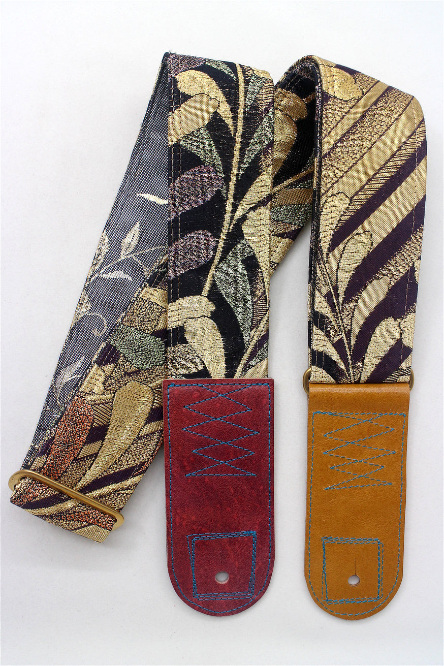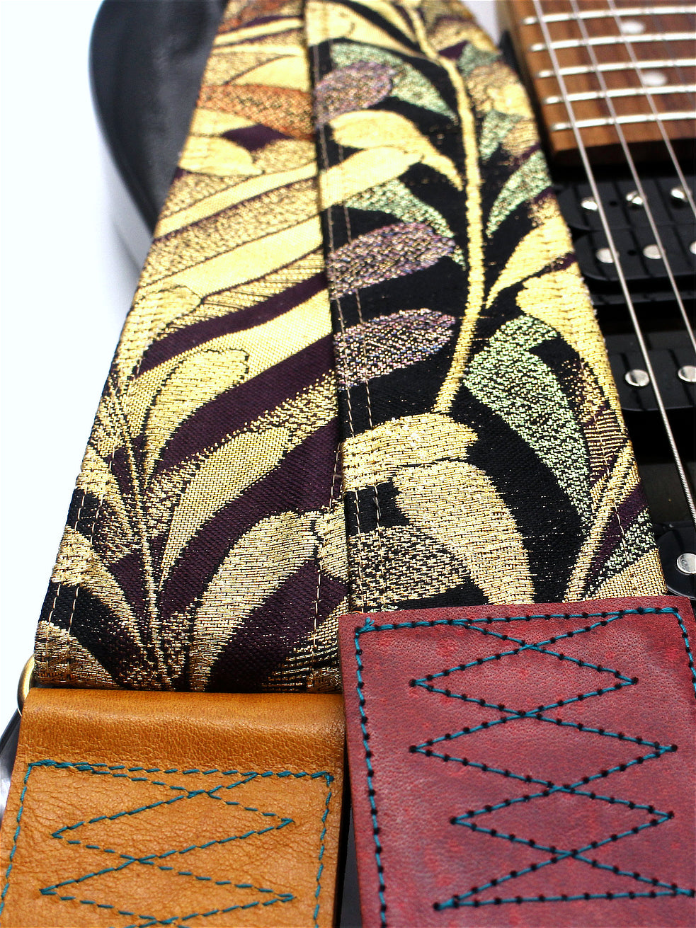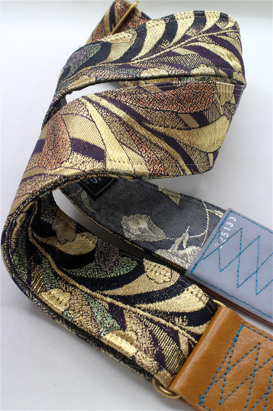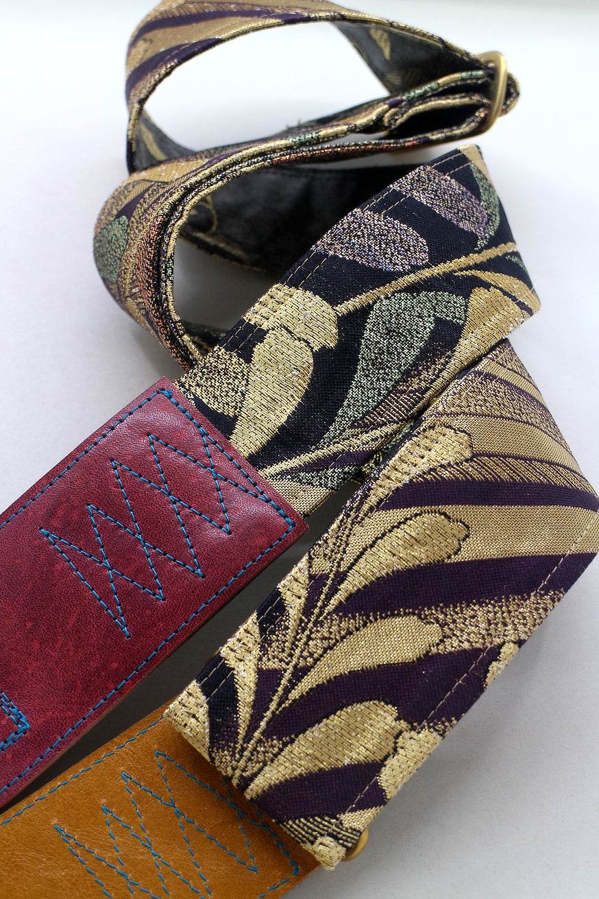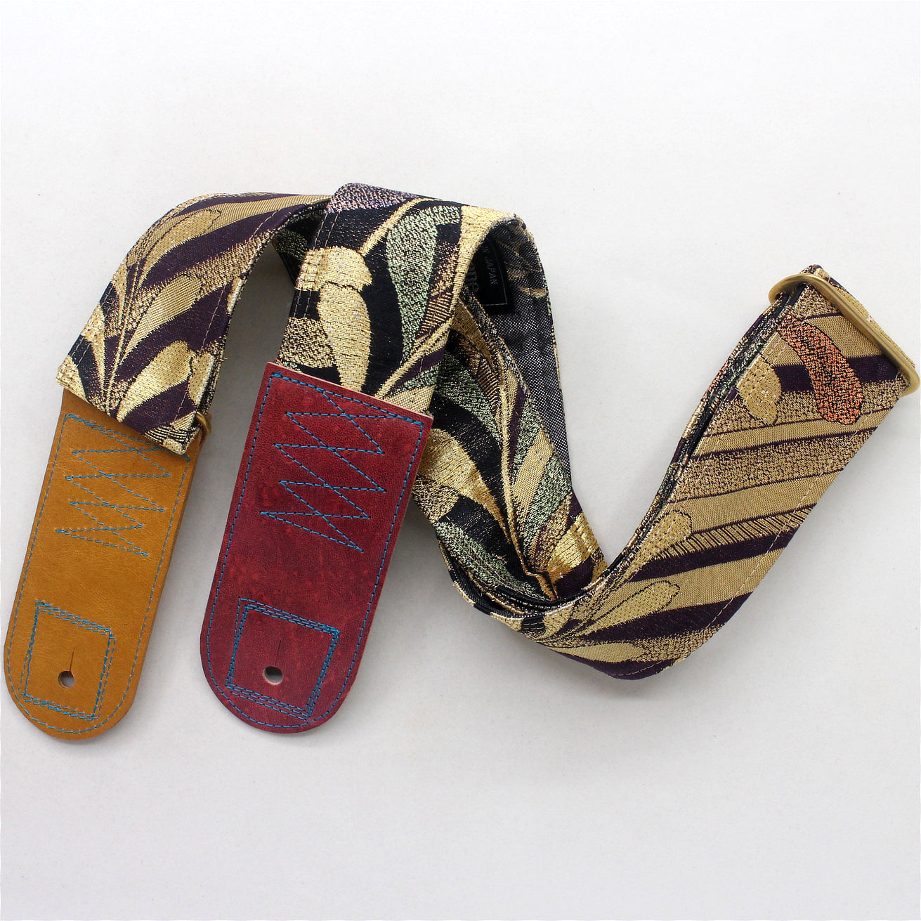 Unique and beautiful guitar strap [SC325133] - hand made in Japan from recycled silk woven kimono obi, leather and brass