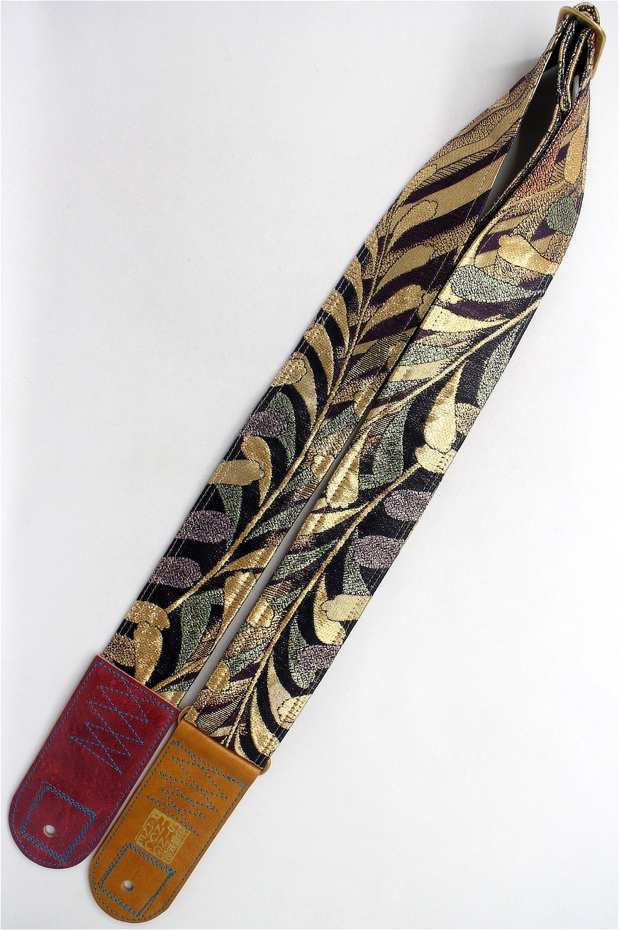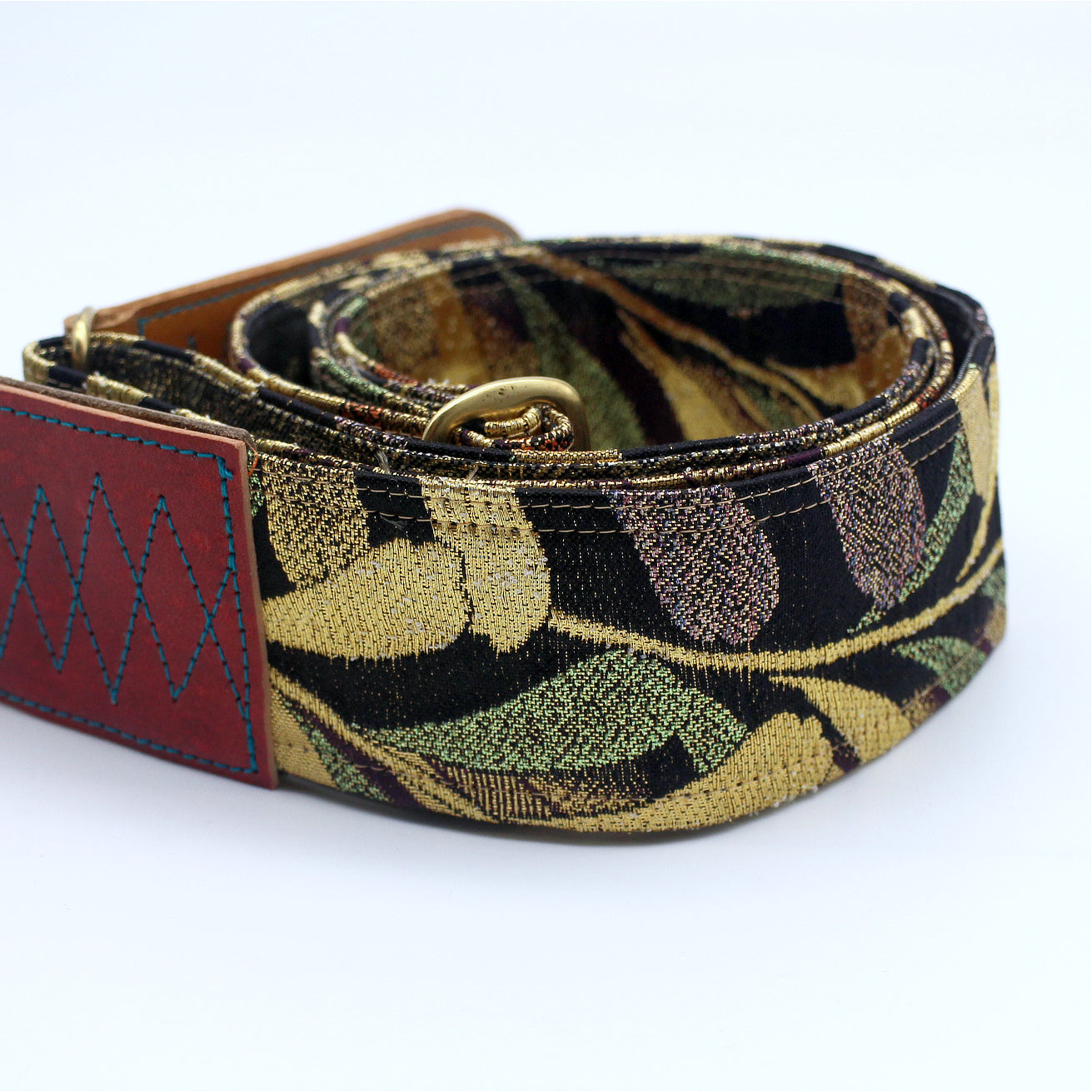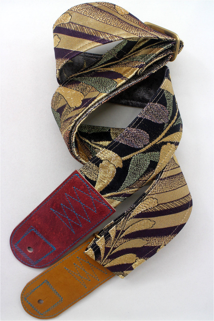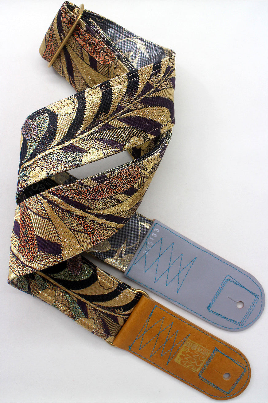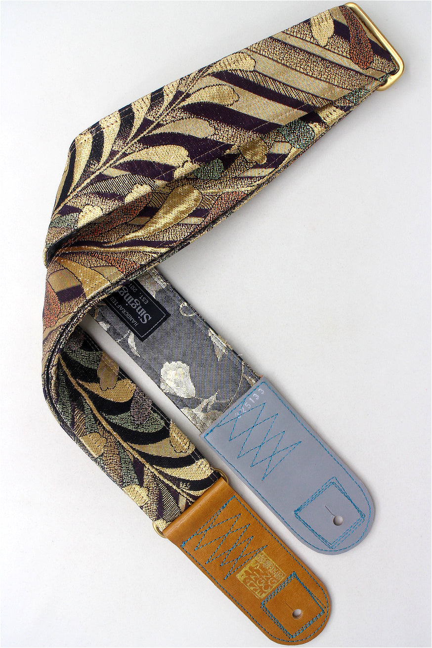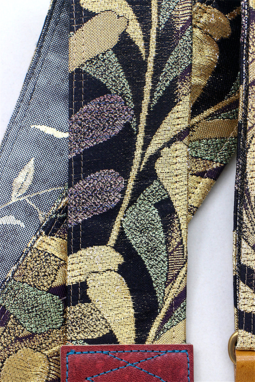 Unique and beautiful guitar strap [SC325133] - hand made in Japan from recycled silk woven kimono obi, leather and brass