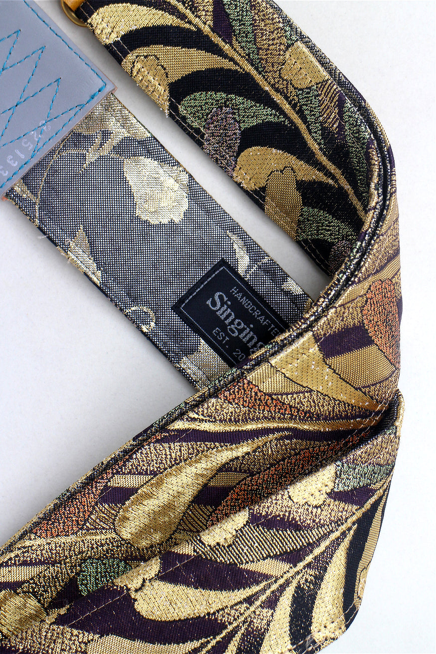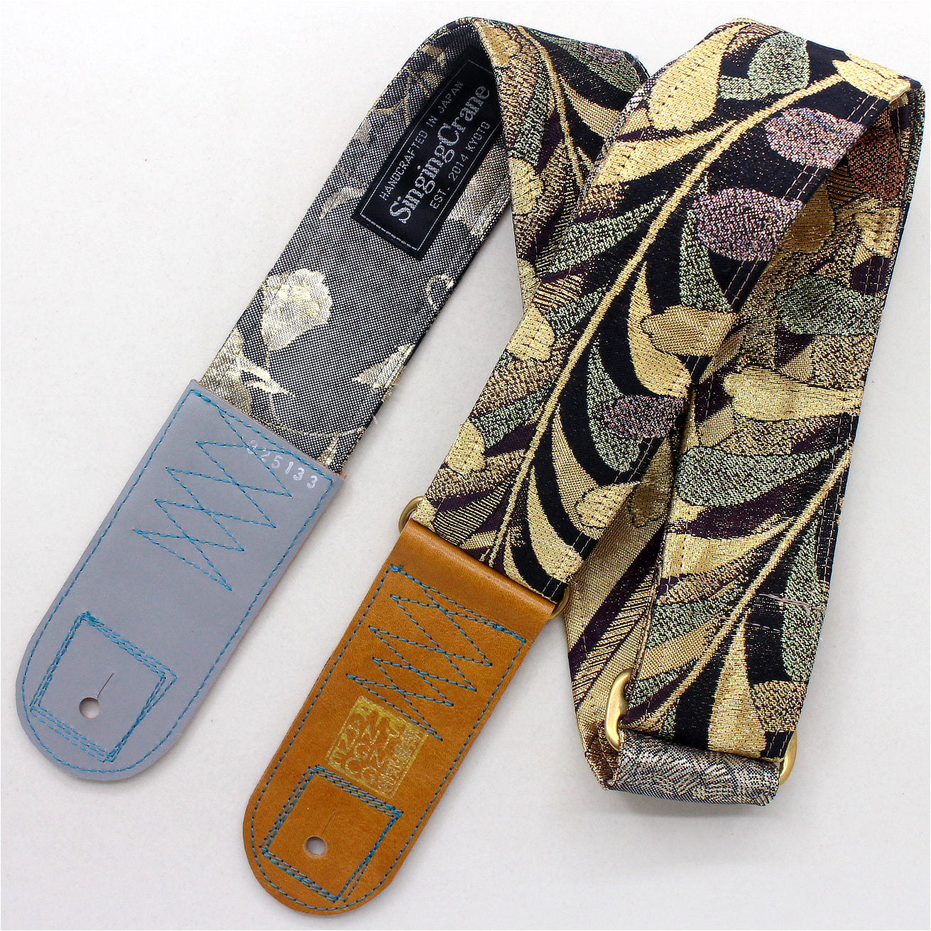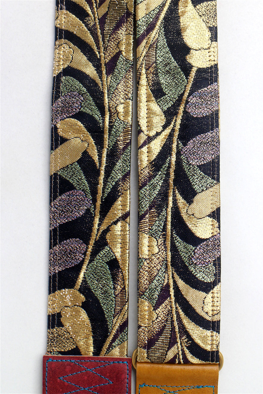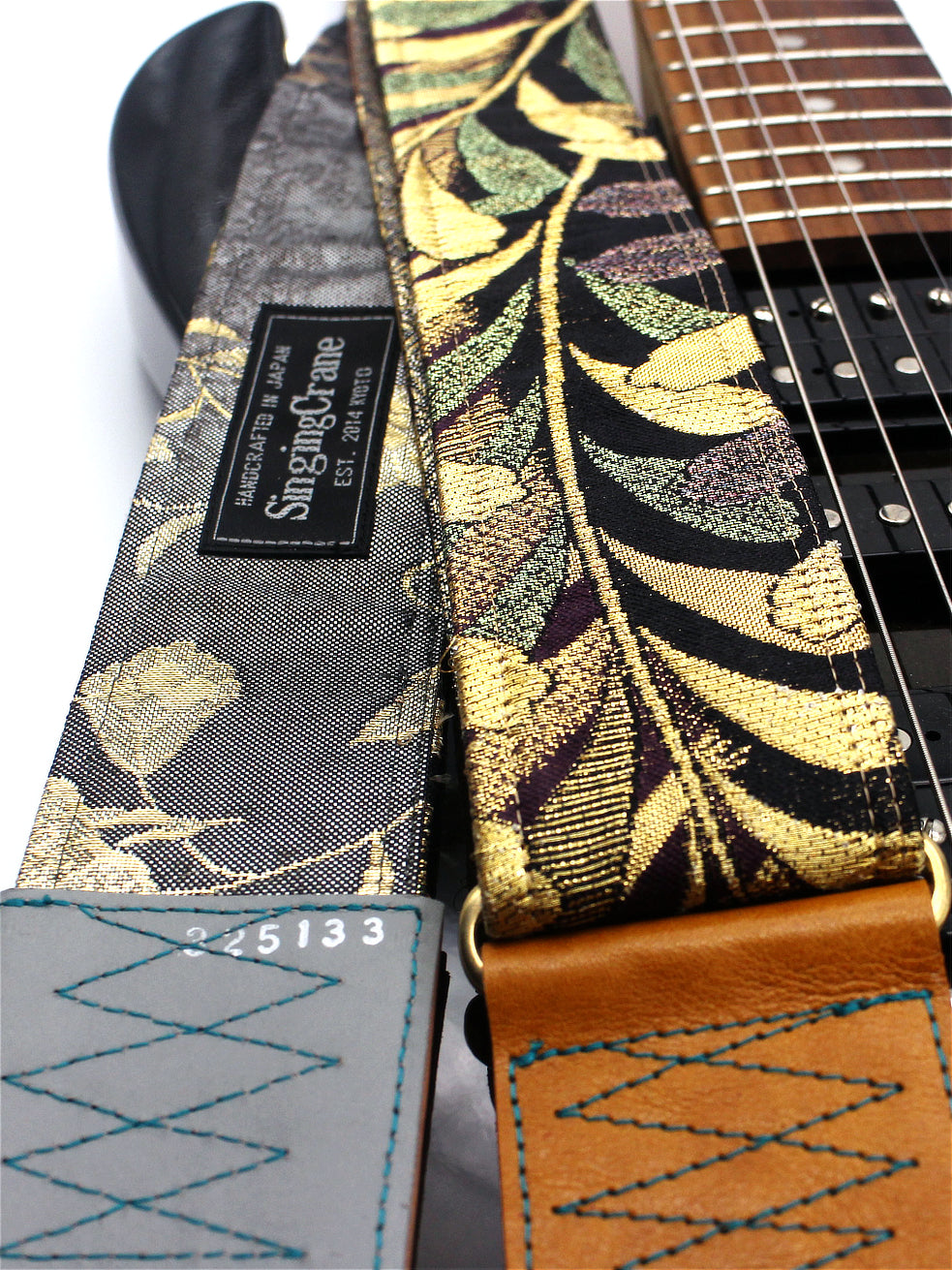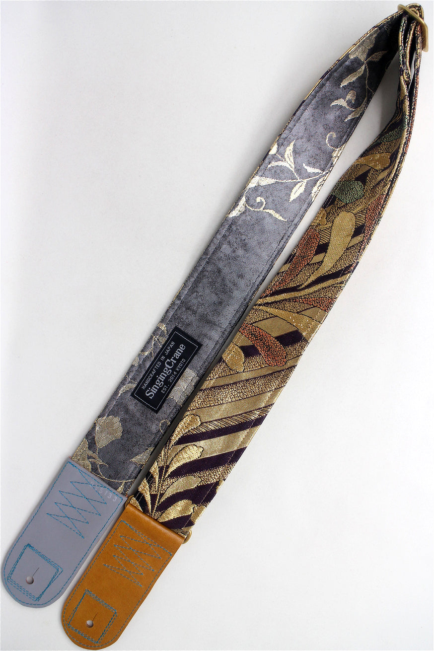Unique and beautiful guitar strap [SC325133] - hand made in Japan from recycled silk woven kimono obi, leather and brass