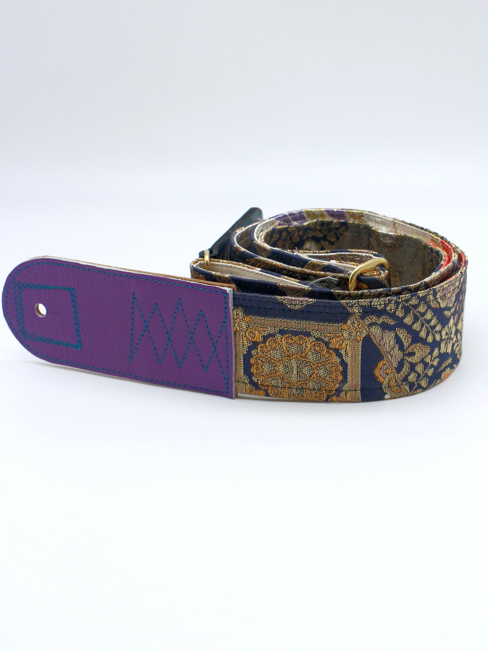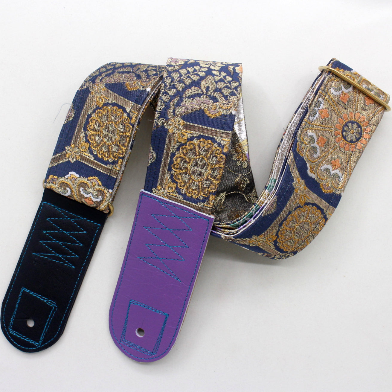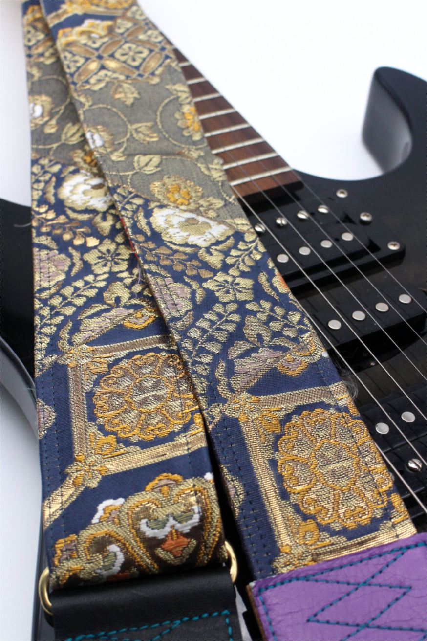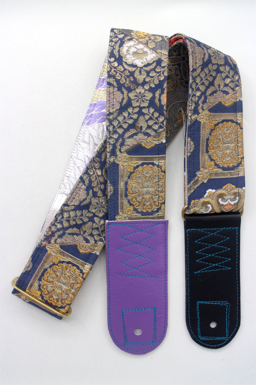 Unique and beautiful guitar strap [SC325151] - hand made in Japan from recycled silk woven kimono obi, leather and brass