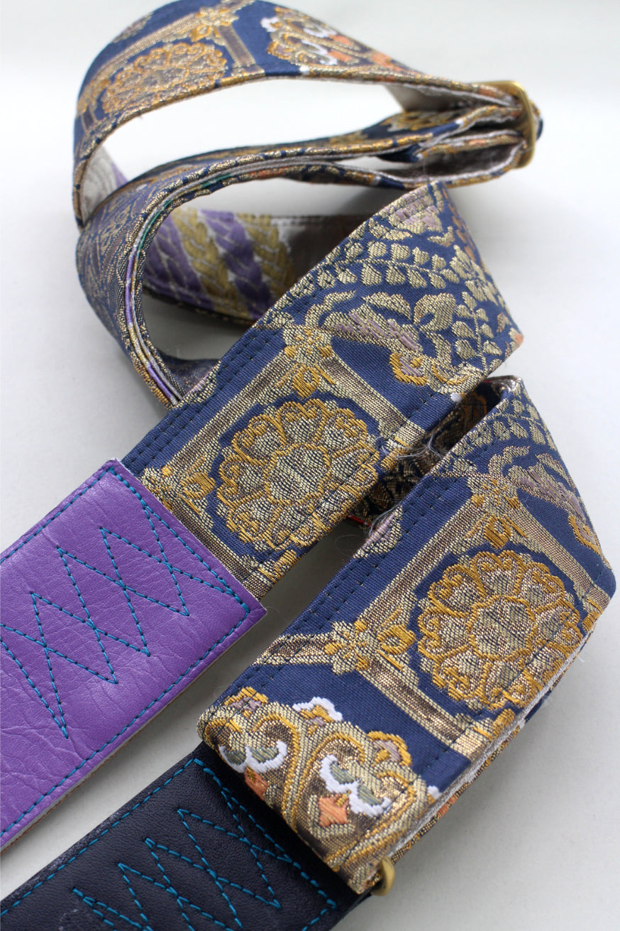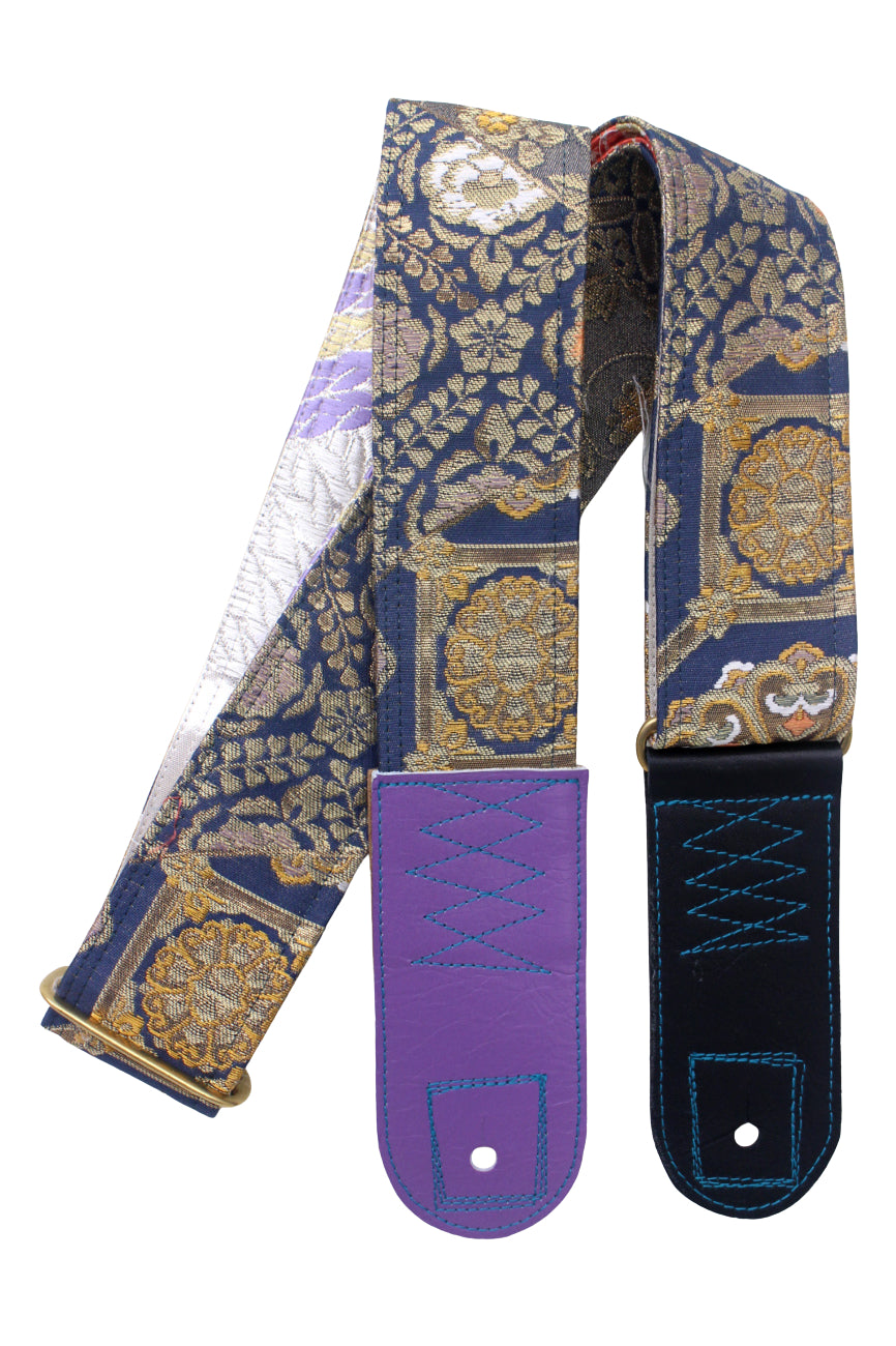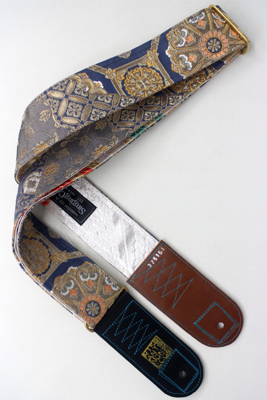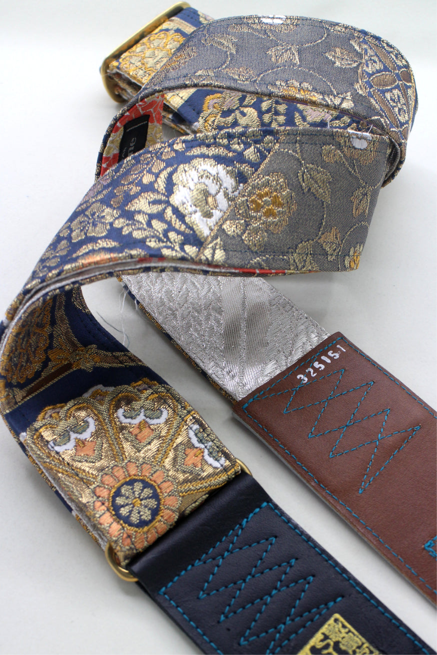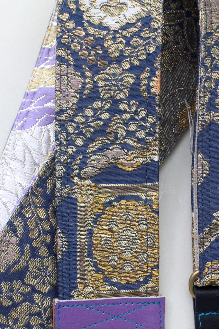 Unique and beautiful guitar strap [SC325151] - hand made in Japan from recycled silk woven kimono obi, leather and brass