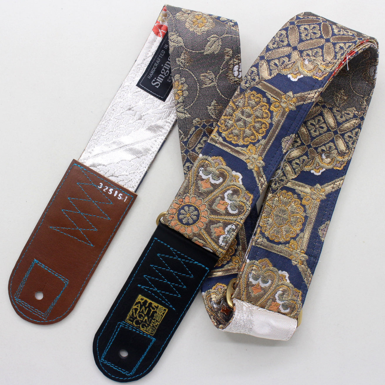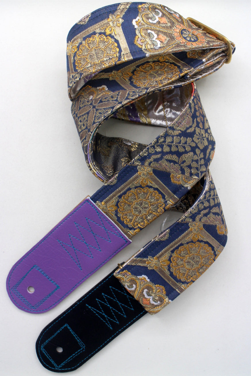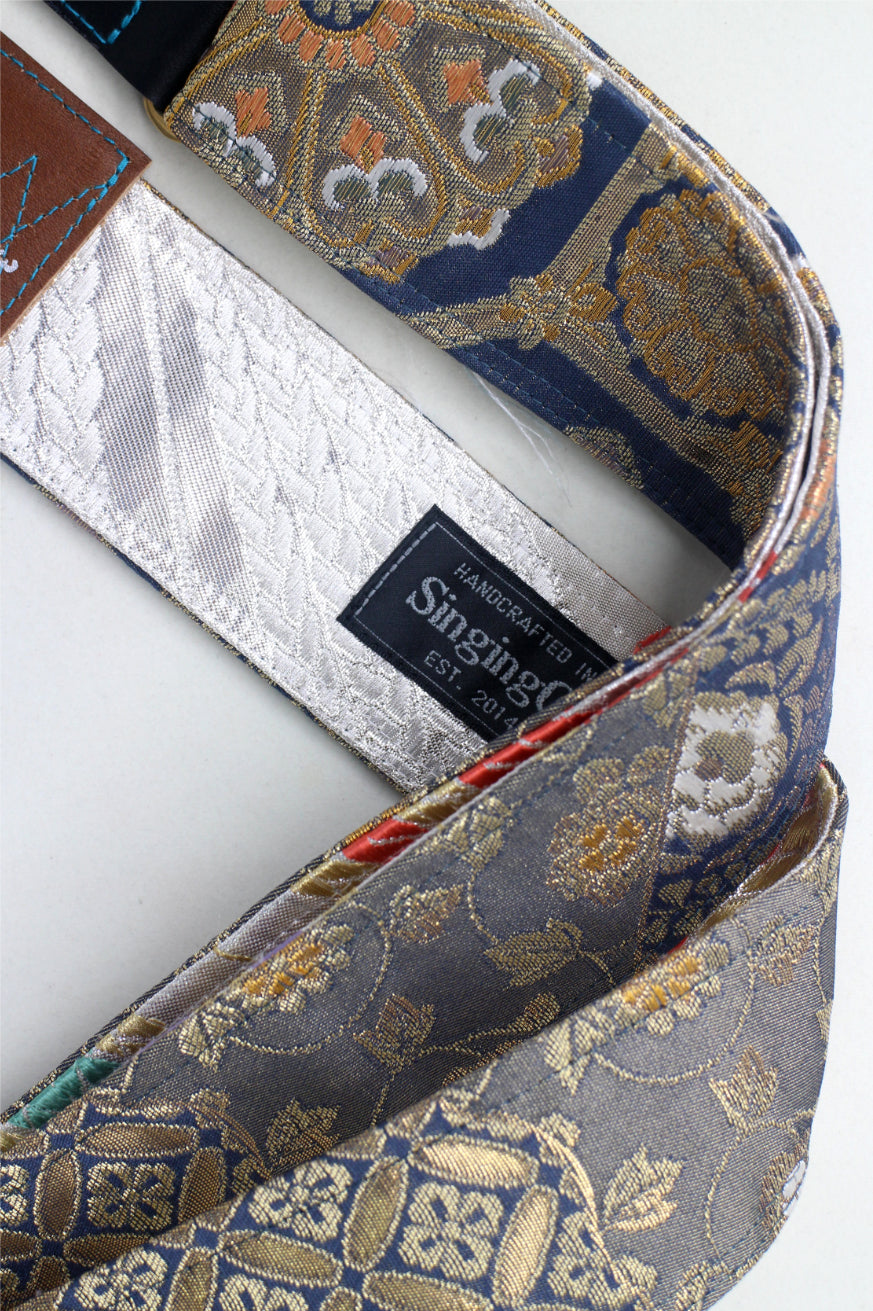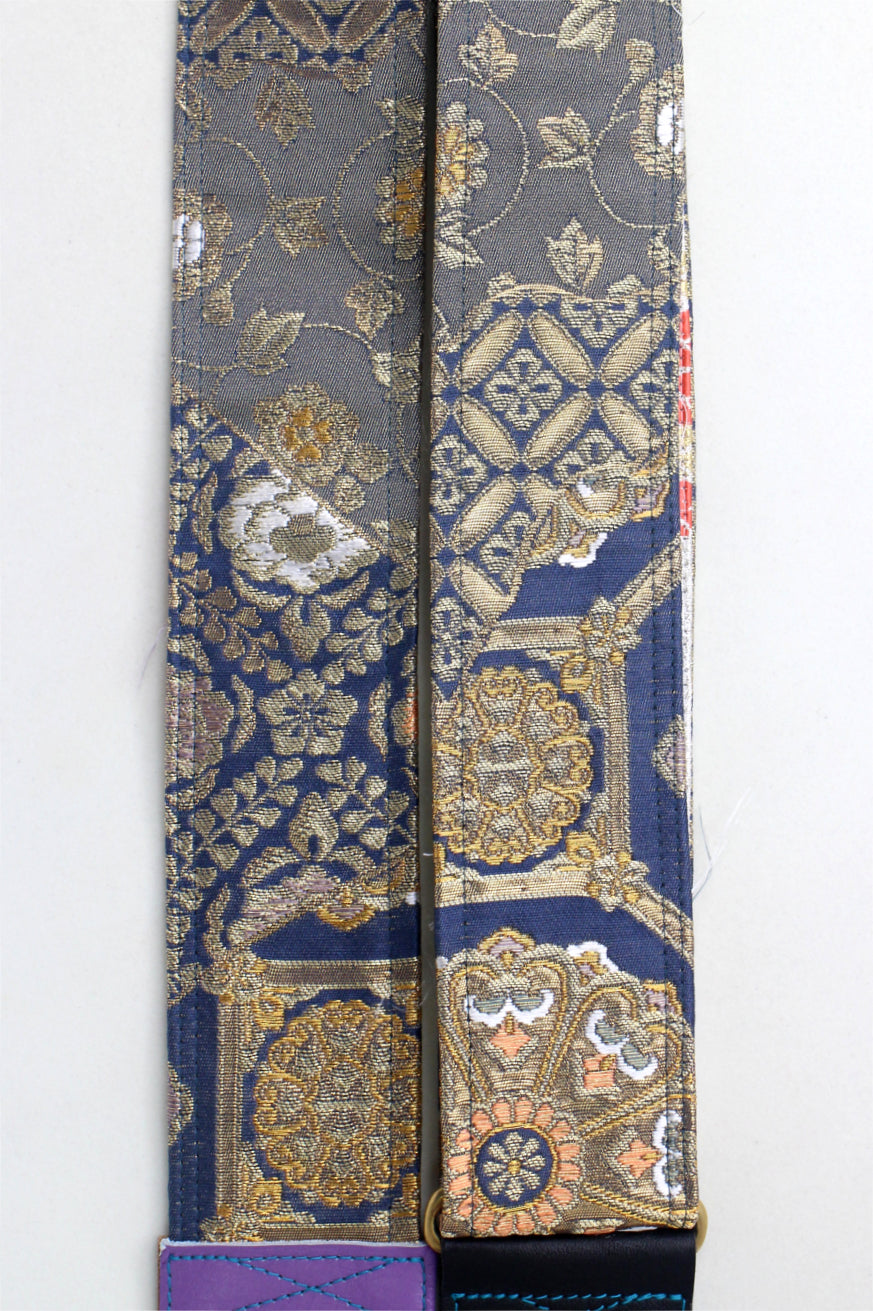 Unique and beautiful guitar strap [SC325151] - hand made in Japan from recycled silk woven kimono obi, leather and brass