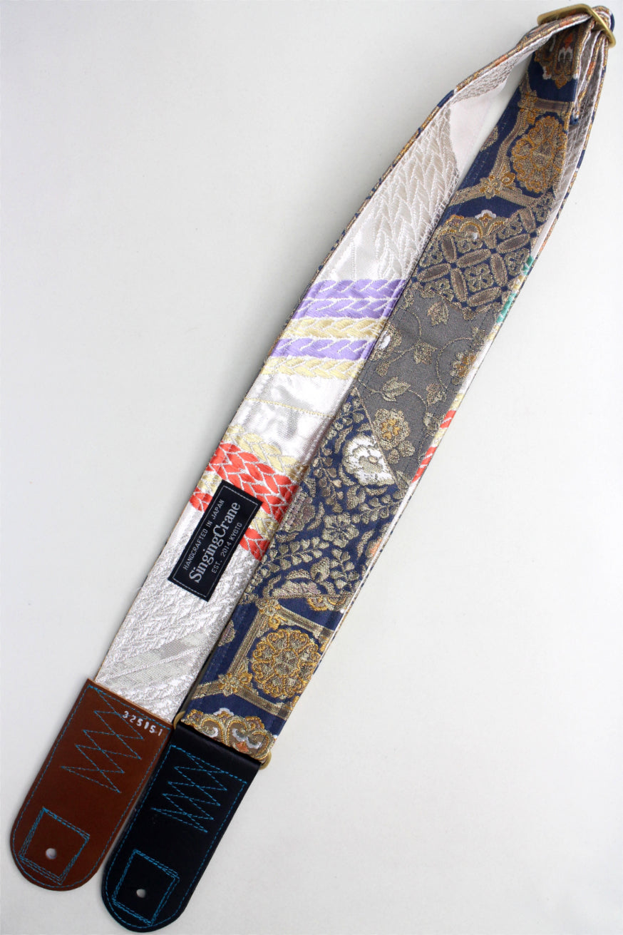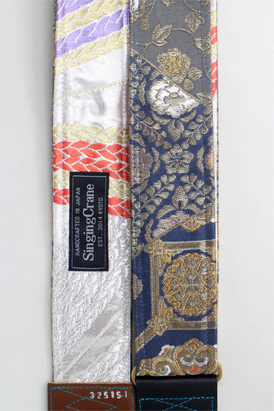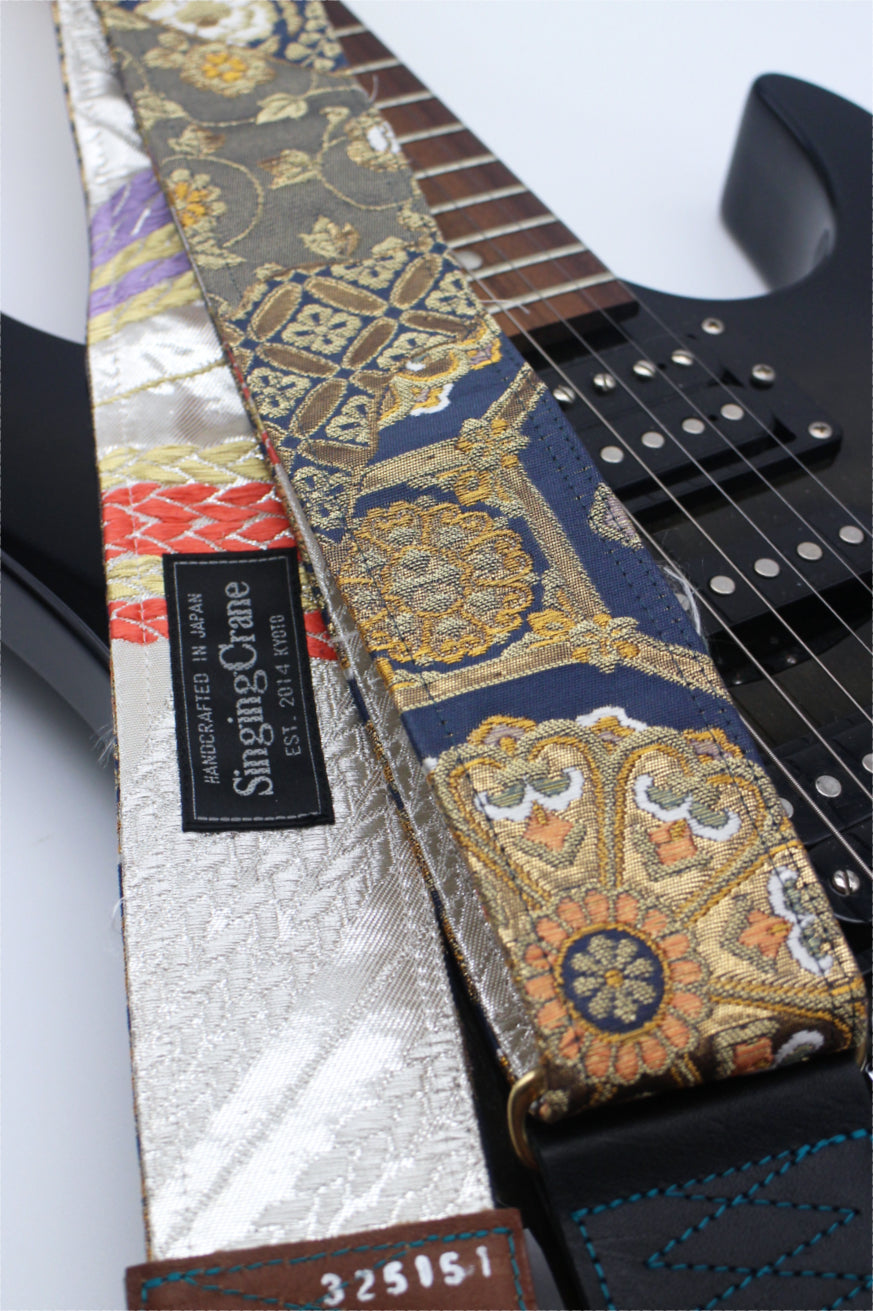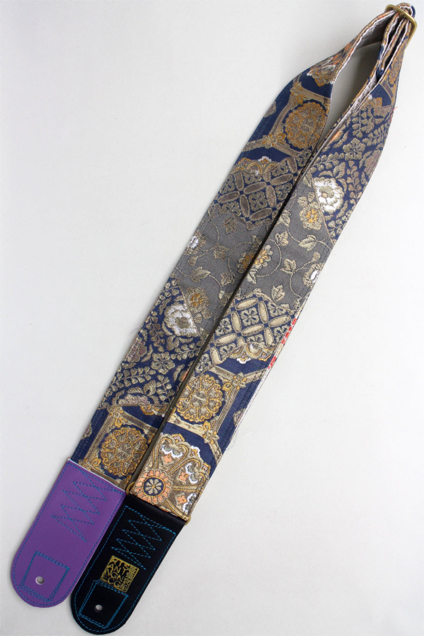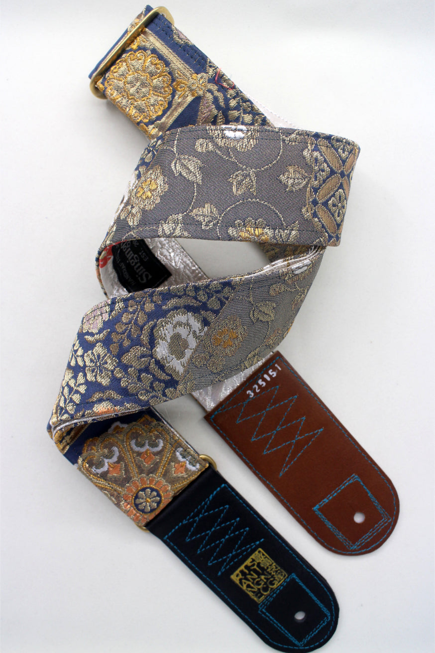 Unique and beautiful guitar strap [SC325151] - hand made in Japan from recycled silk woven kimono obi, leather and brass