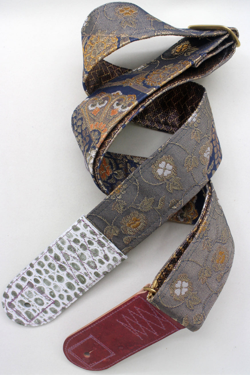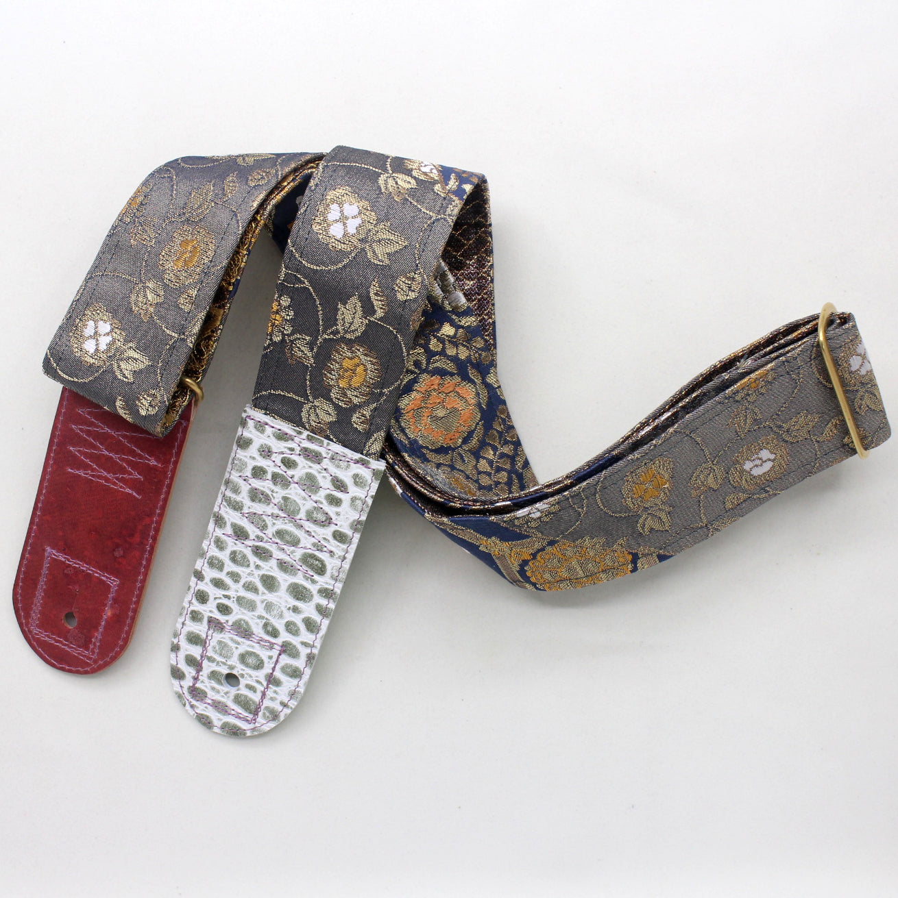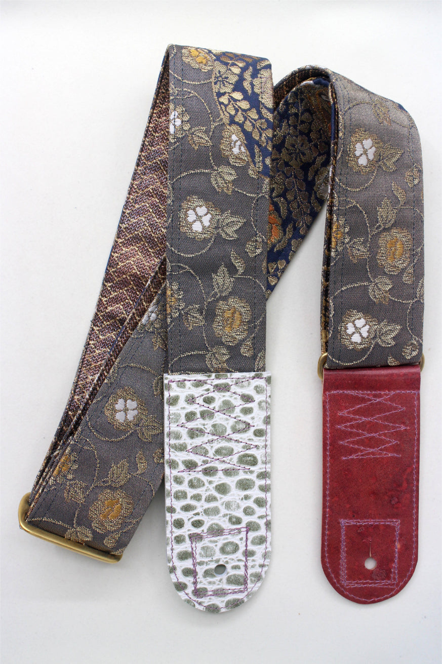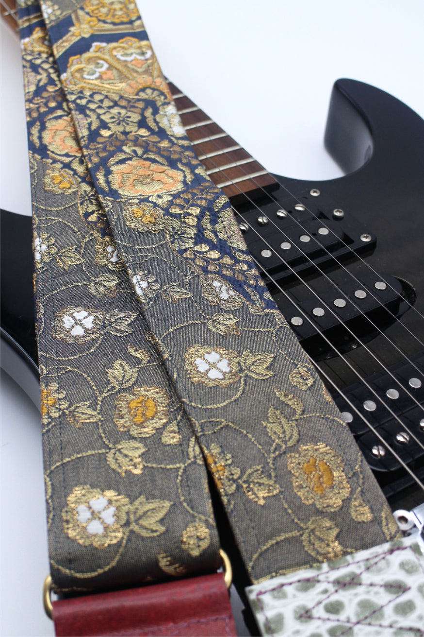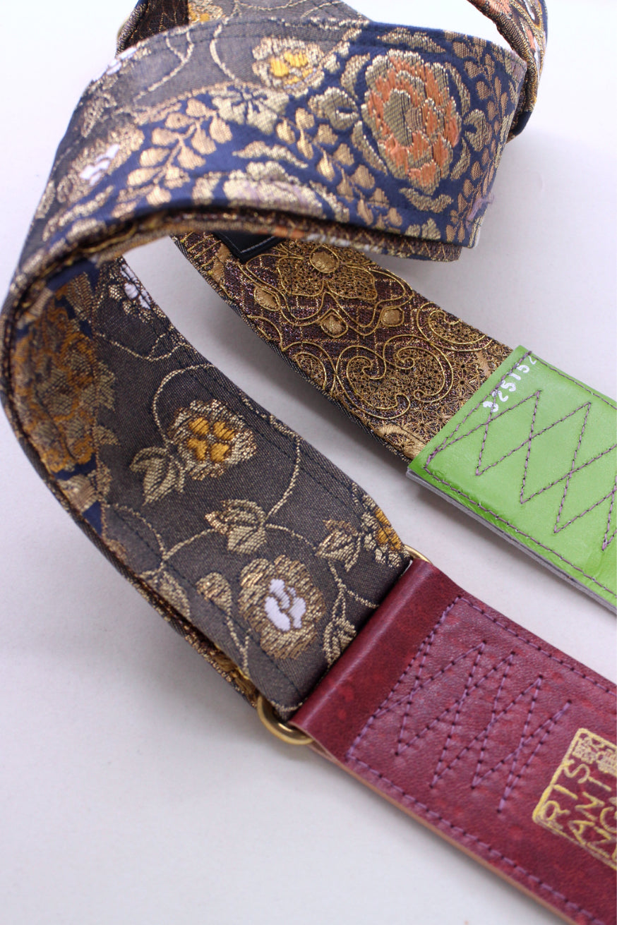 Unique and beautiful guitar strap [SC325152] - hand made in Japan from recycled silk woven kimono obi, leather and brass