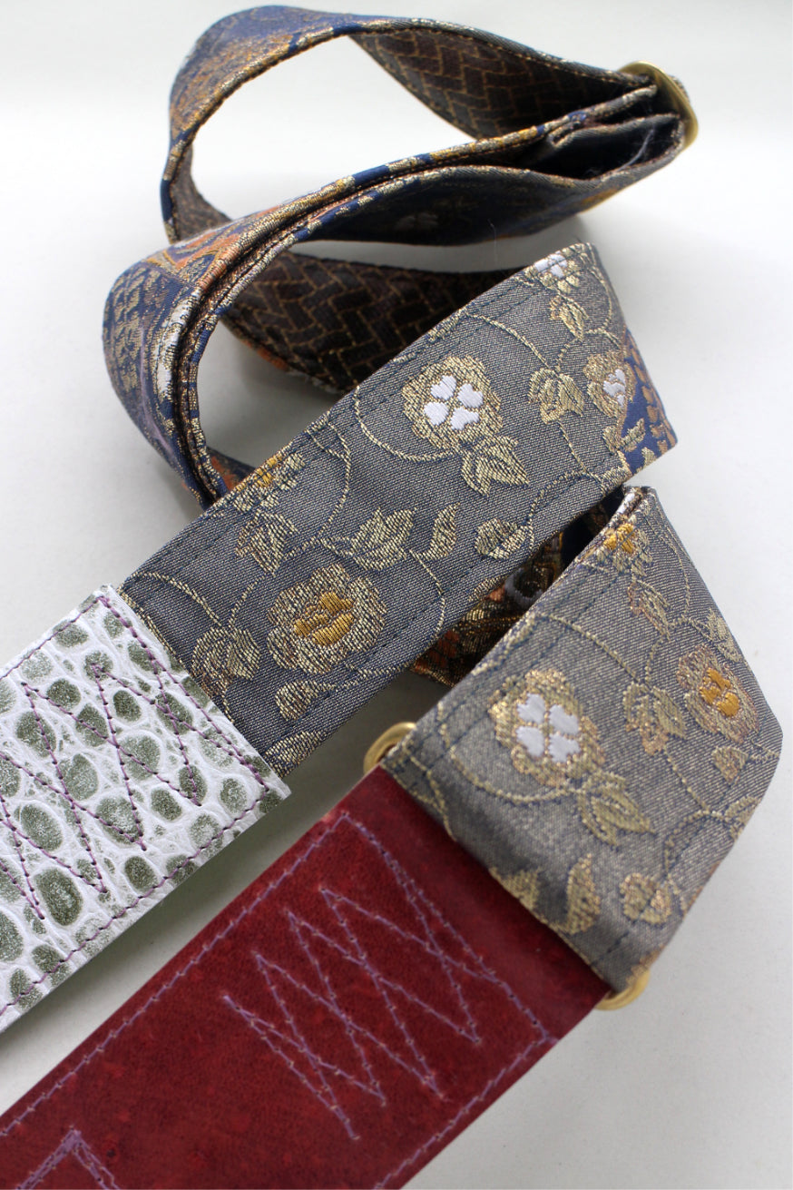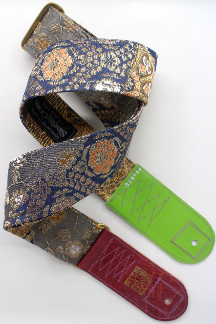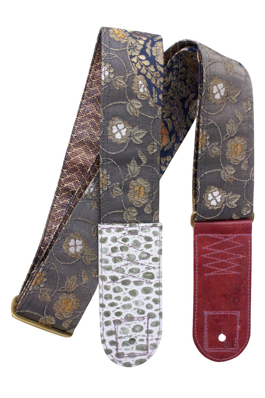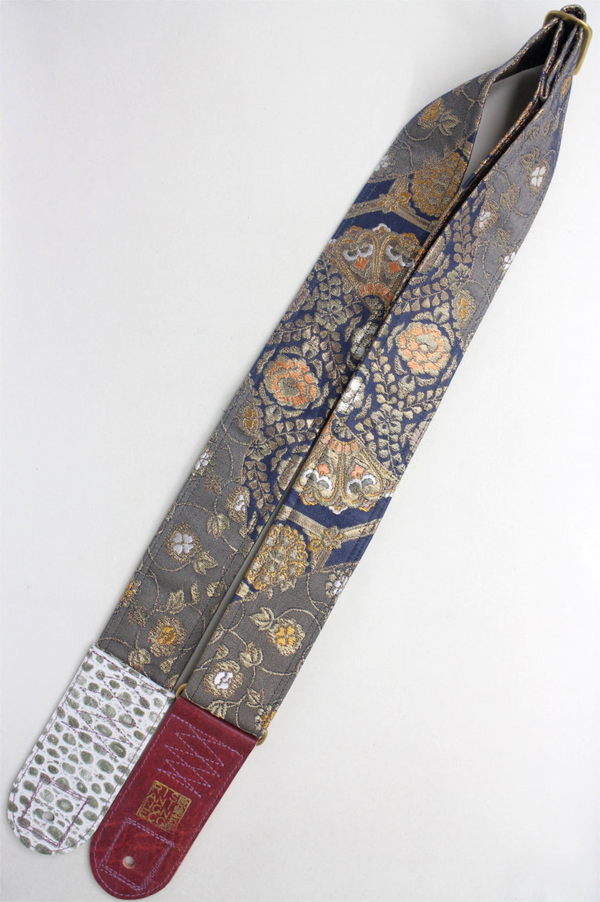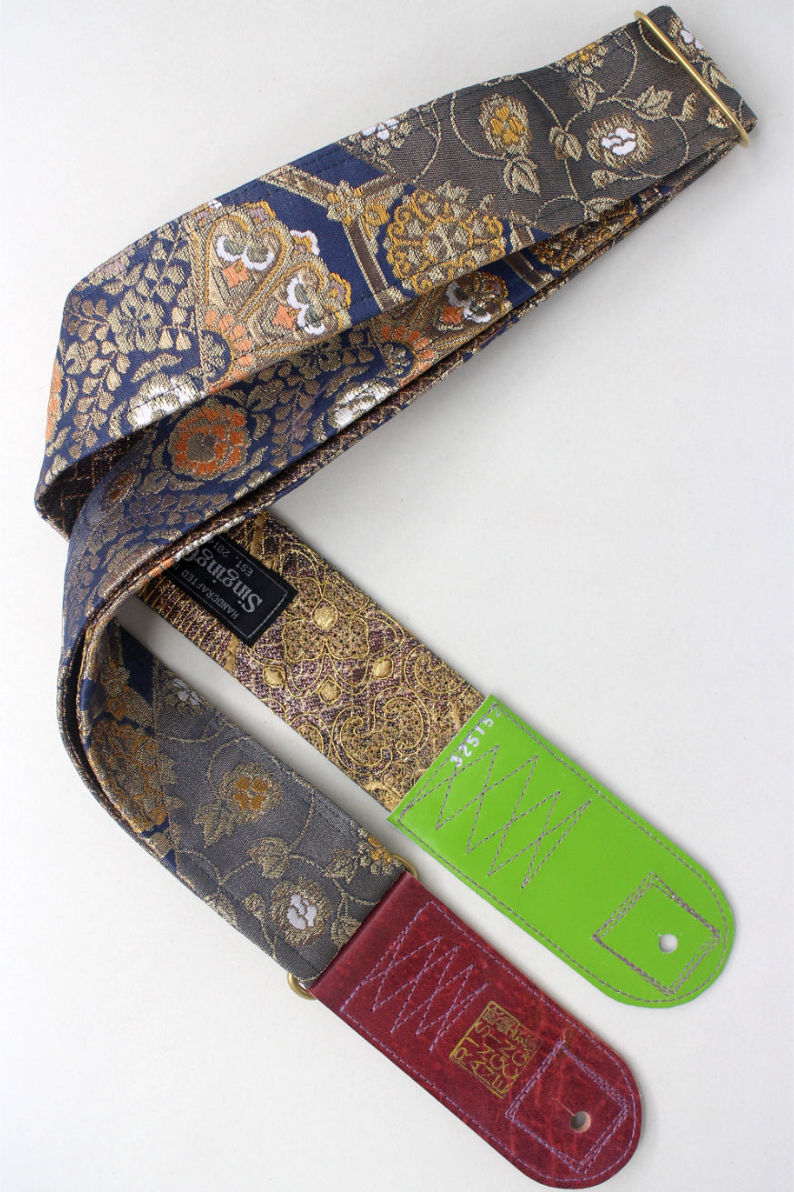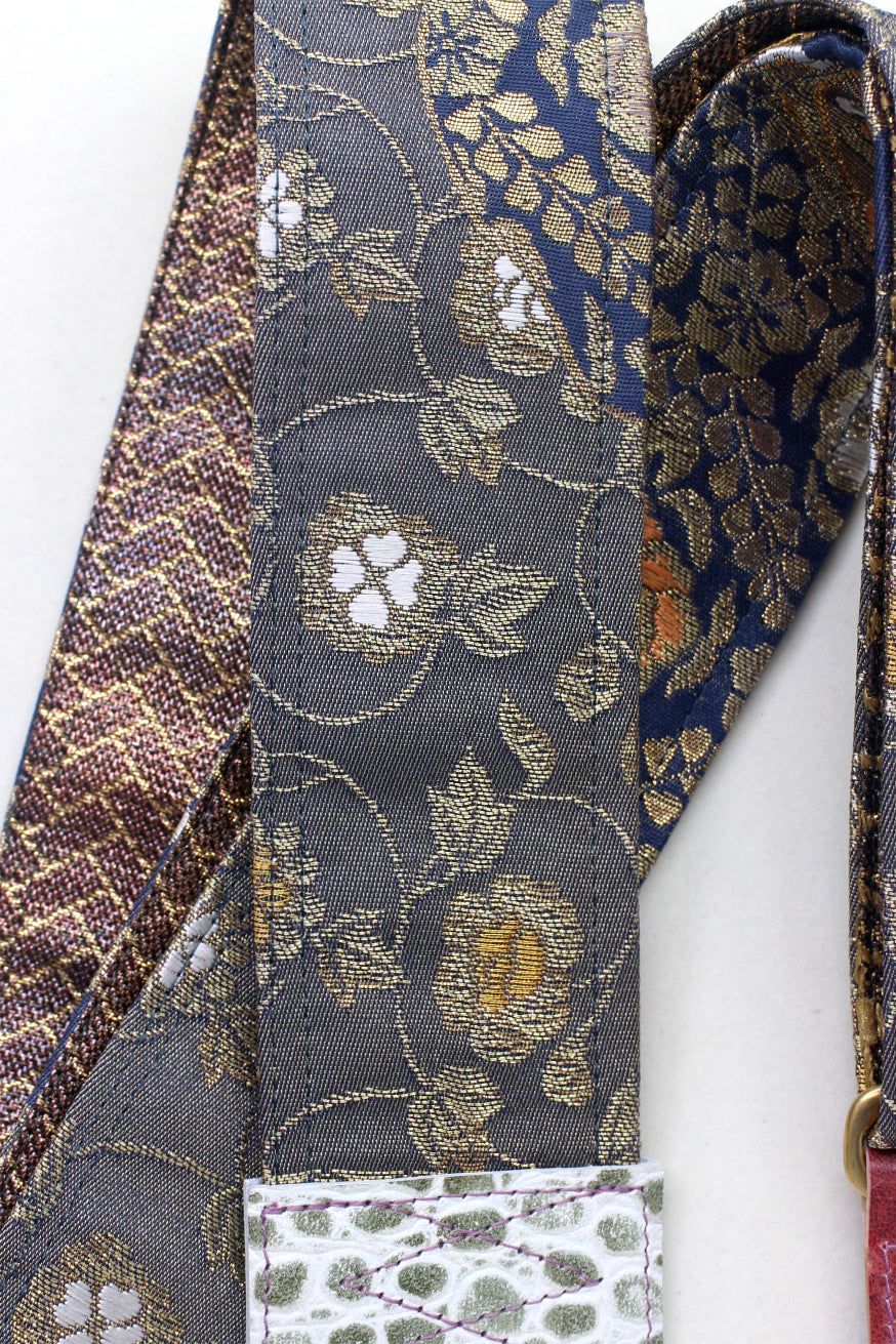 Unique and beautiful guitar strap [SC325152] - hand made in Japan from recycled silk woven kimono obi, leather and brass