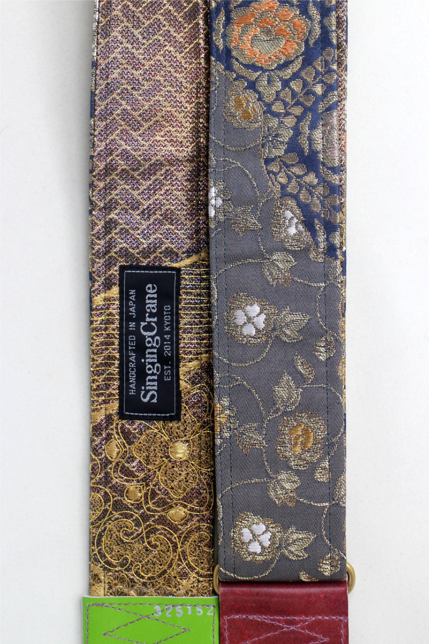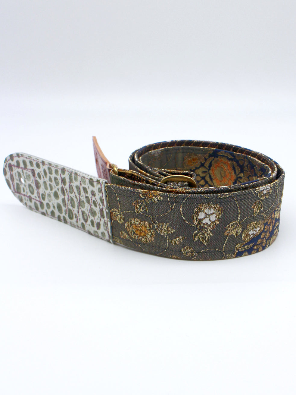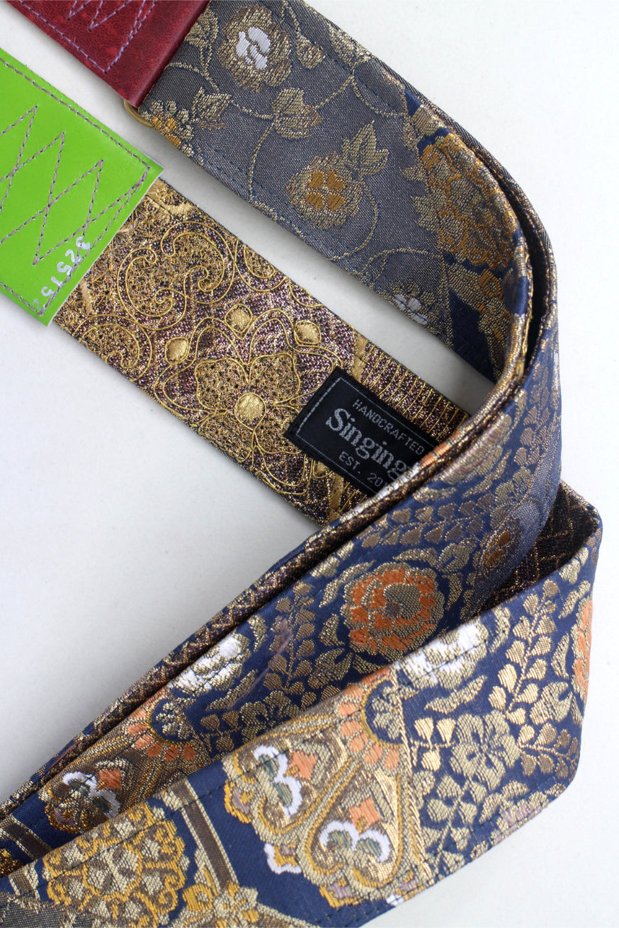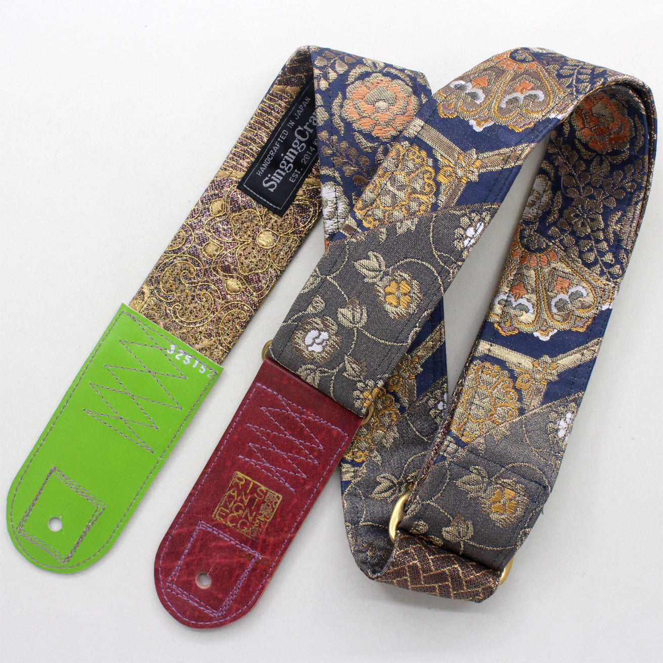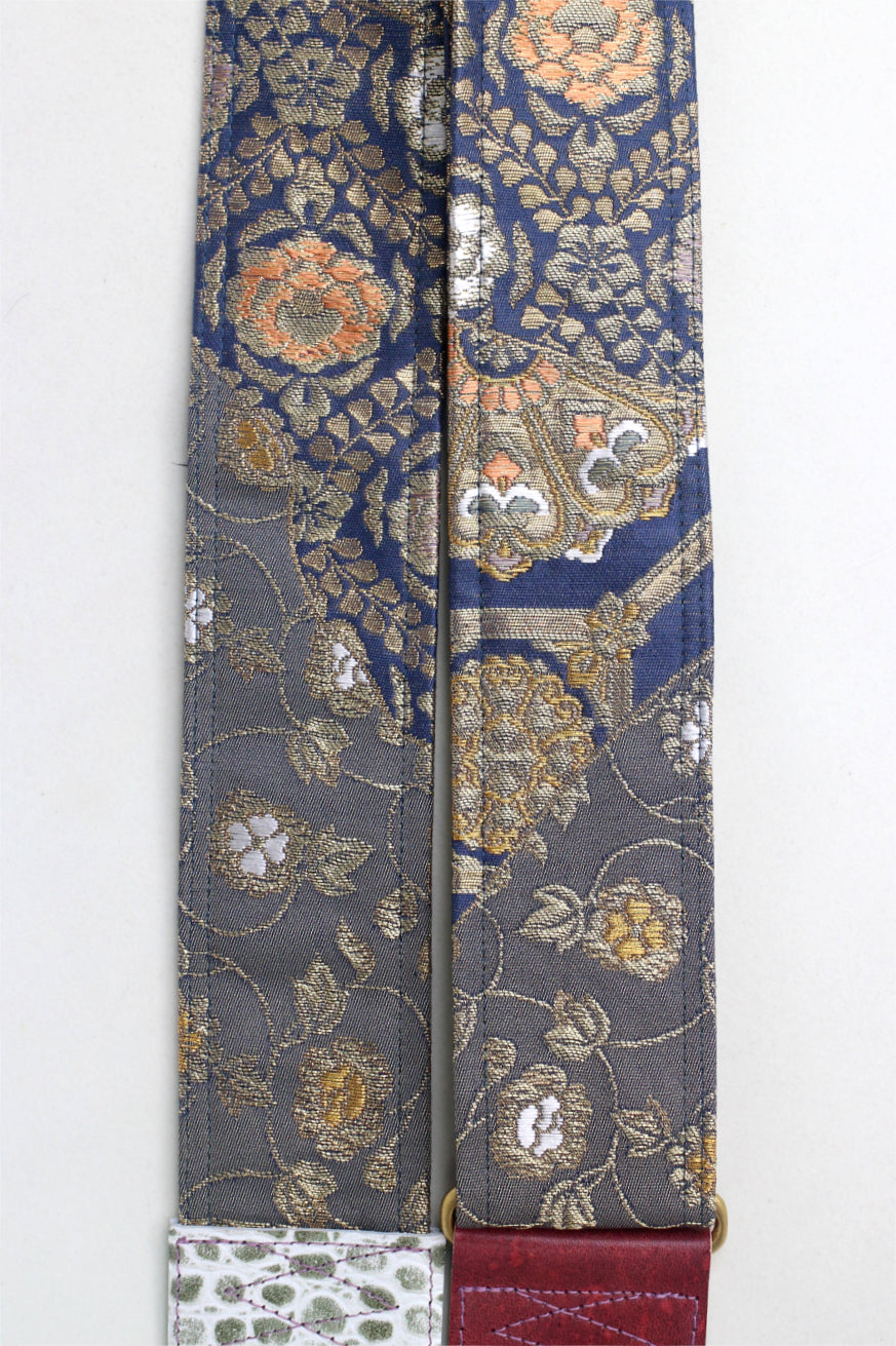 Unique and beautiful guitar strap [SC325152] - hand made in Japan from recycled silk woven kimono obi, leather and brass