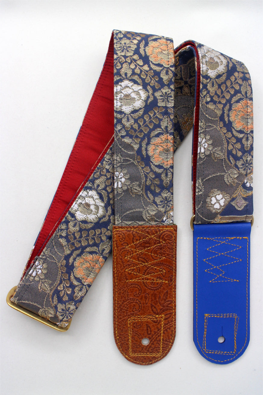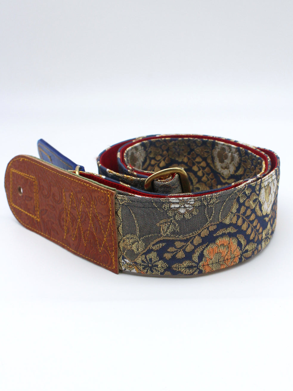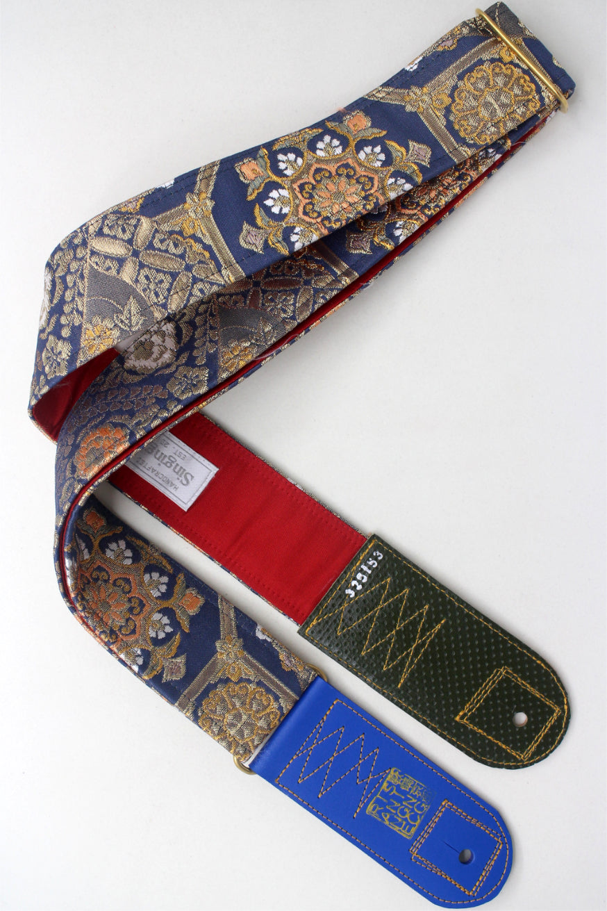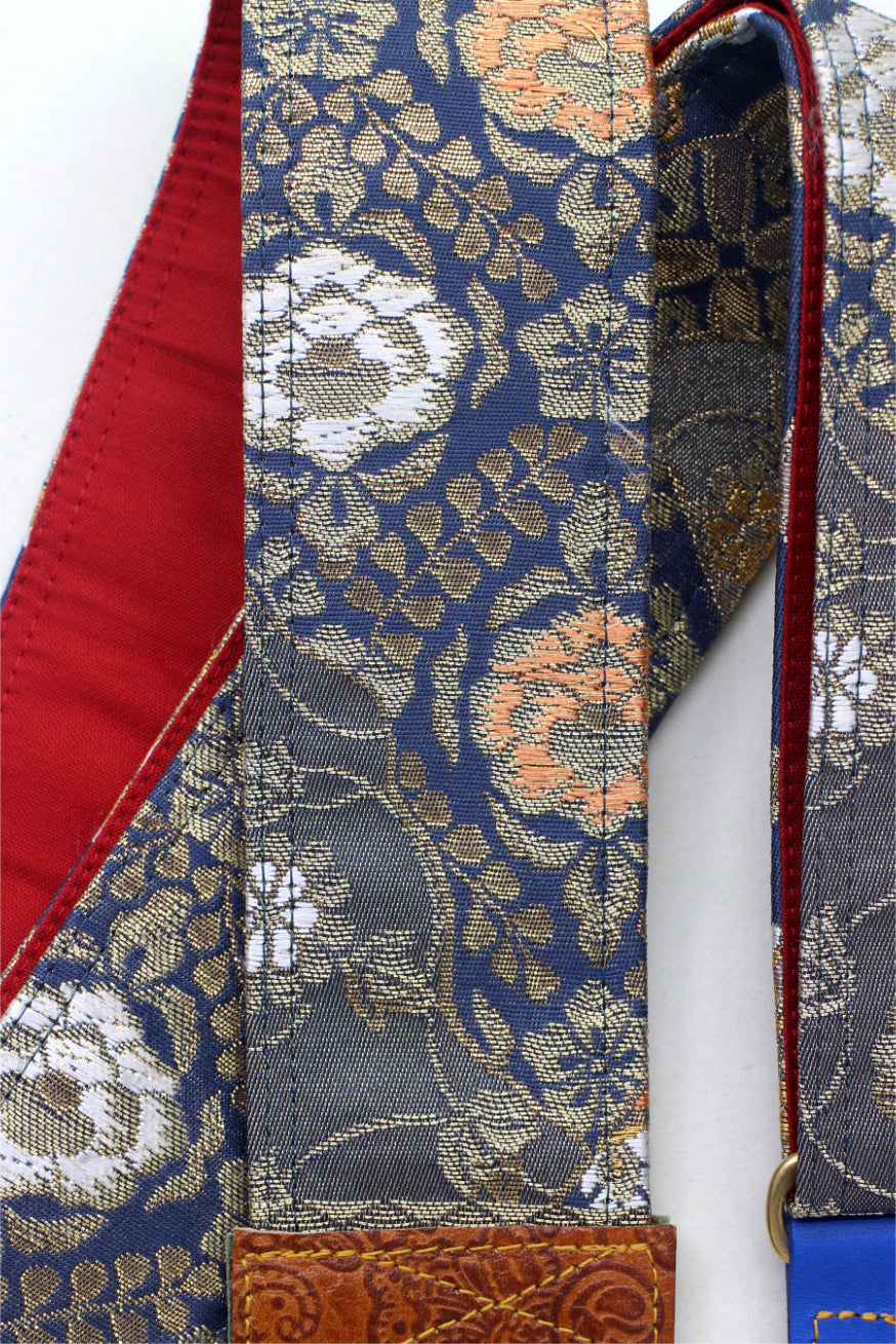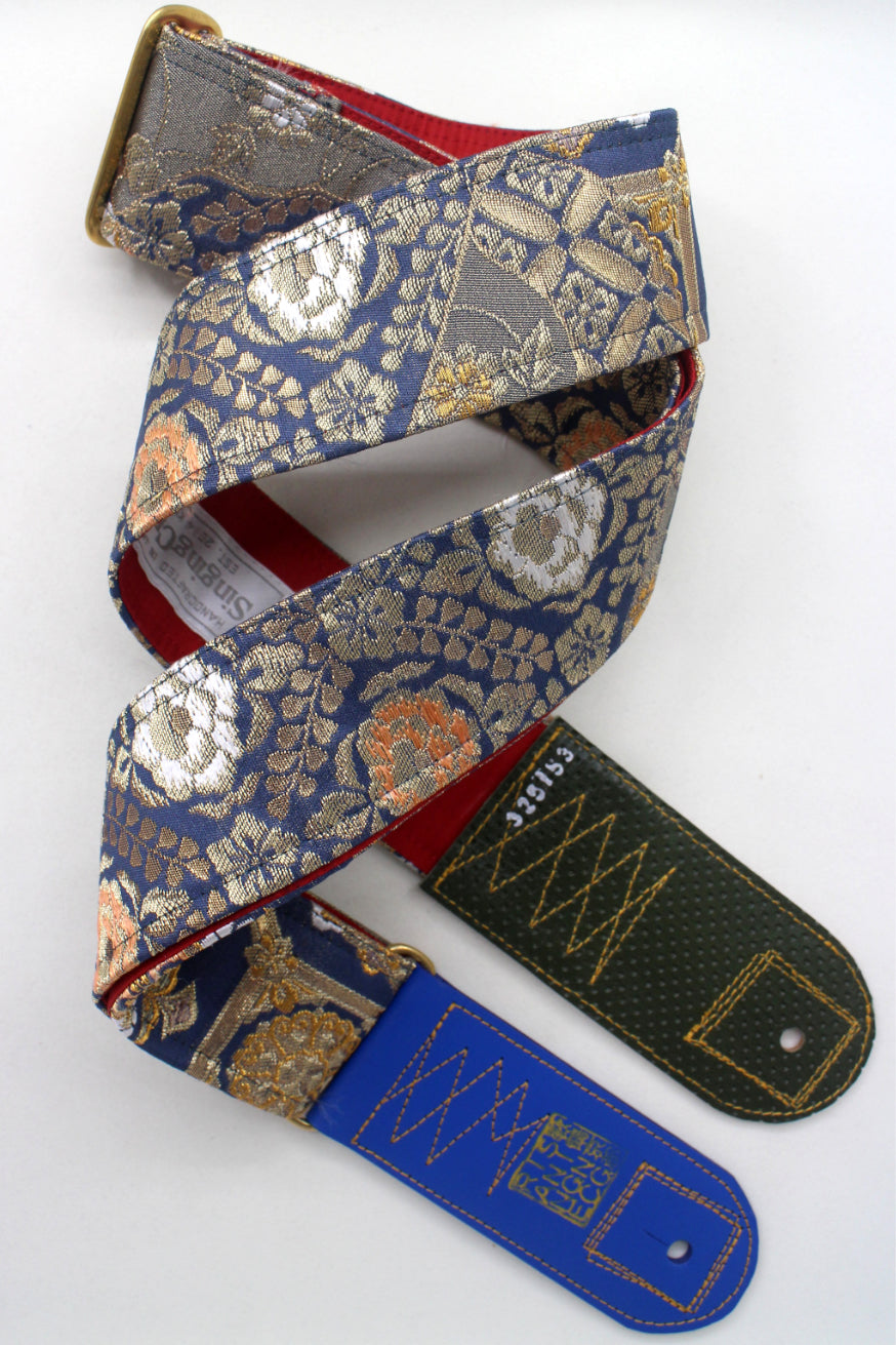 Unique and beautiful guitar strap [SC325153] - hand made in Japan from recycled silk woven kimono obi, leather and brass