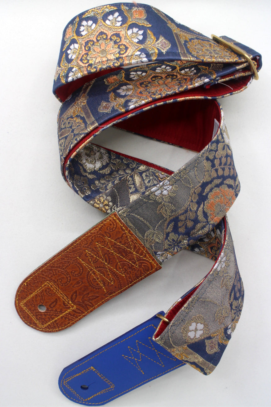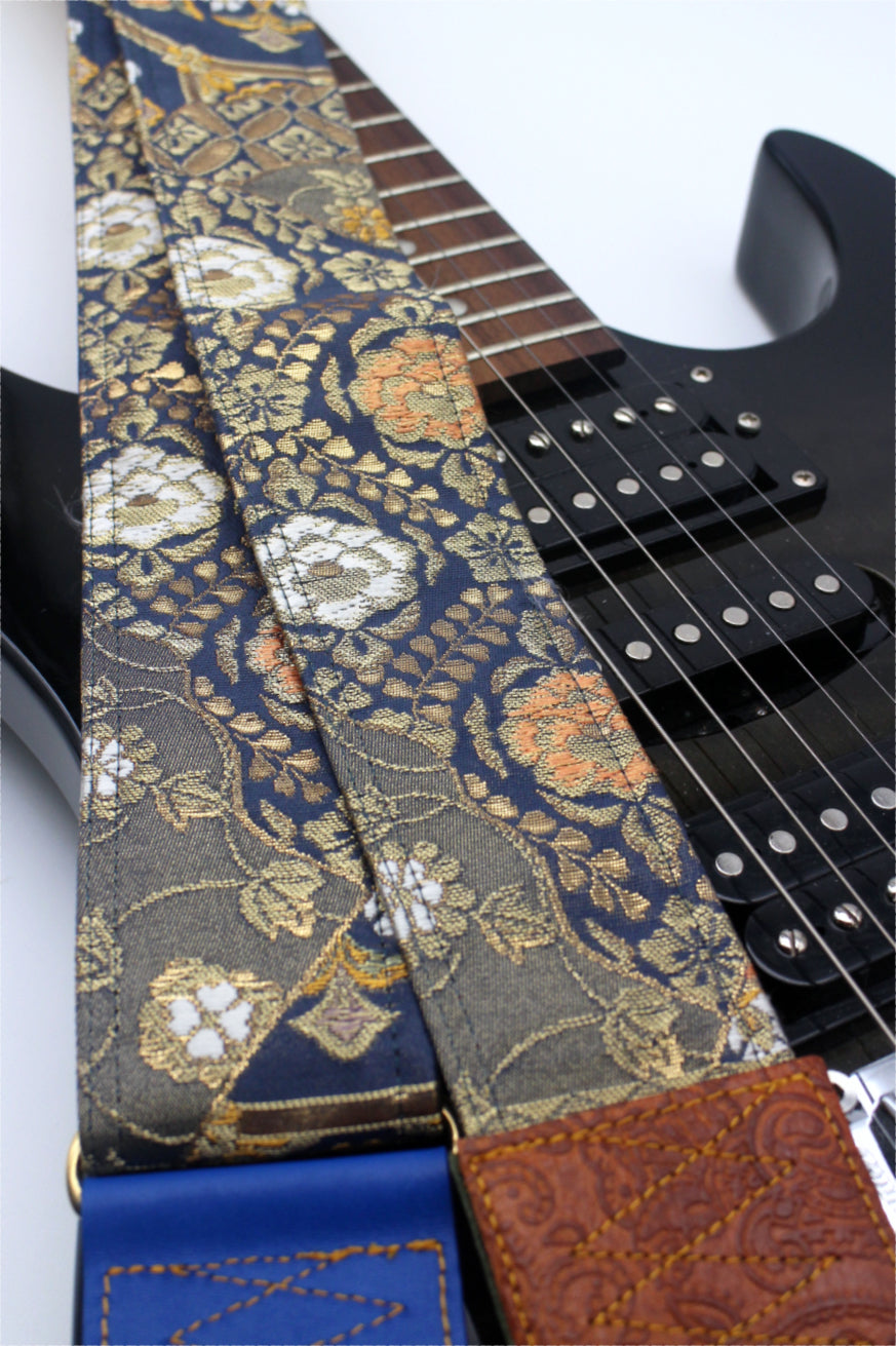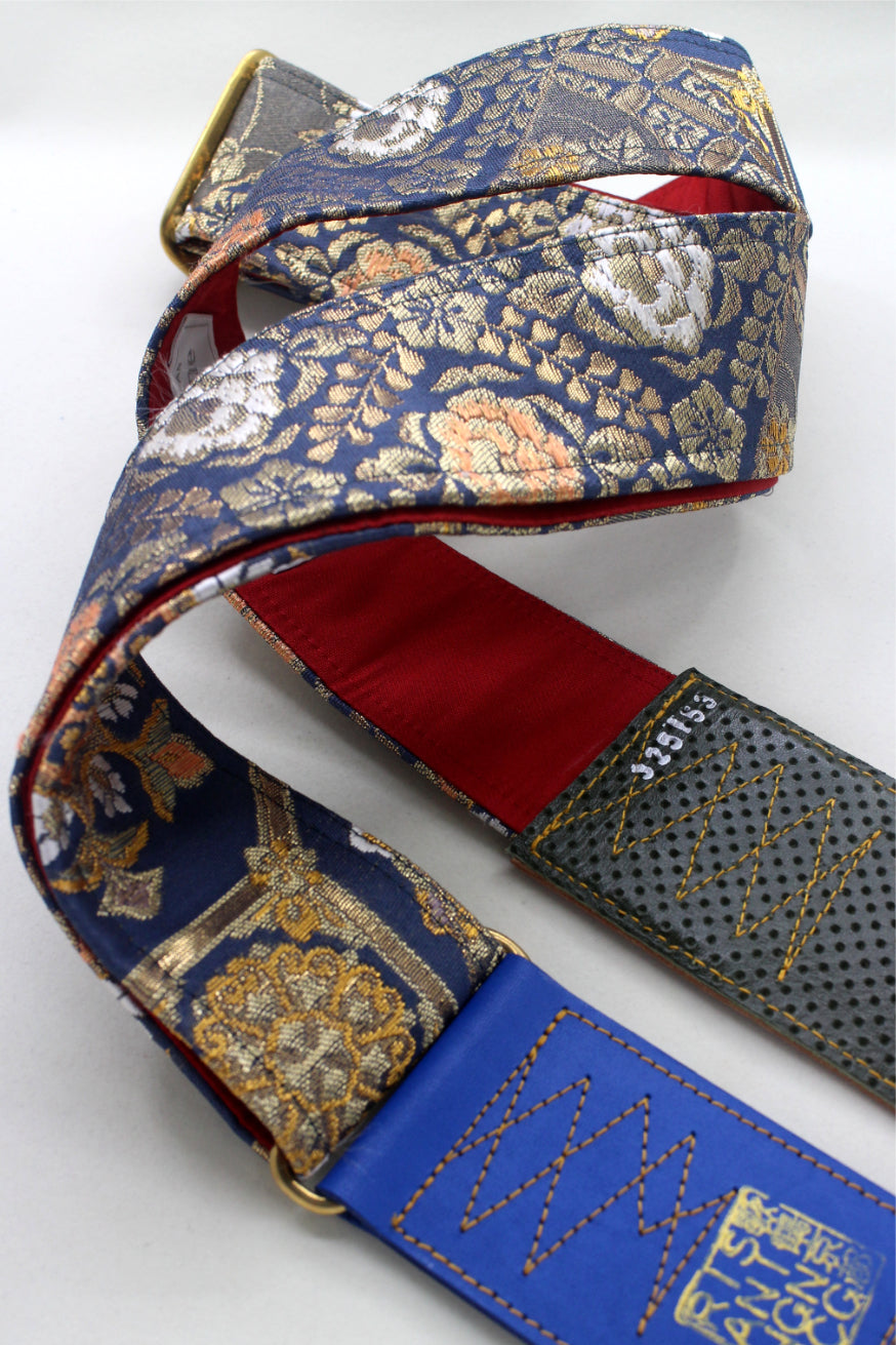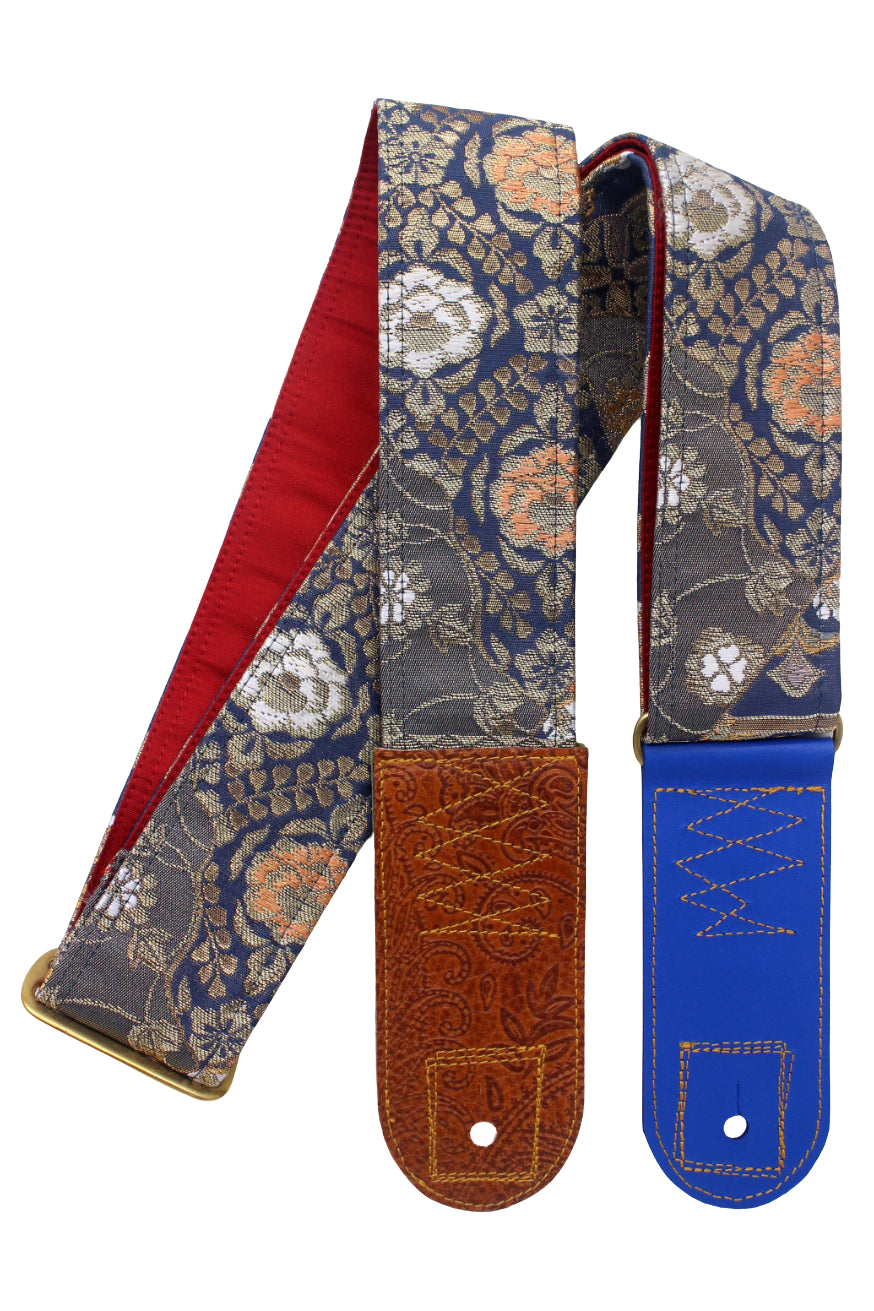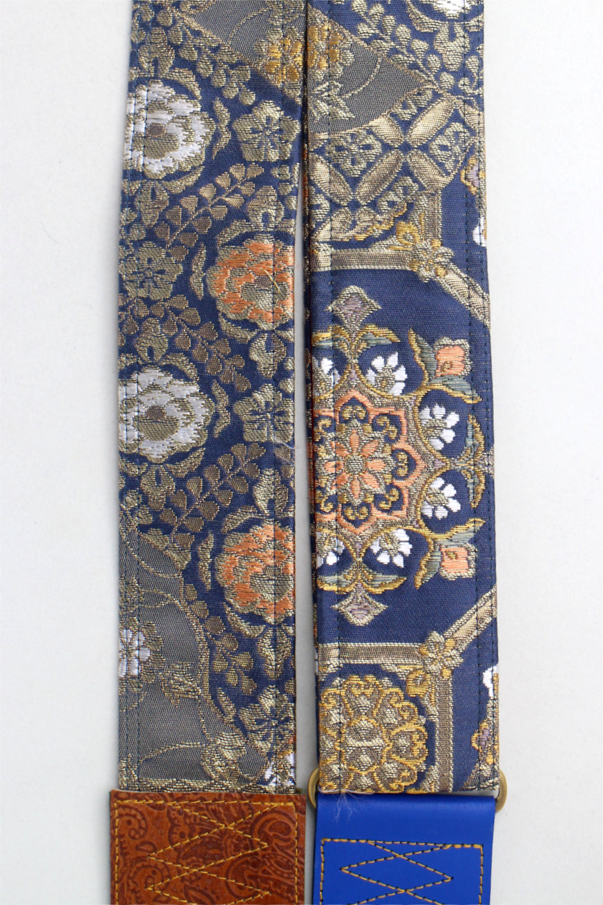 Unique and beautiful guitar strap [SC325153] - hand made in Japan from recycled silk woven kimono obi, leather and brass