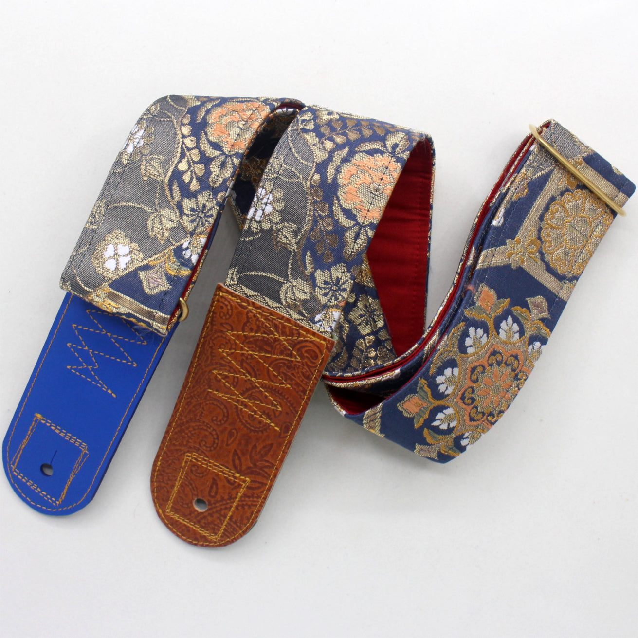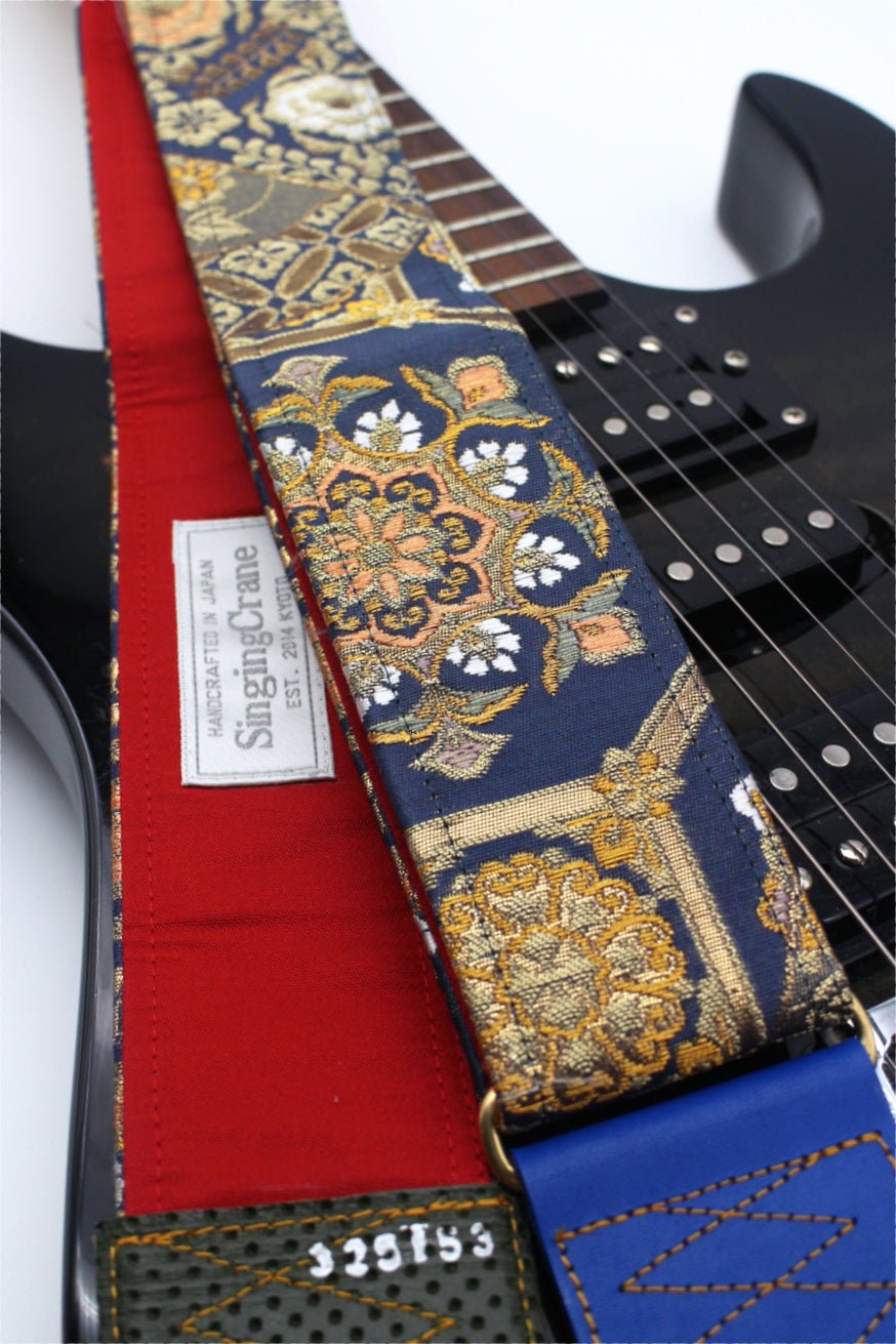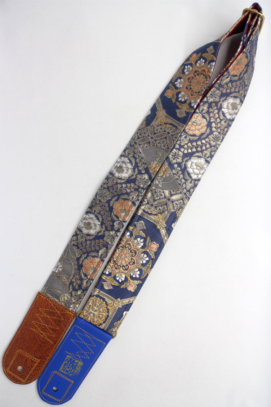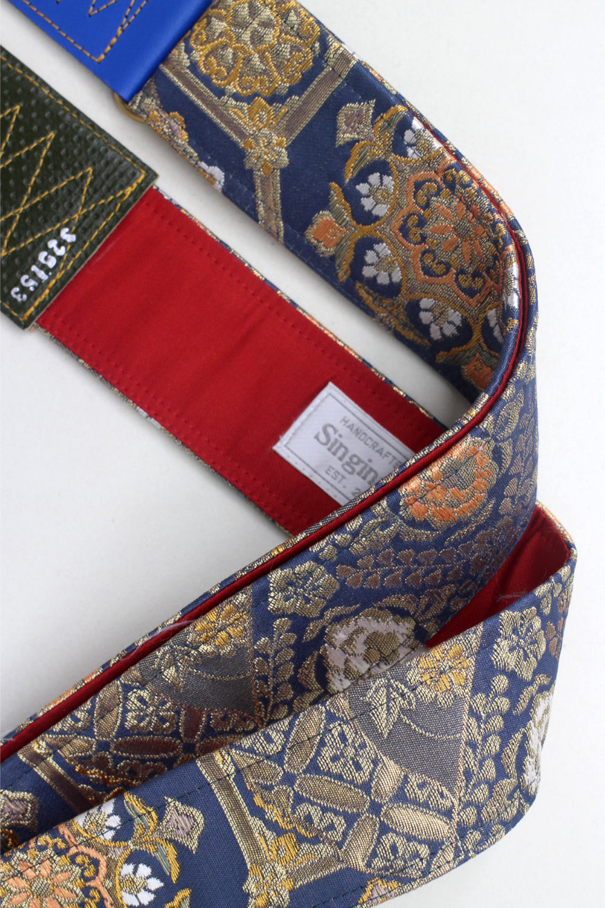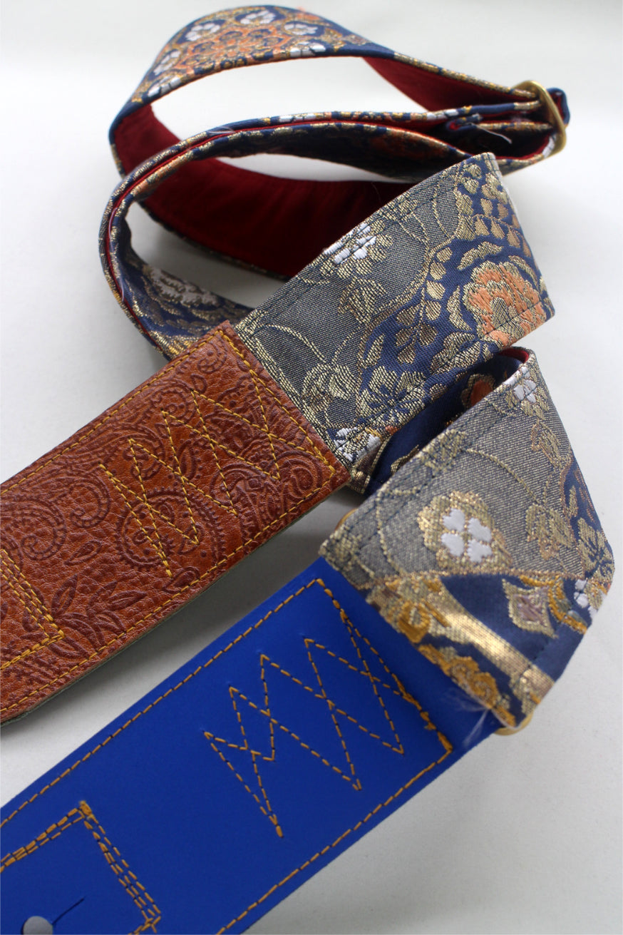 Unique and beautiful guitar strap [SC325153] - hand made in Japan from recycled silk woven kimono obi, leather and brass