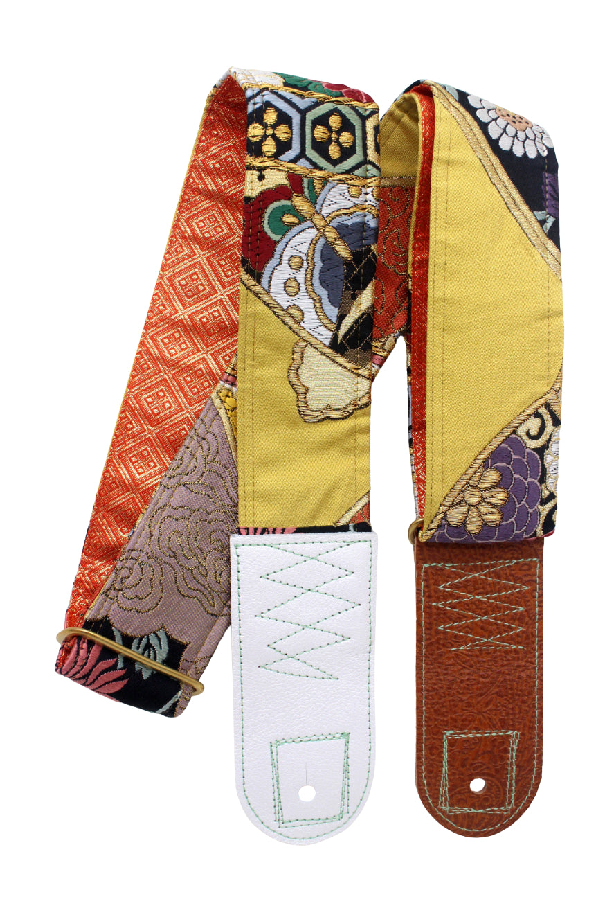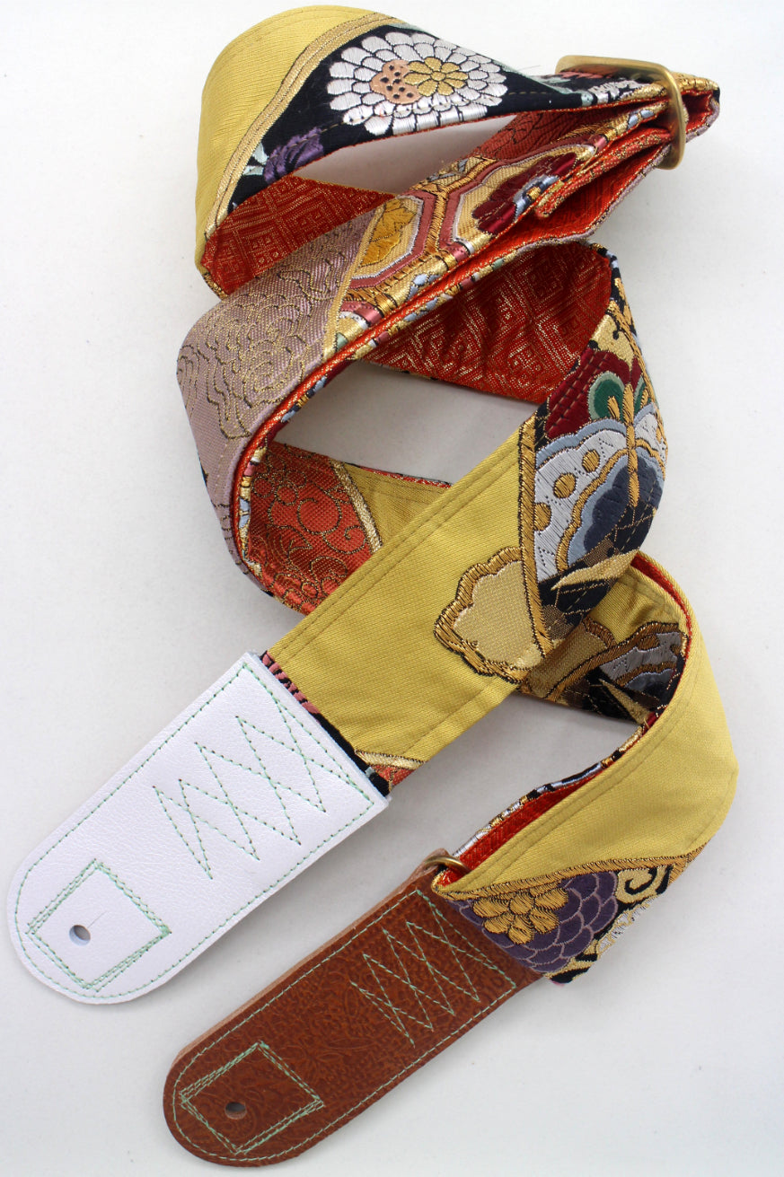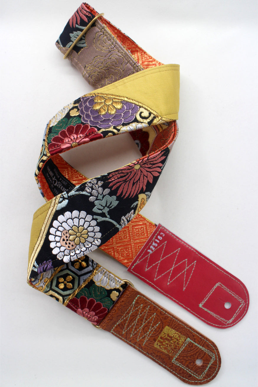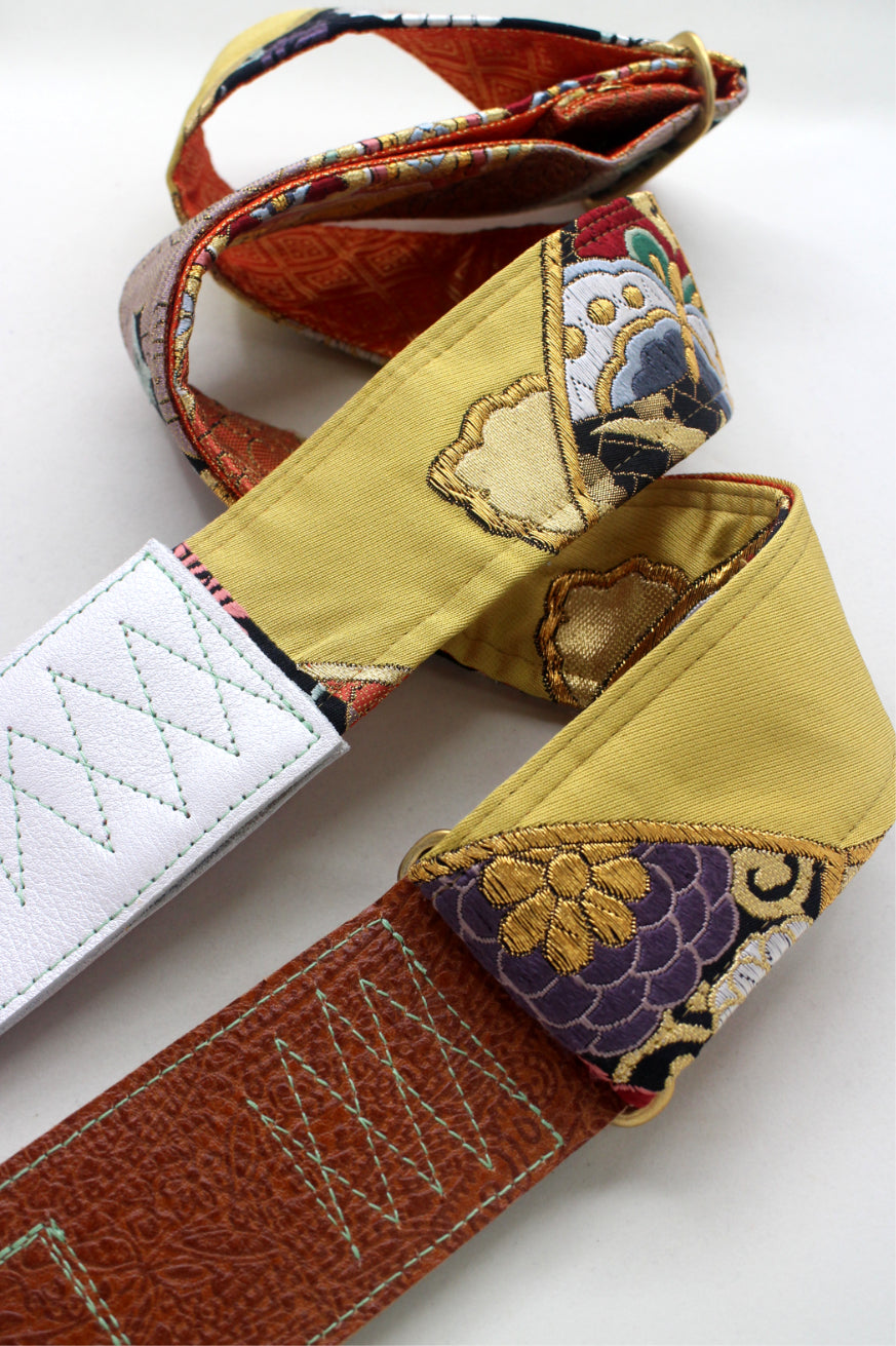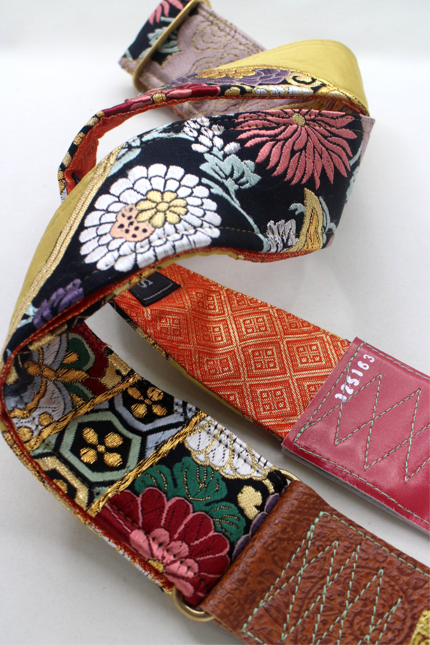 Unique and beautiful guitar strap [SC325163] - hand made in Japan from recycled silk woven kimono obi, leather and brass