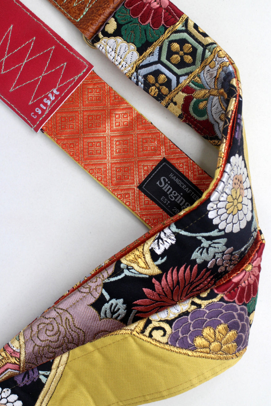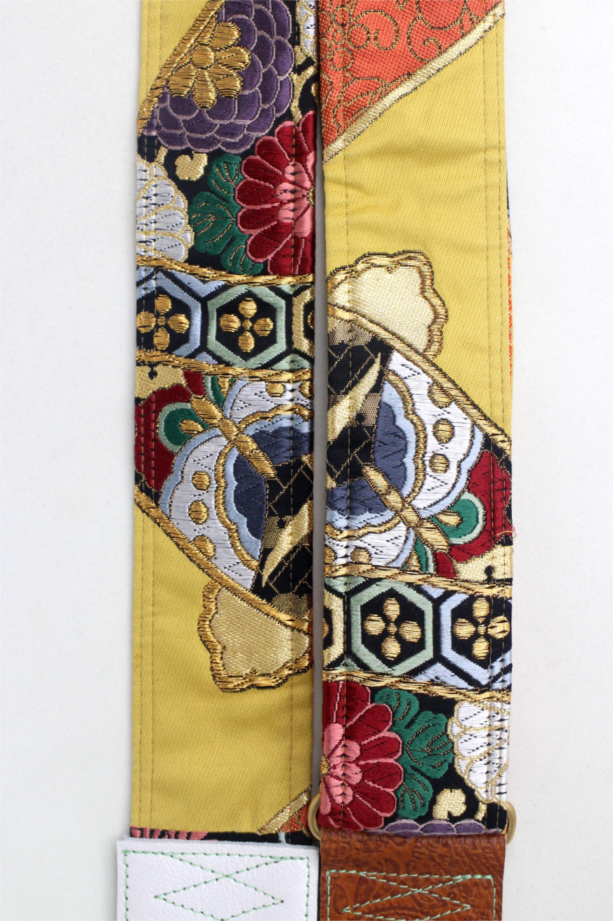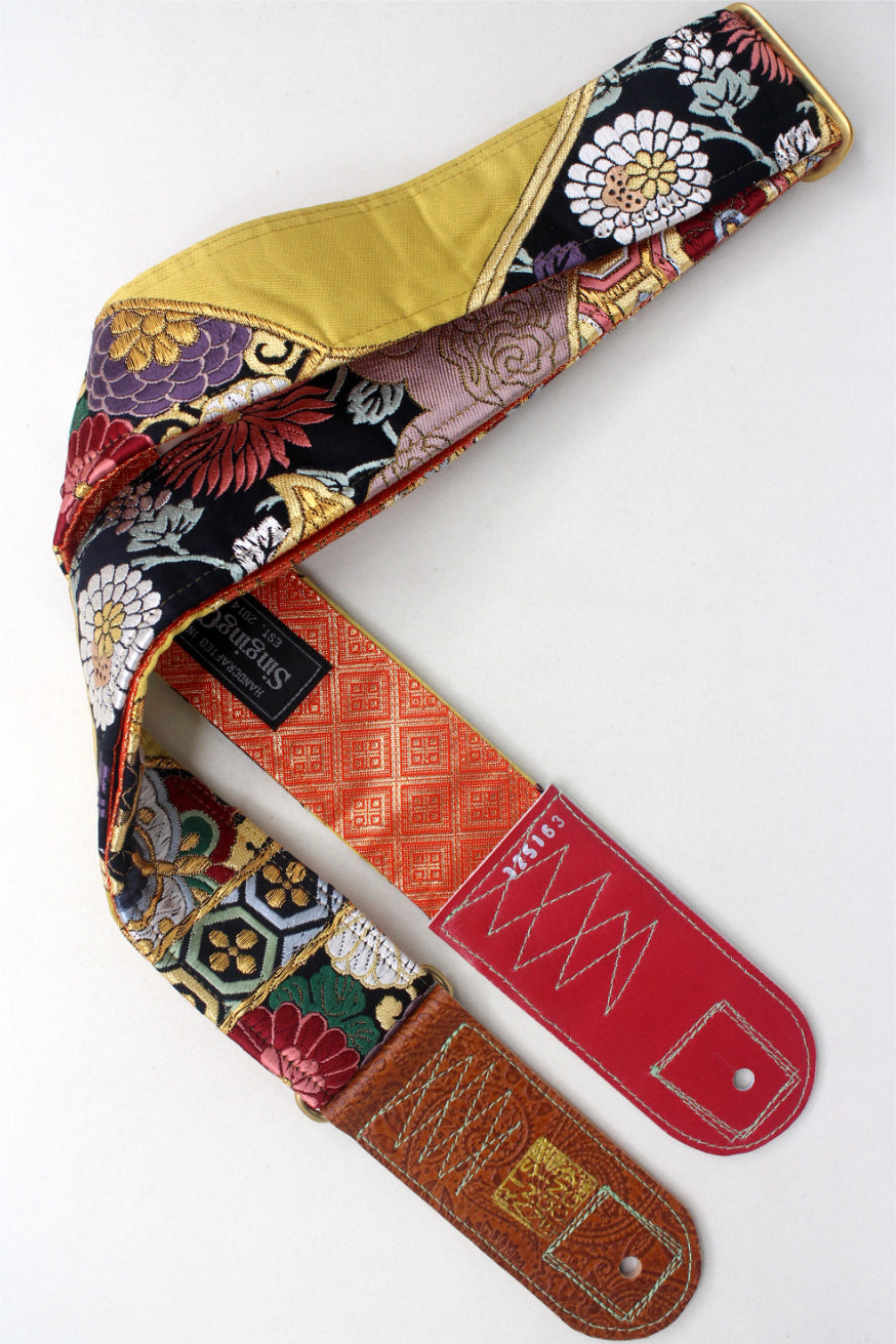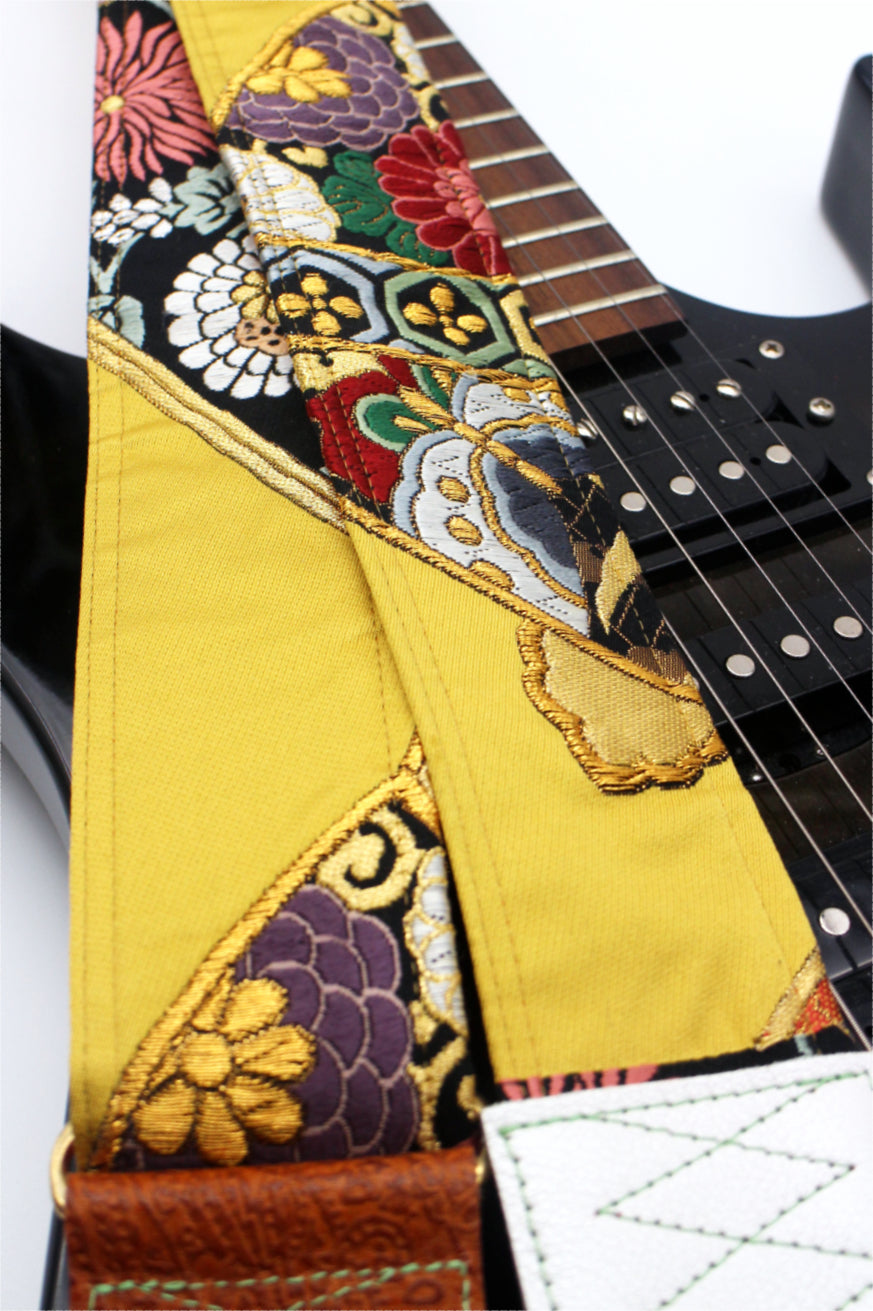 Unique and beautiful guitar strap [SC325163] - hand made in Japan from recycled silk woven kimono obi, leather and brass