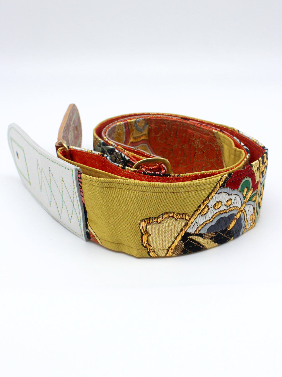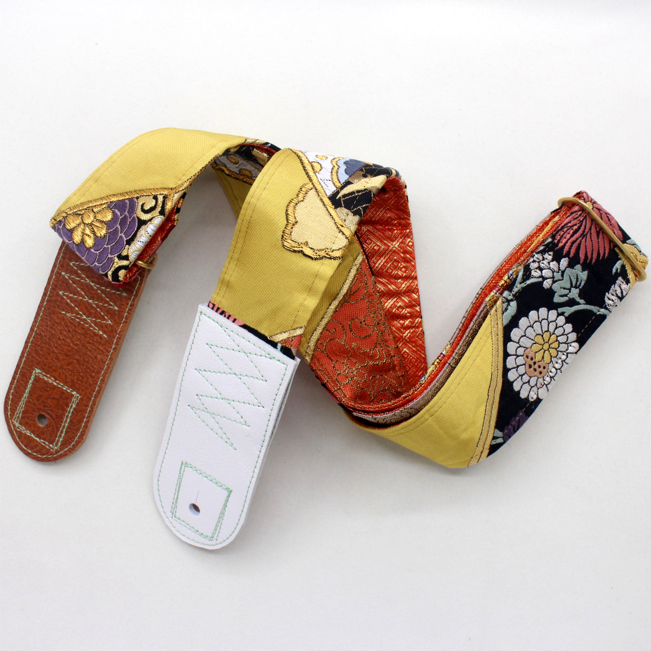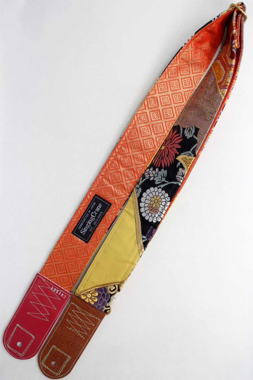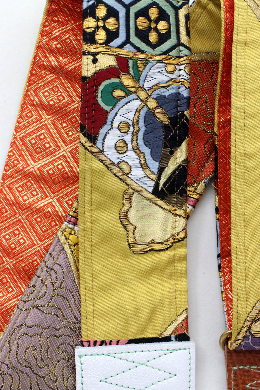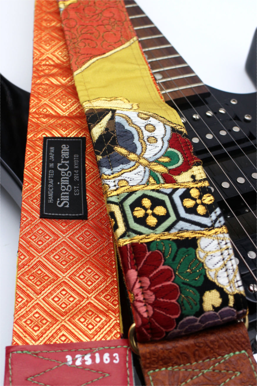 Unique and beautiful guitar strap [SC325163] - hand made in Japan from recycled silk woven kimono obi, leather and brass