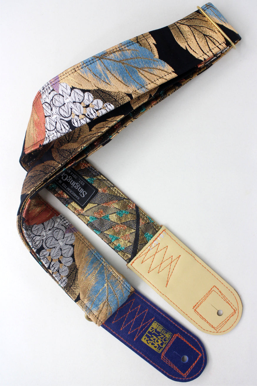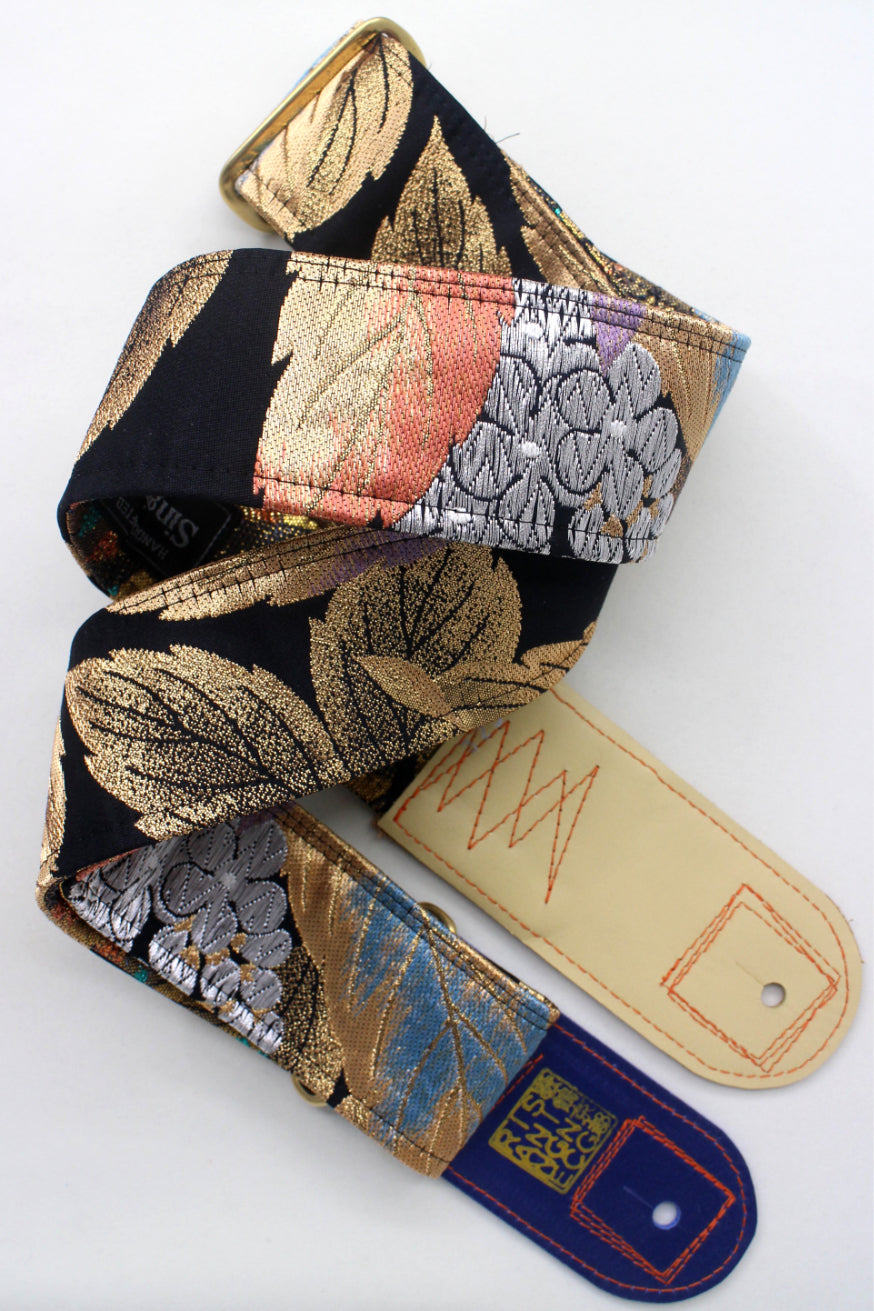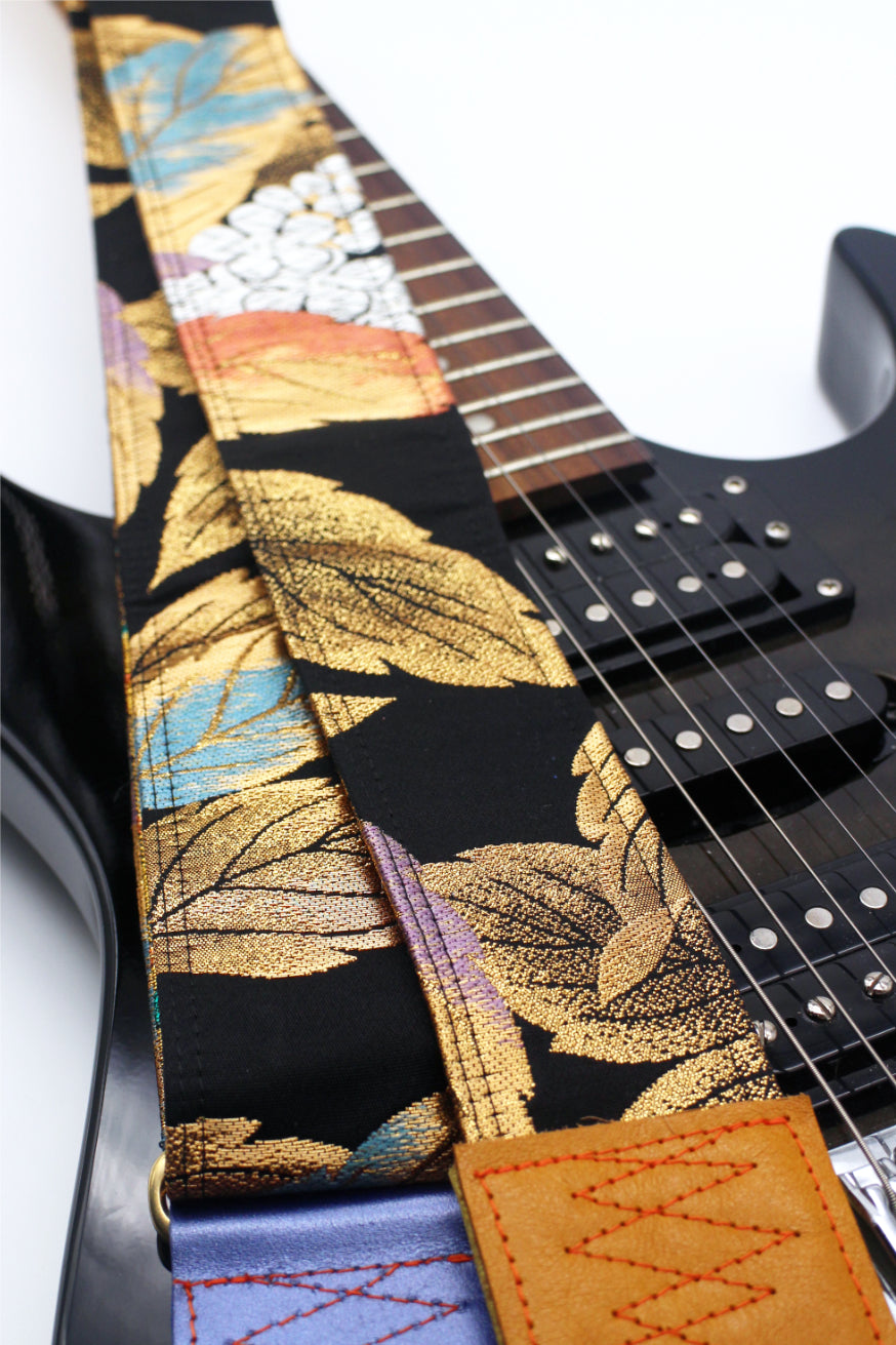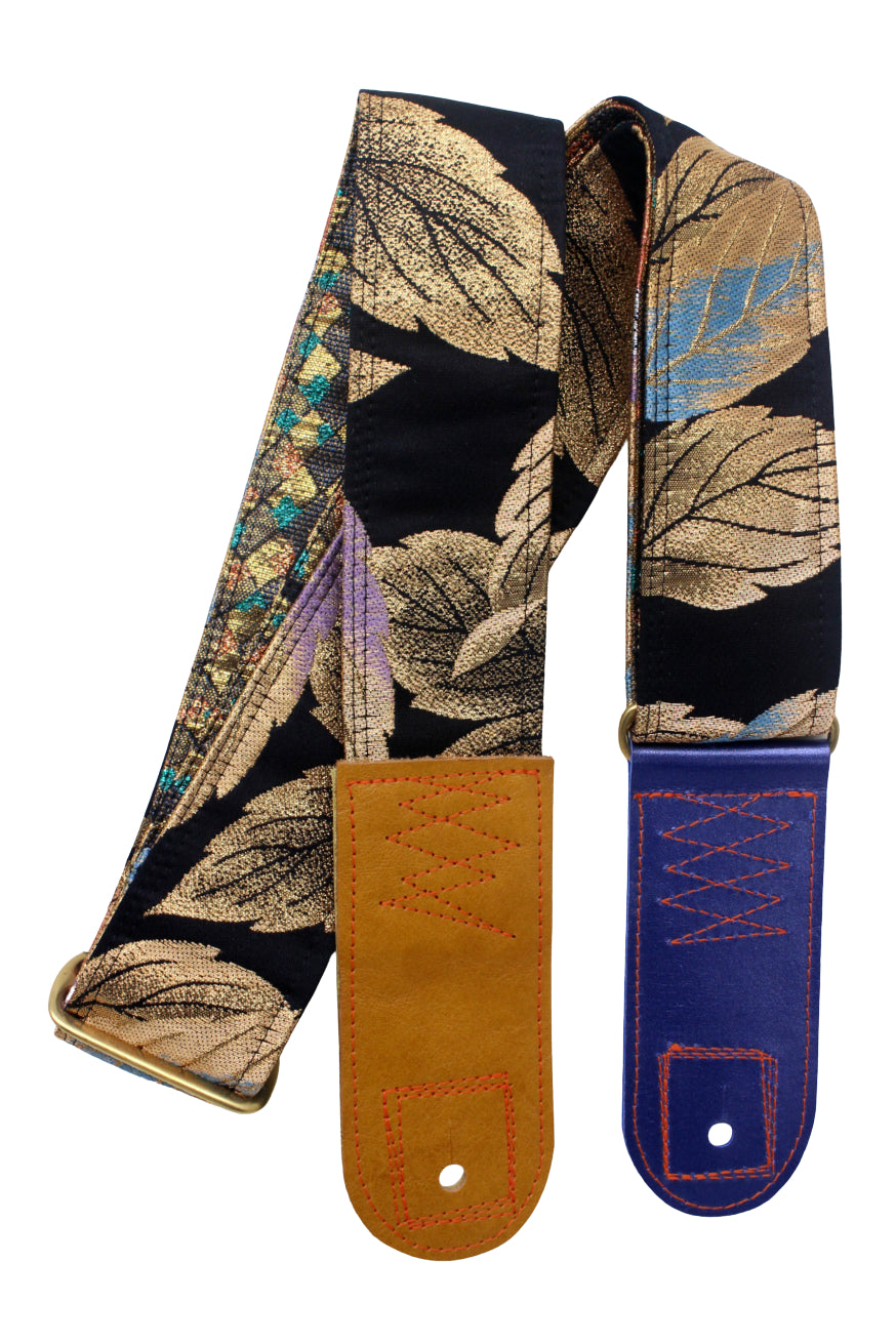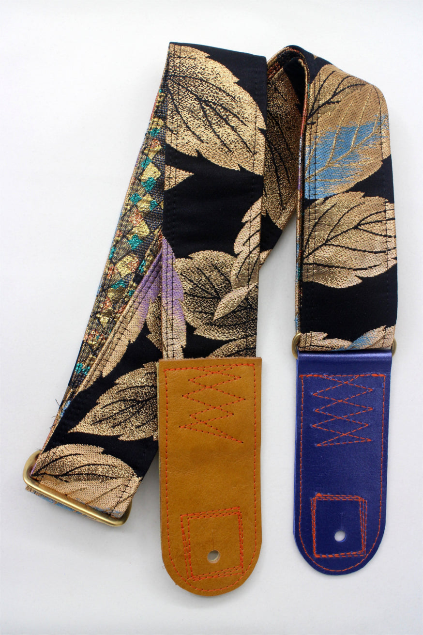 Unique and beautiful guitar strap [SC725343] - hand made in Japan from recycled silk woven kimono obi, leather and brass
