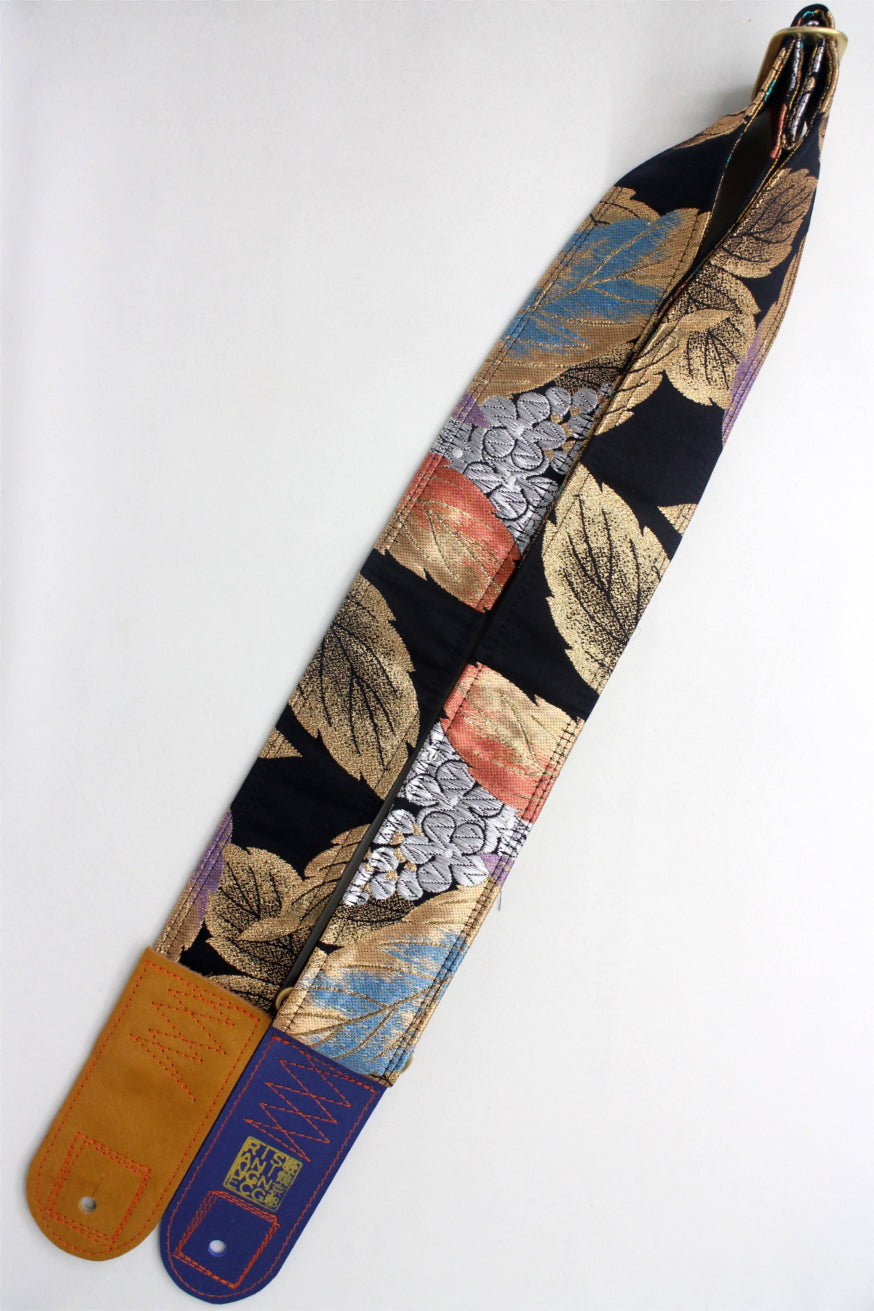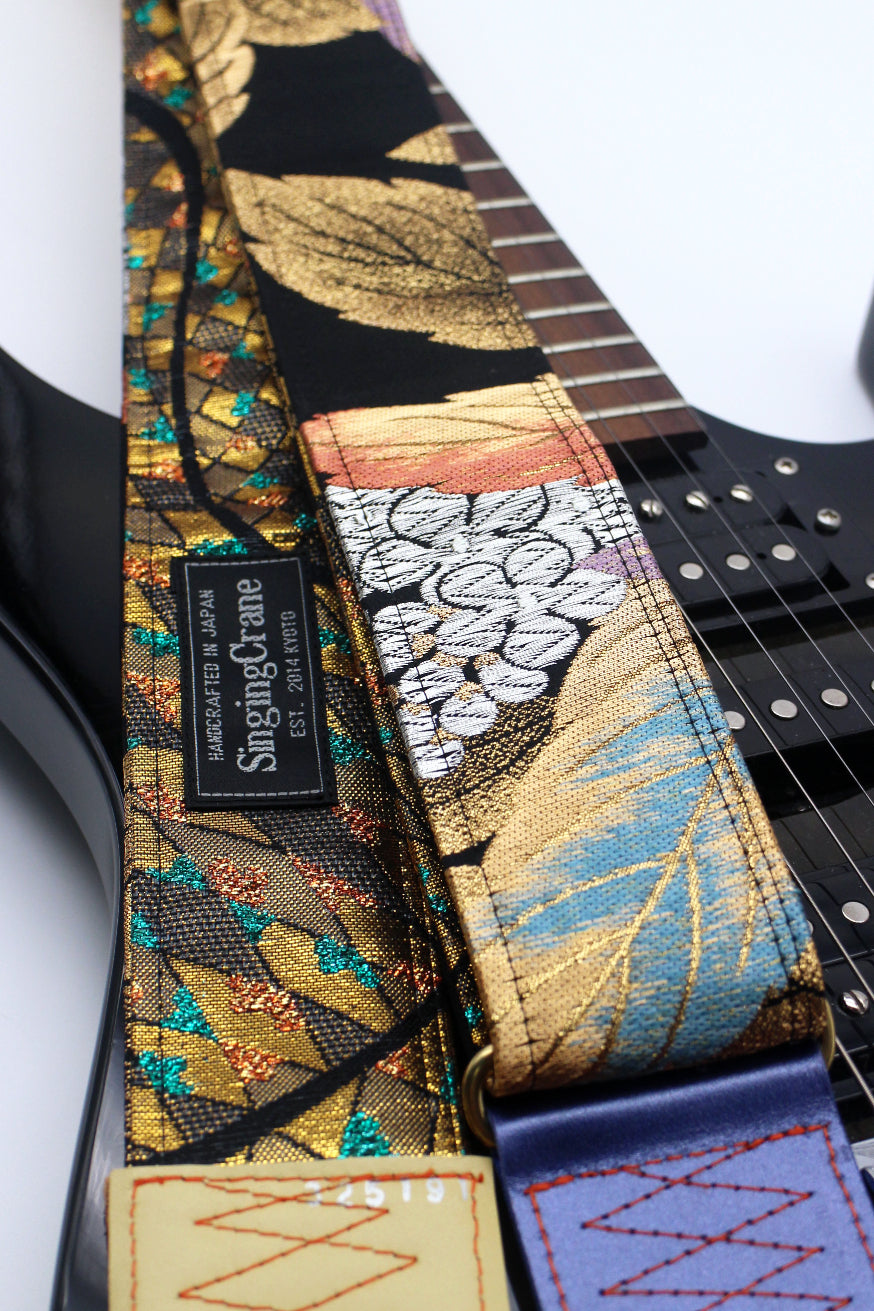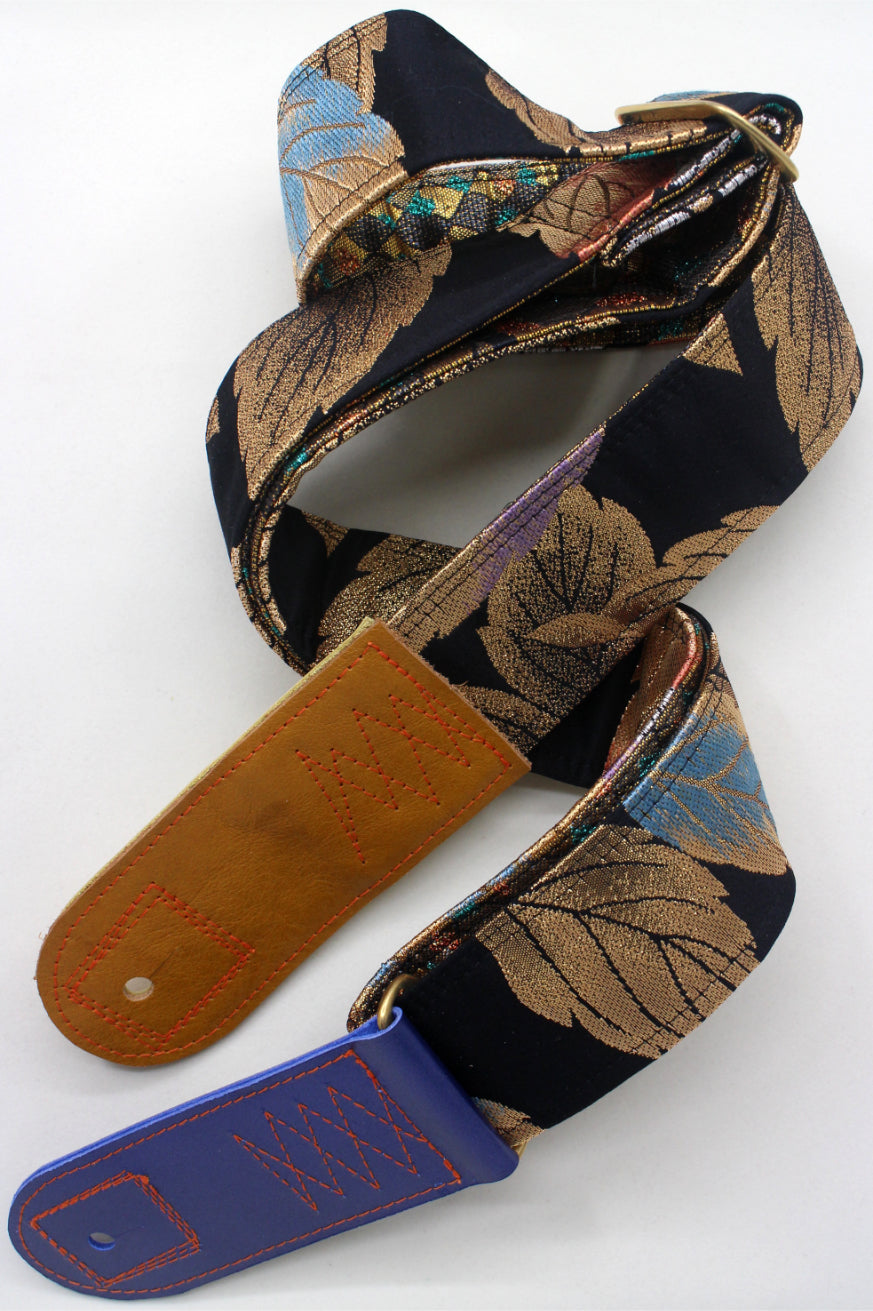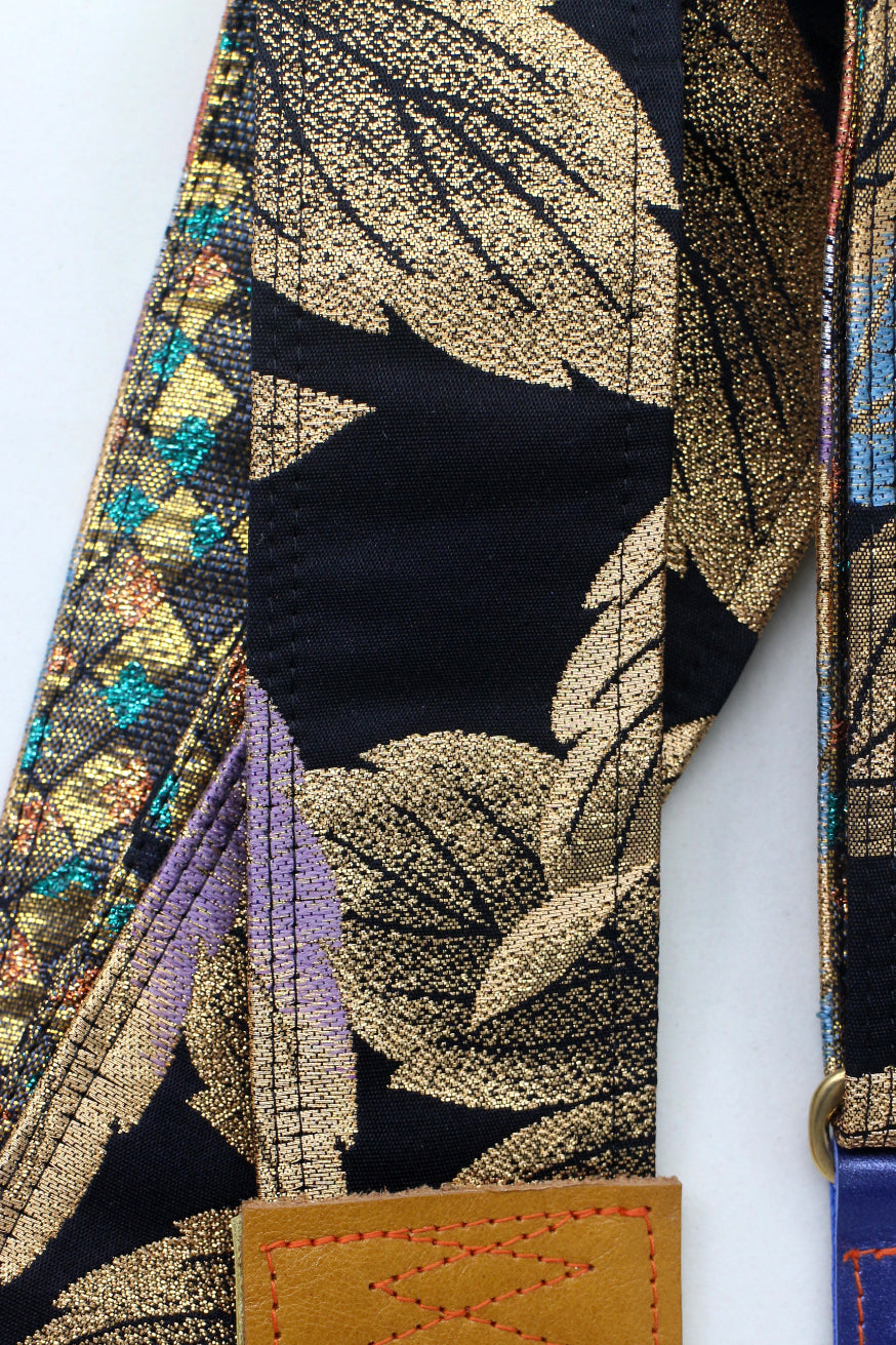 Unique and beautiful guitar strap [SC725343] - hand made in Japan from recycled silk woven kimono obi, leather and brass