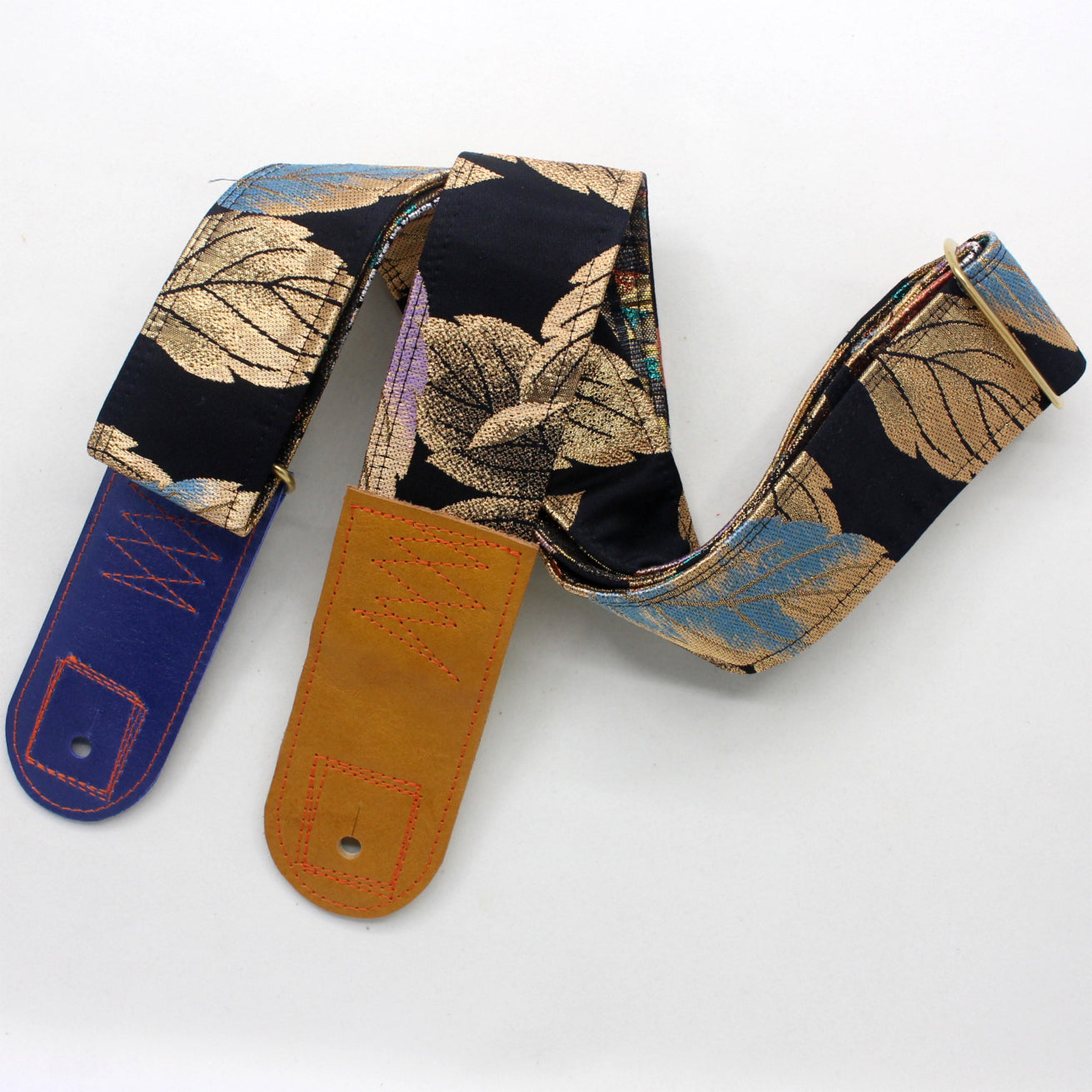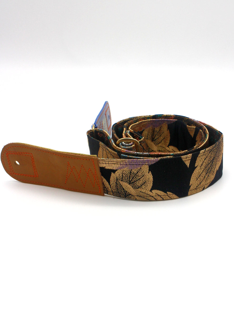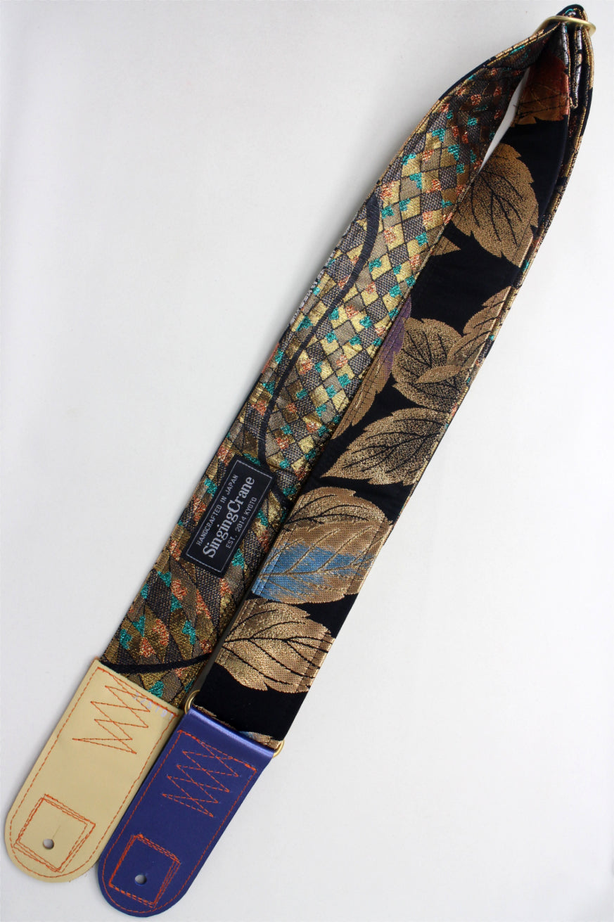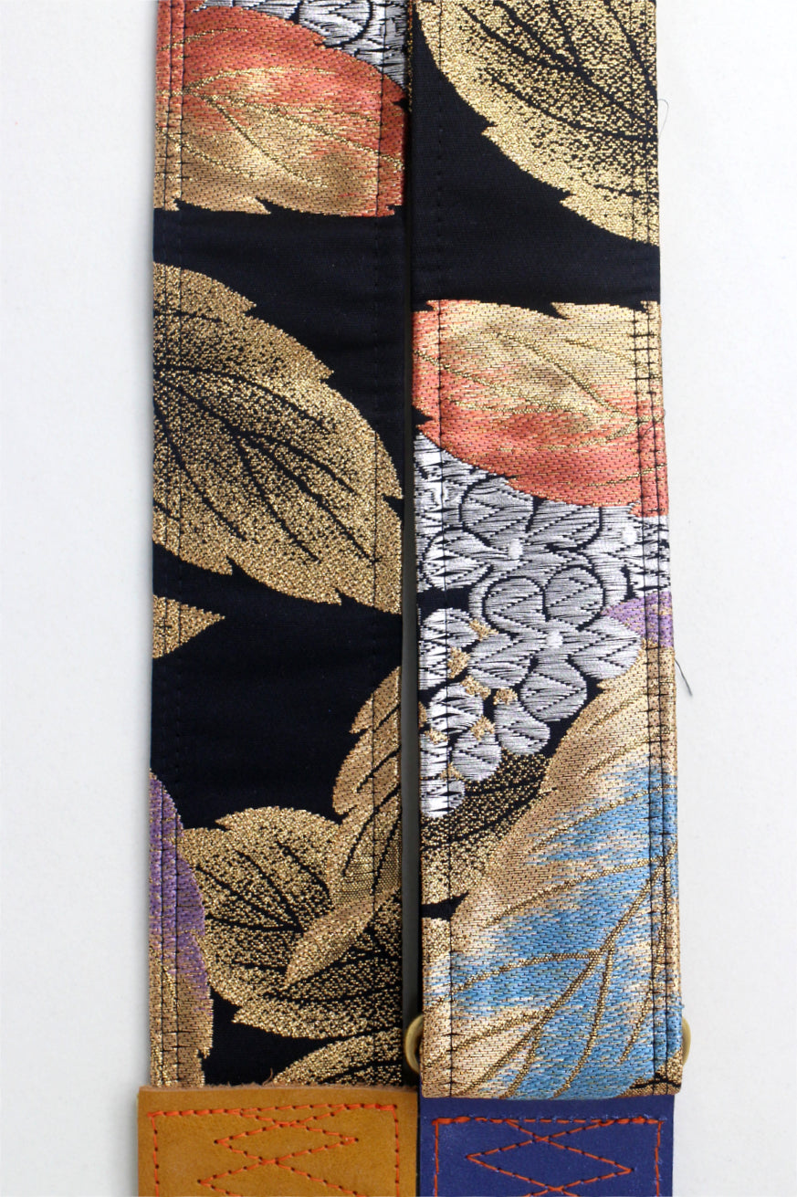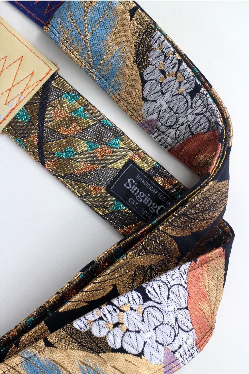 Unique and beautiful guitar strap [SC725343] - hand made in Japan from recycled silk woven kimono obi, leather and brass