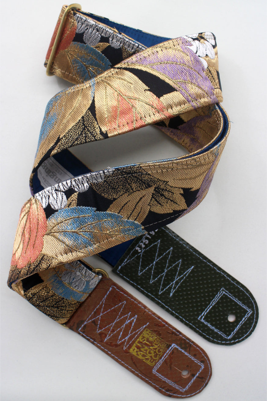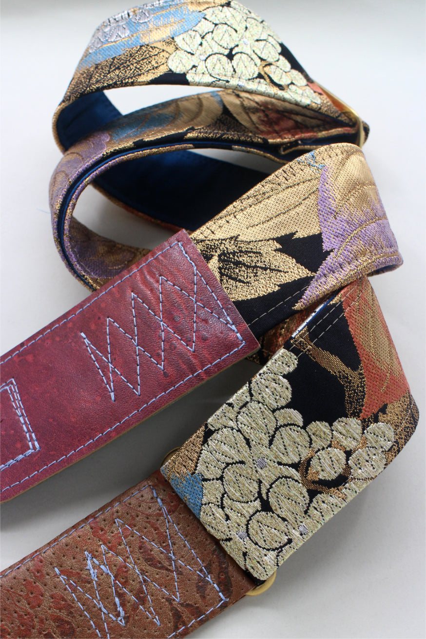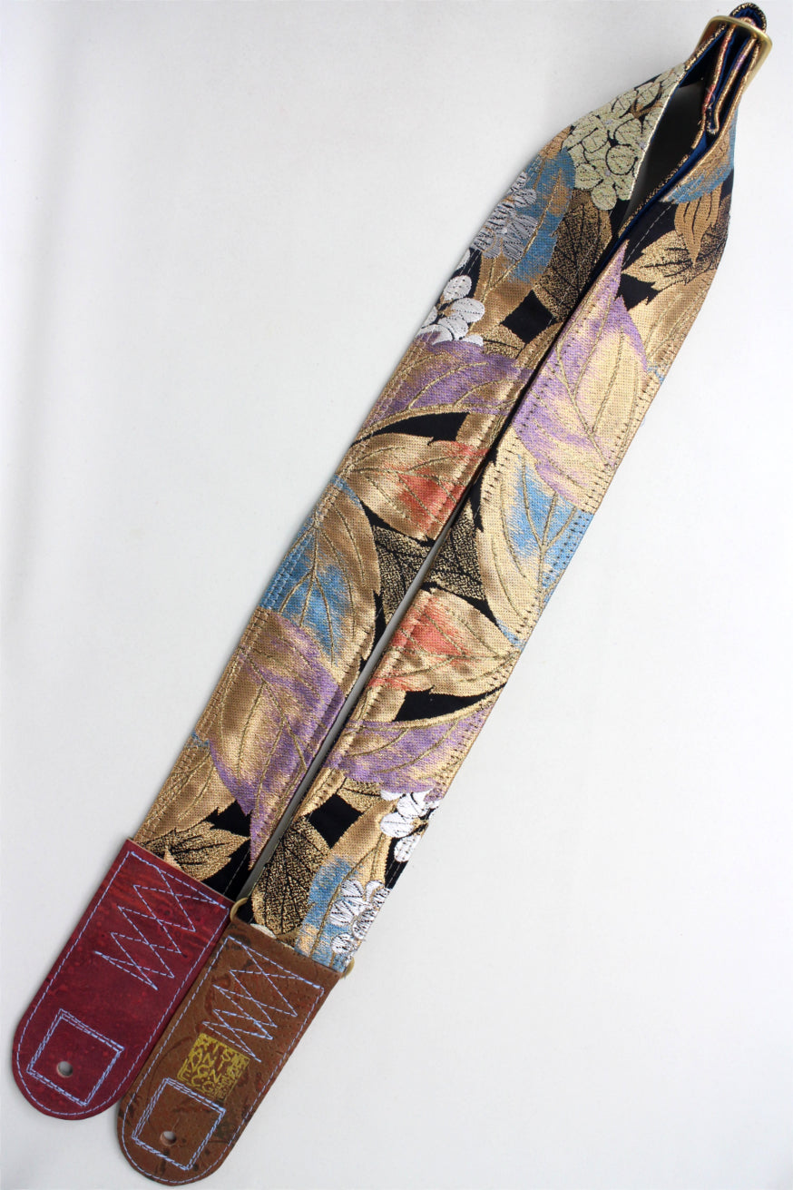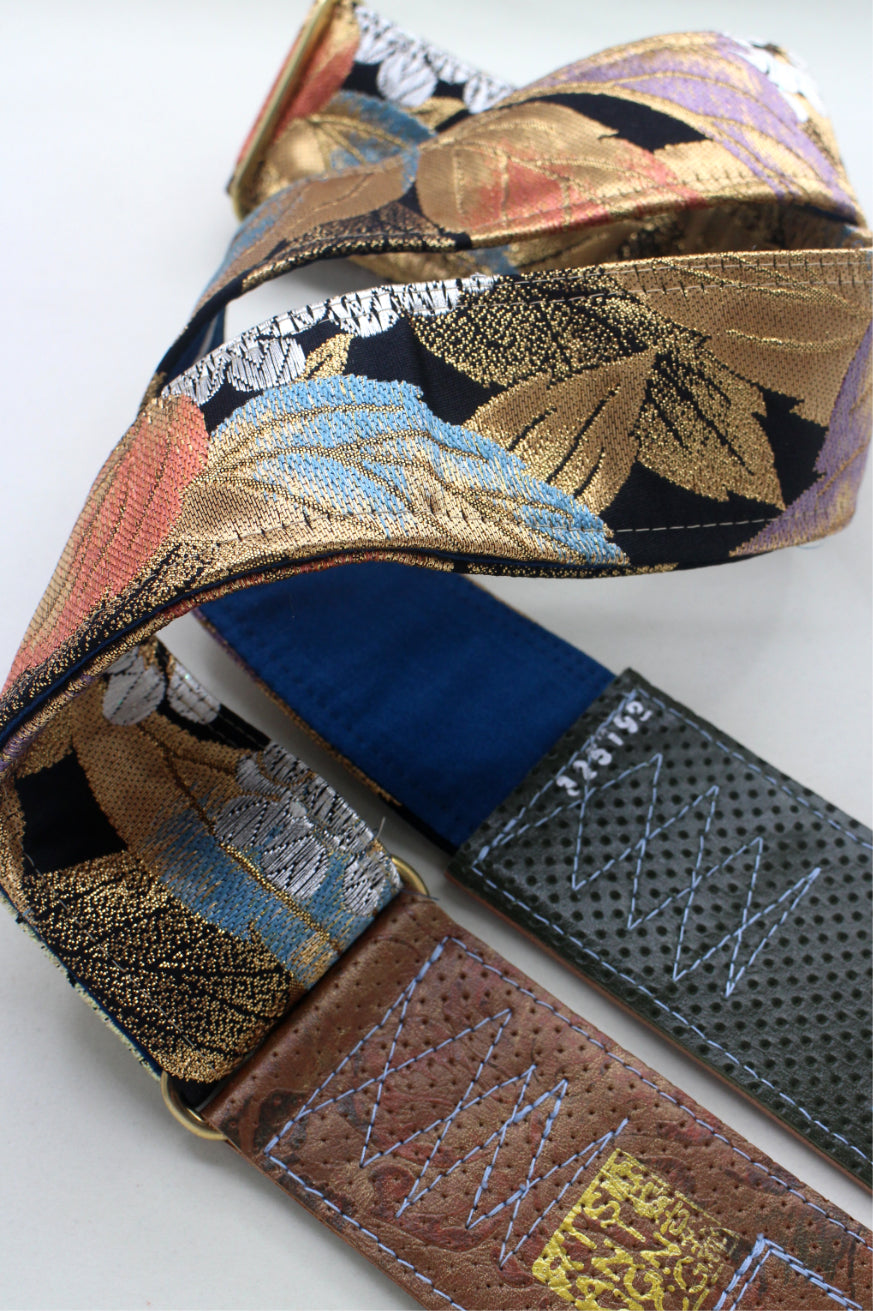 Unique and beautiful guitar strap [SC325192] - hand made in Japan from recycled silk woven kimono obi, leather and brass