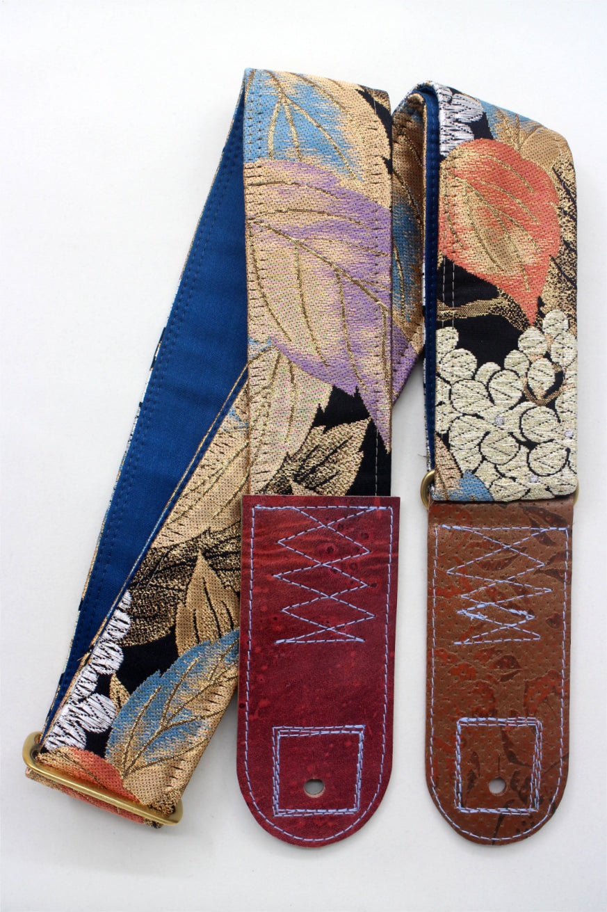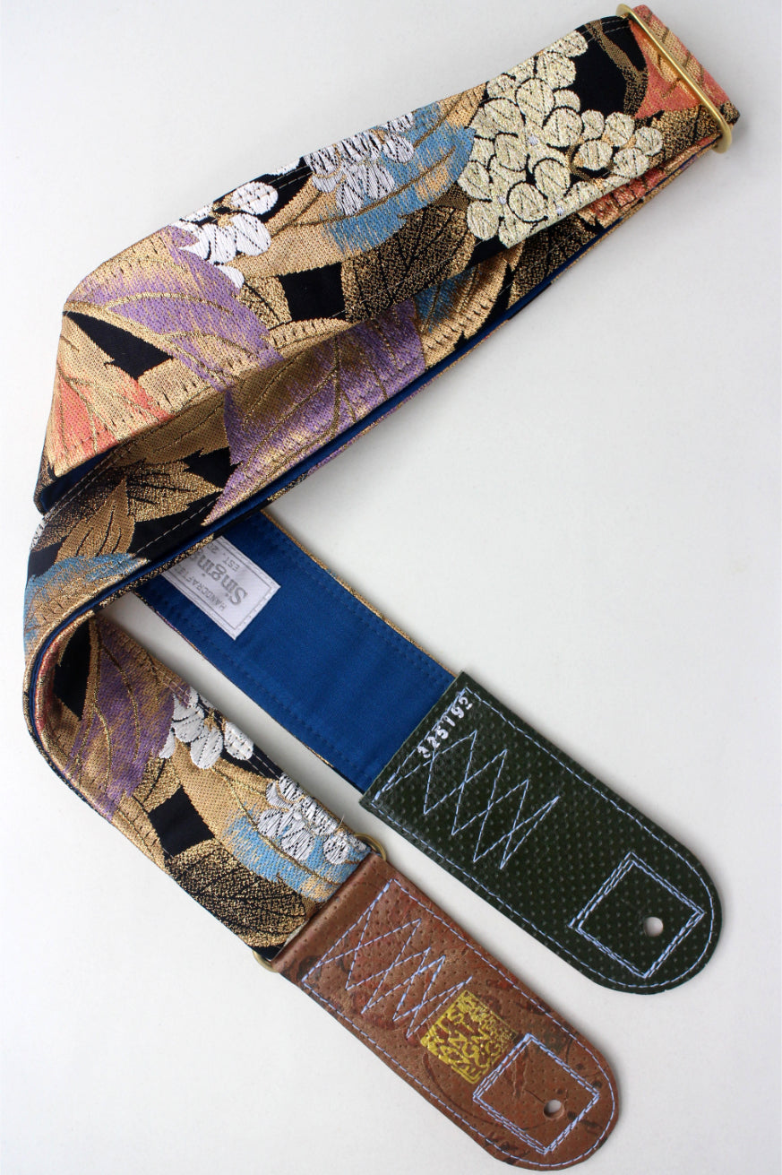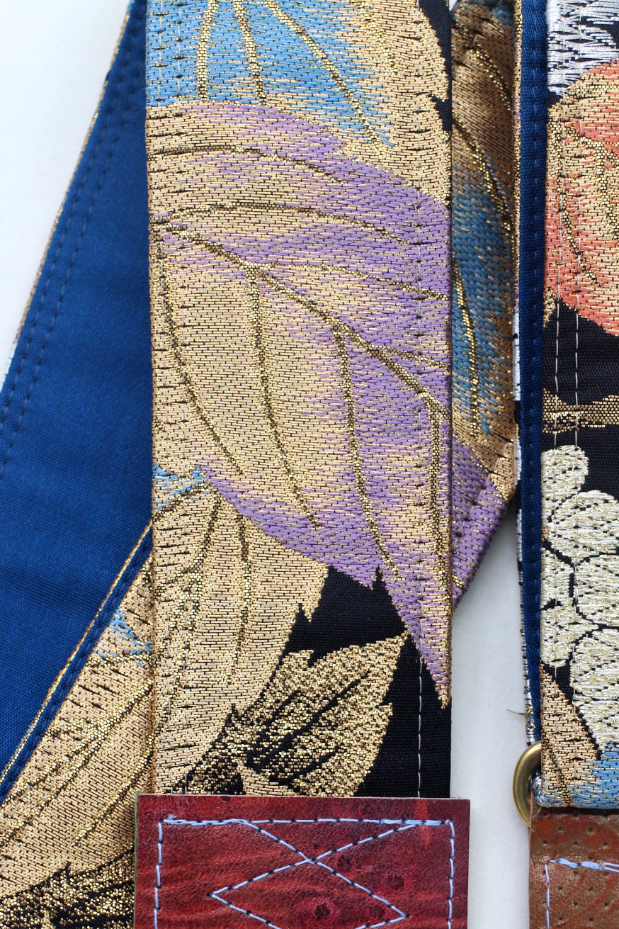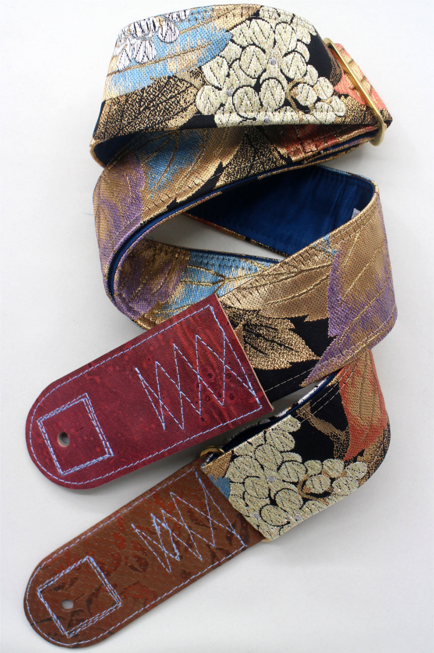 Unique and beautiful guitar strap [SC325192] - hand made in Japan from recycled silk woven kimono obi, leather and brass