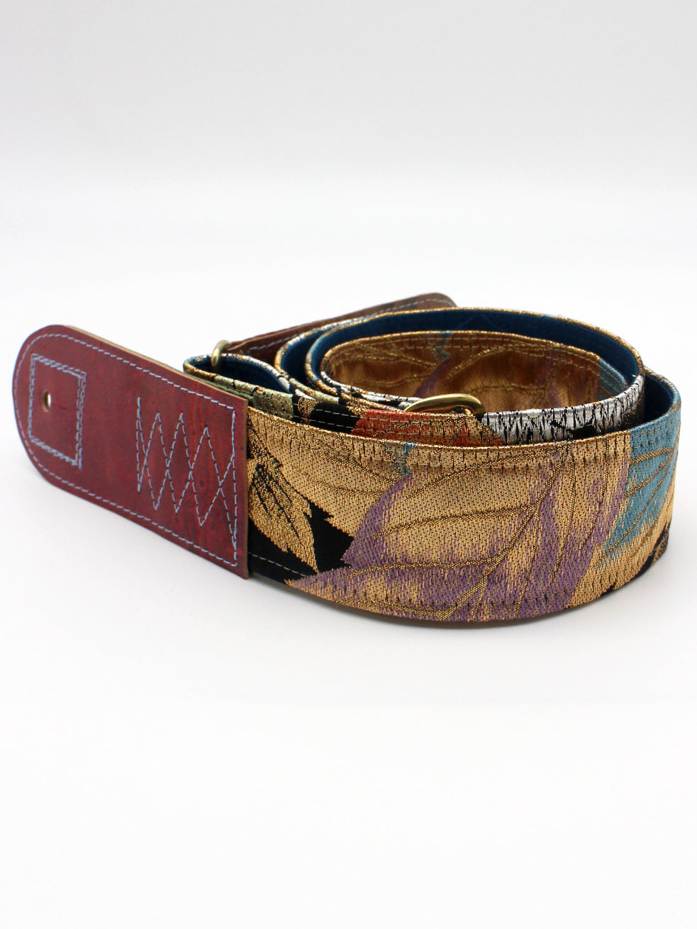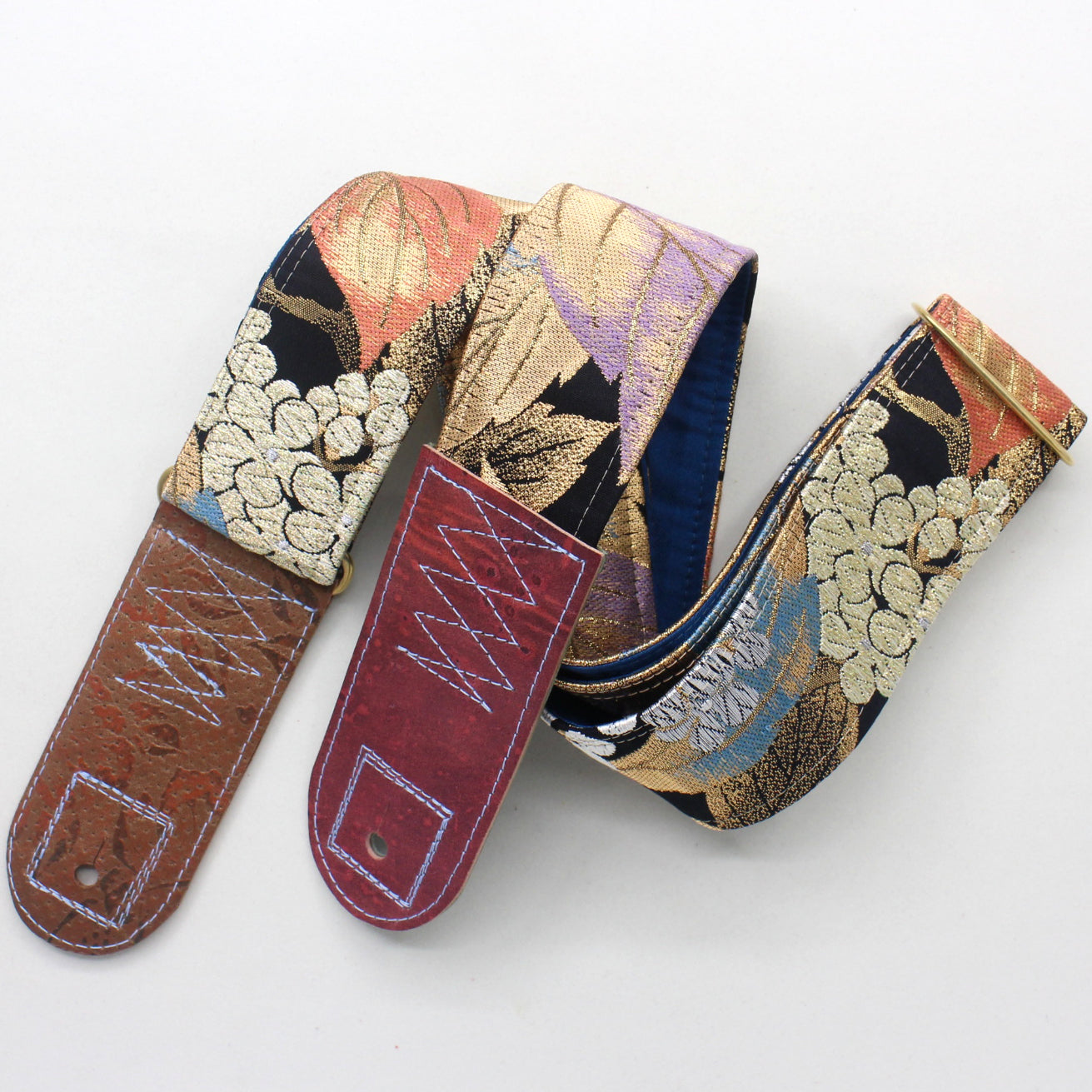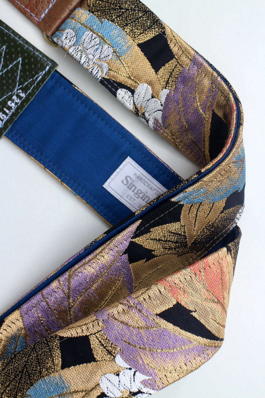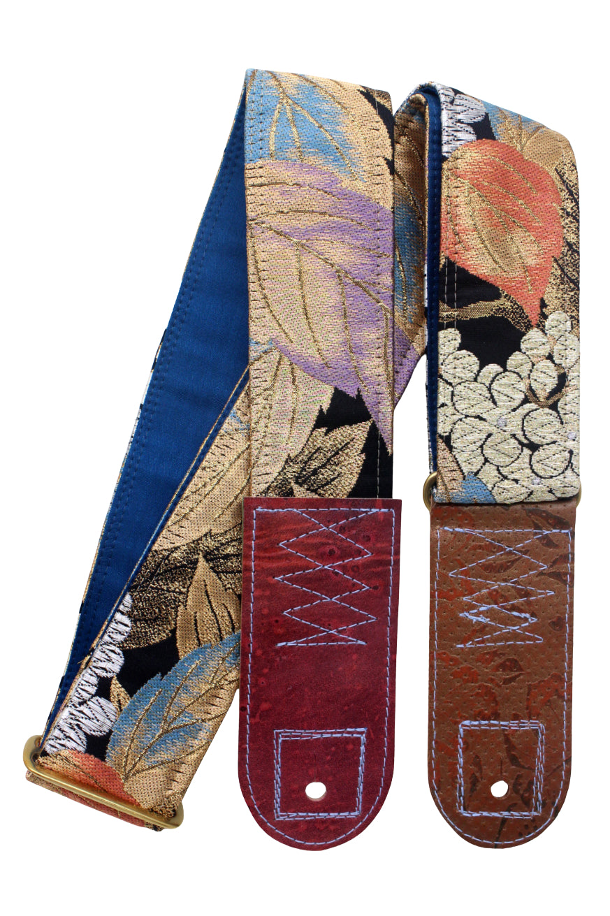 Unique and beautiful guitar strap [SC325192] - hand made in Japan from recycled silk woven kimono obi, leather and brass