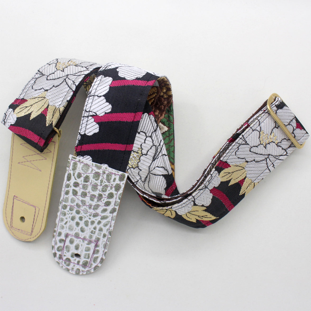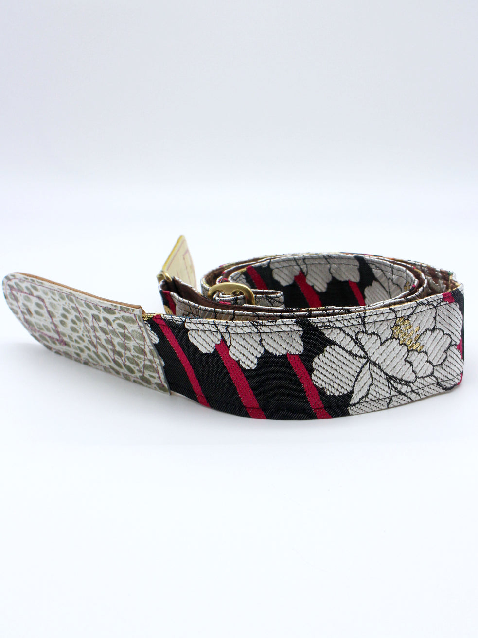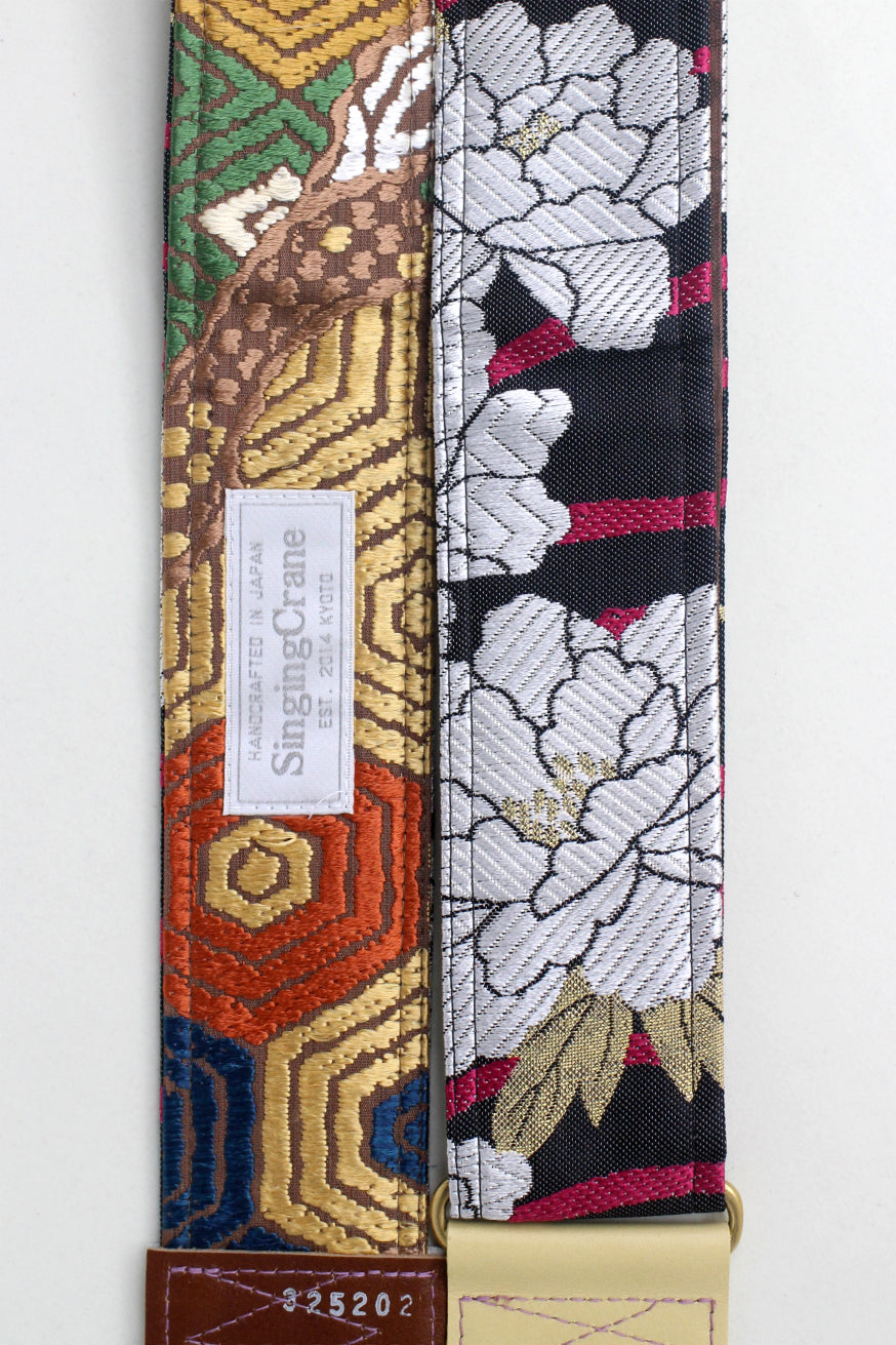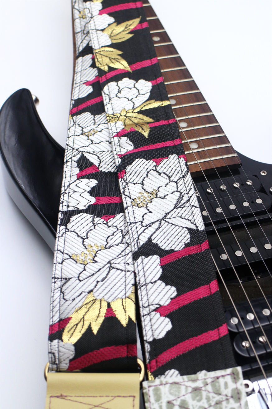 Unique and beautiful guitar strap [SC325202] - hand made in Japan from recycled silk woven kimono obi, leather and brass