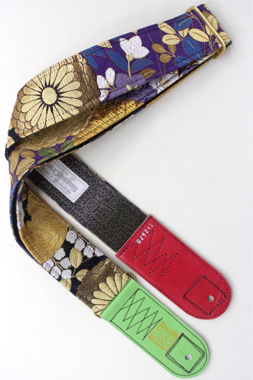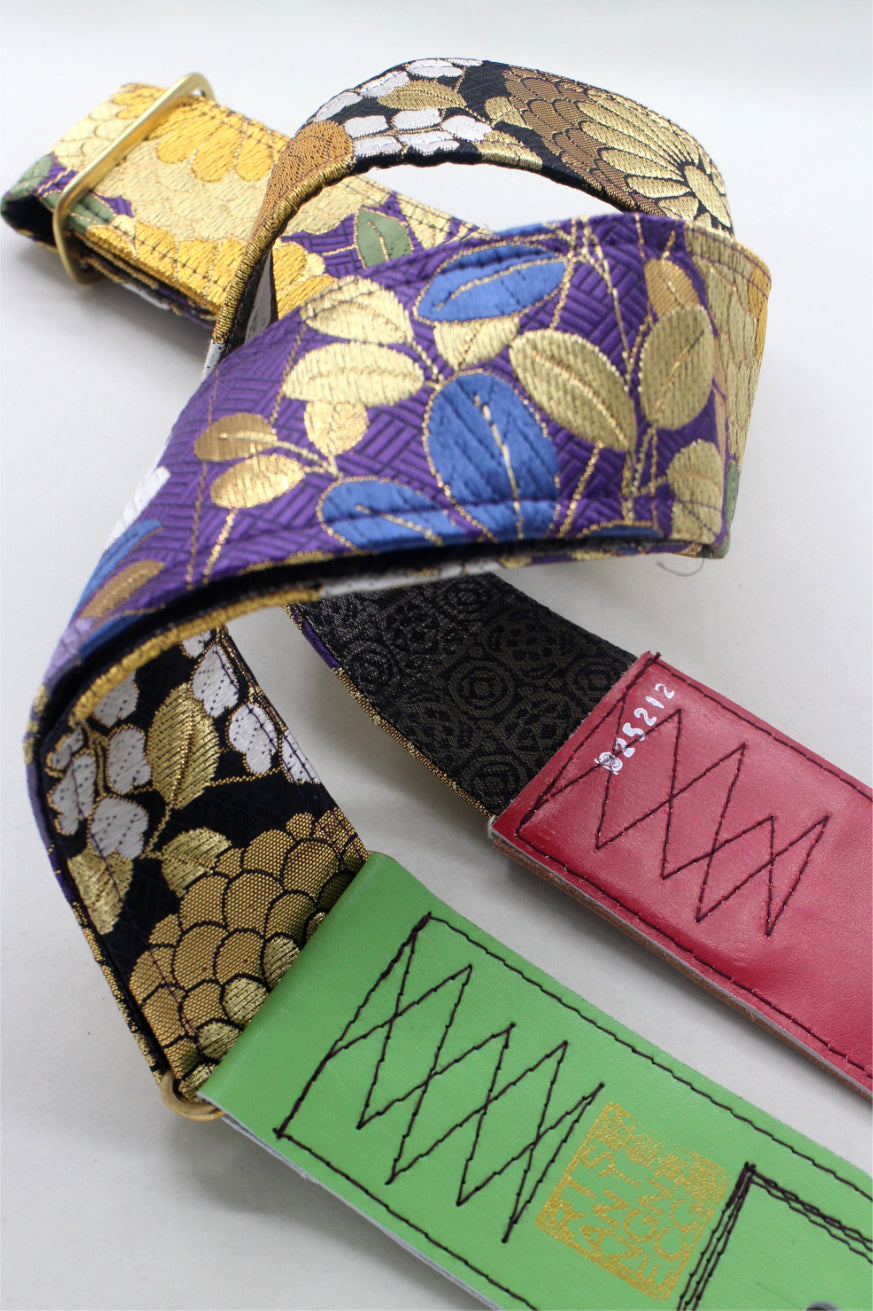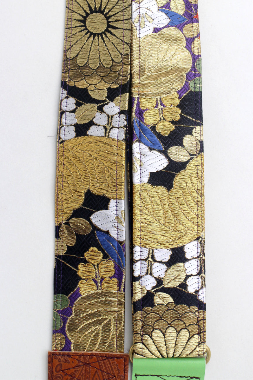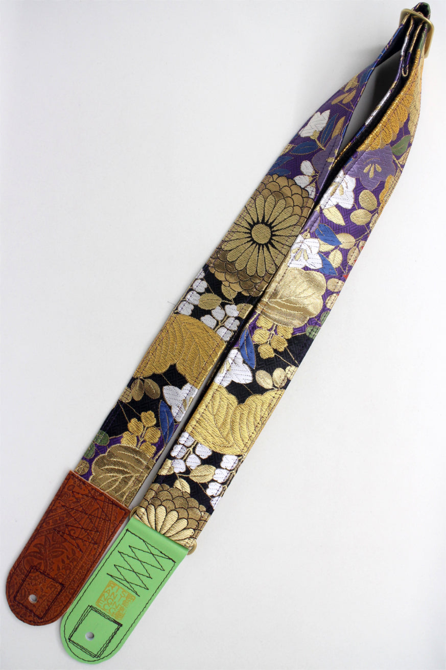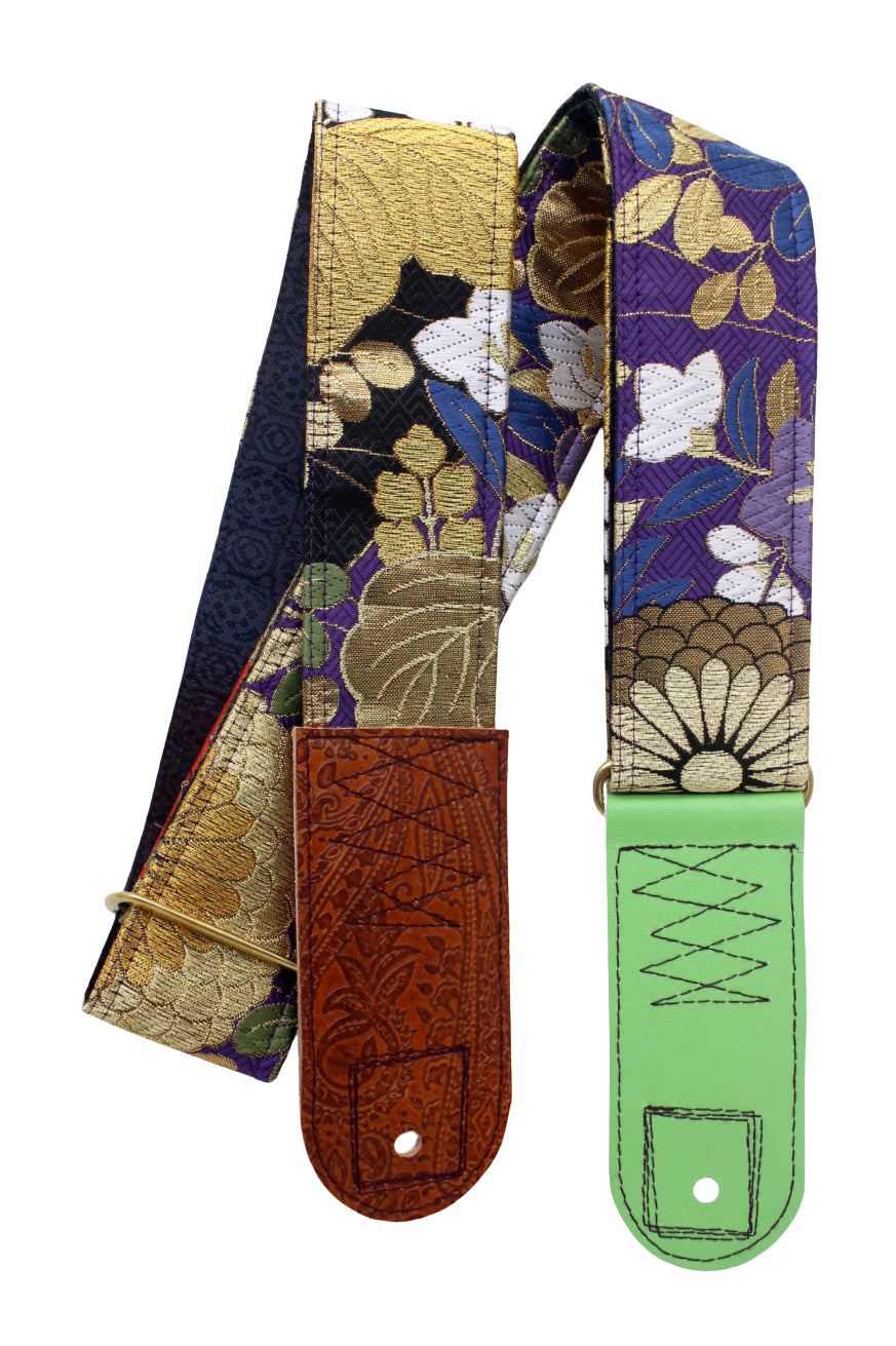 Unique and beautiful guitar strap [SC325212] - hand made in Japan from recycled silk woven kimono obi, leather and brass