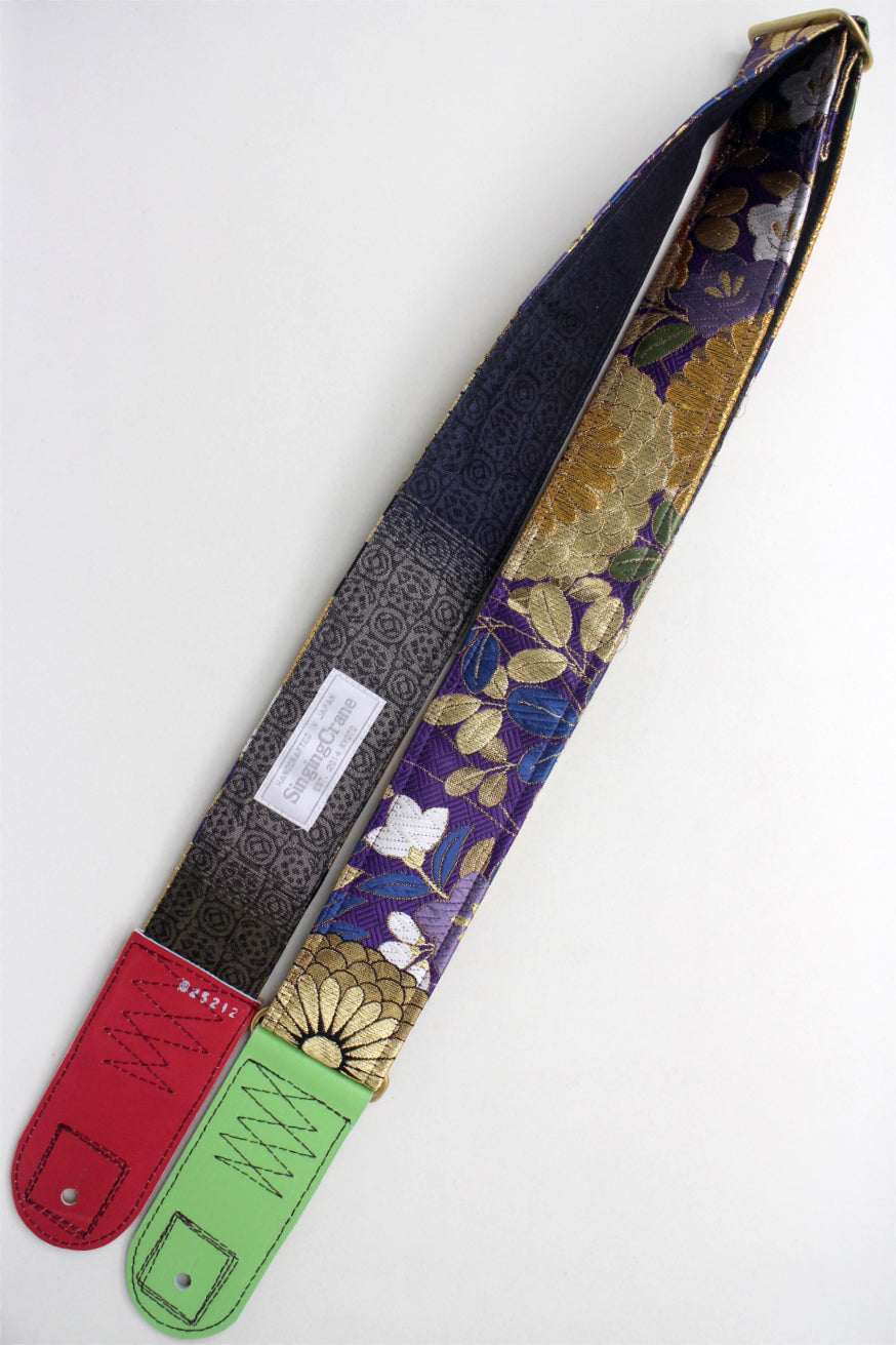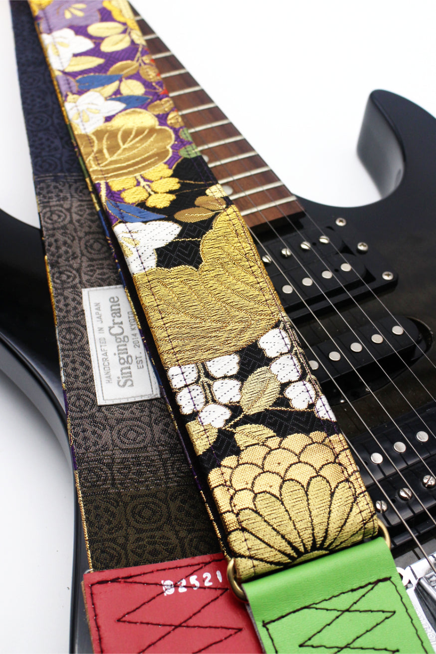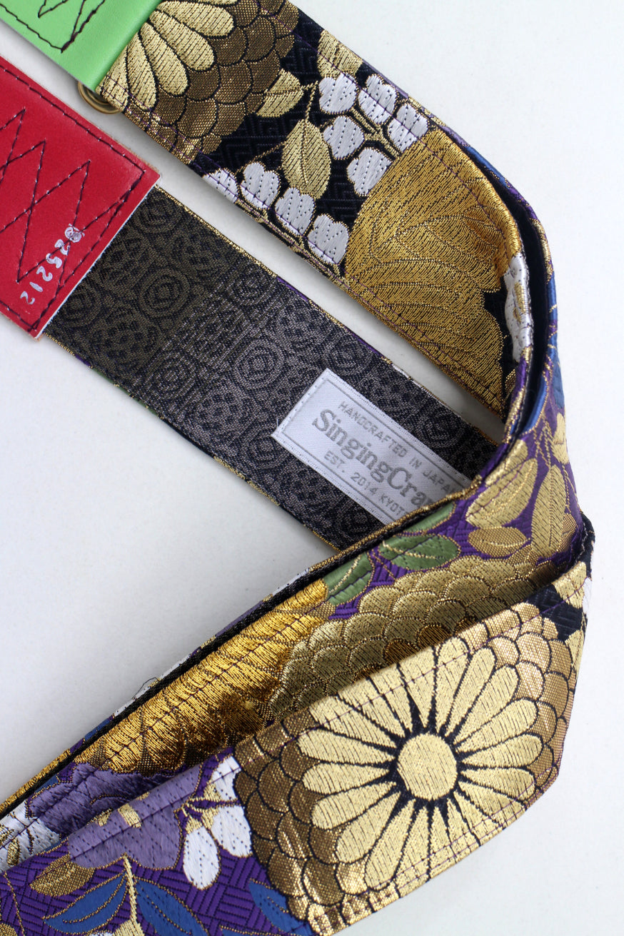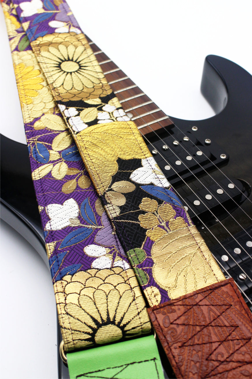 Unique and beautiful guitar strap [SC325212] - hand made in Japan from recycled silk woven kimono obi, leather and brass
