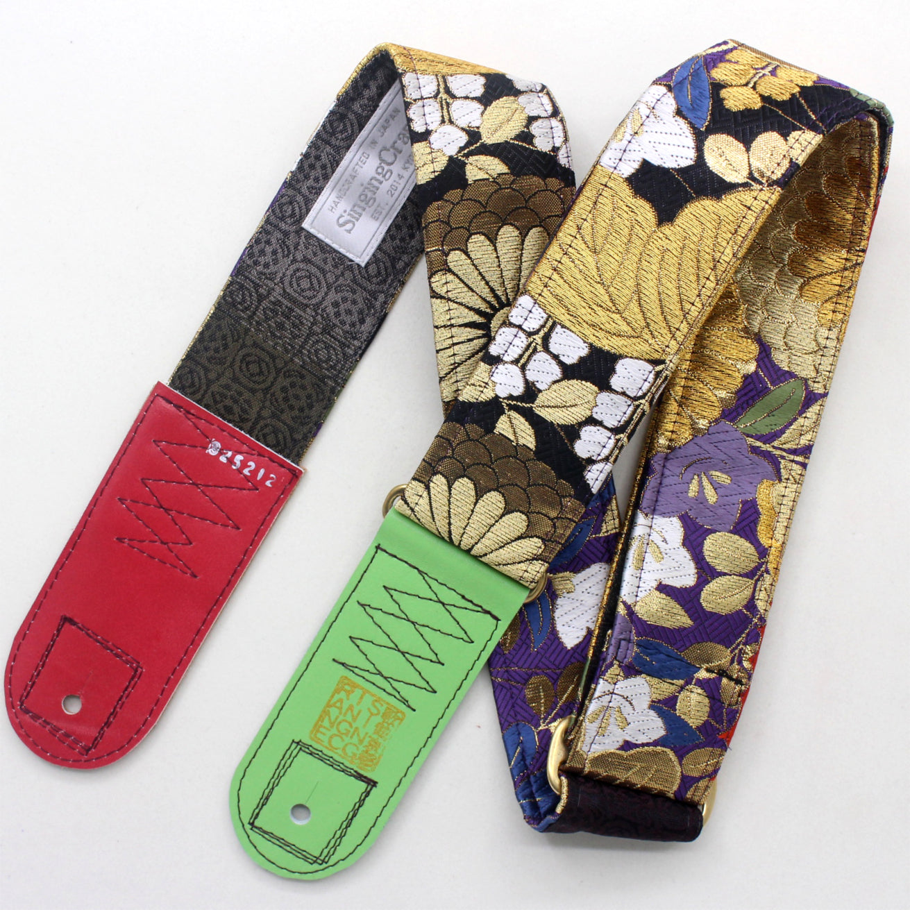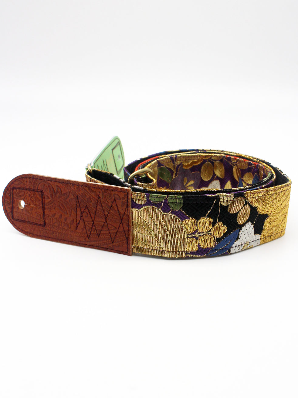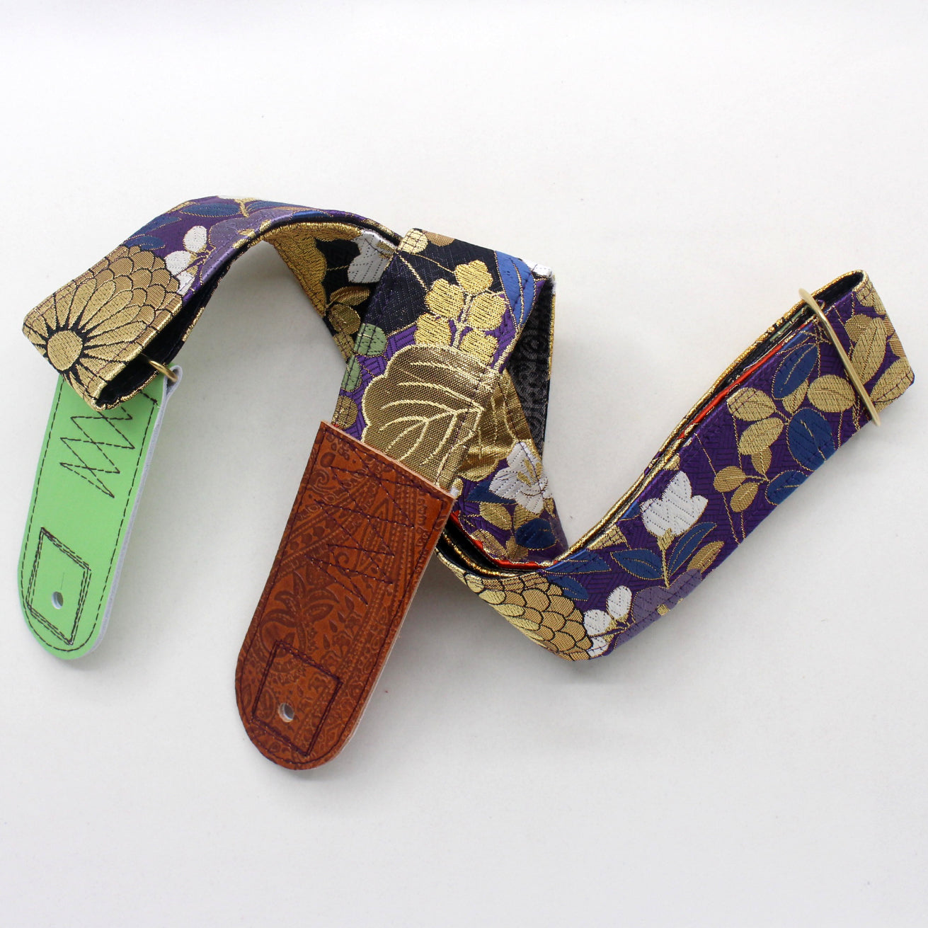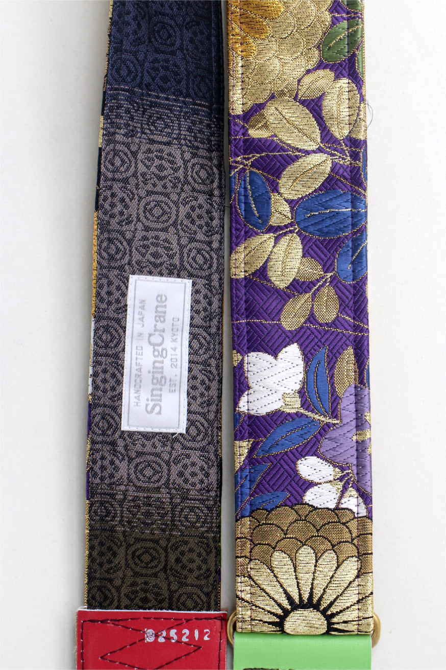 Unique and beautiful guitar strap [SC325212] - hand made in Japan from recycled silk woven kimono obi, leather and brass