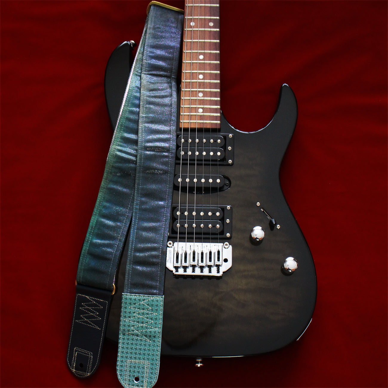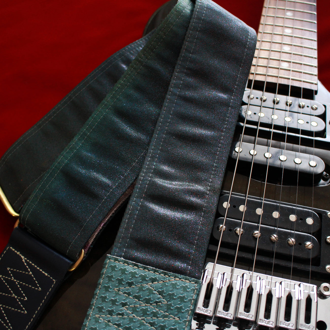 Unique and beautiful guitar strap [SC519152] - hand made in Japan from vintage silk kimono, leather and brass