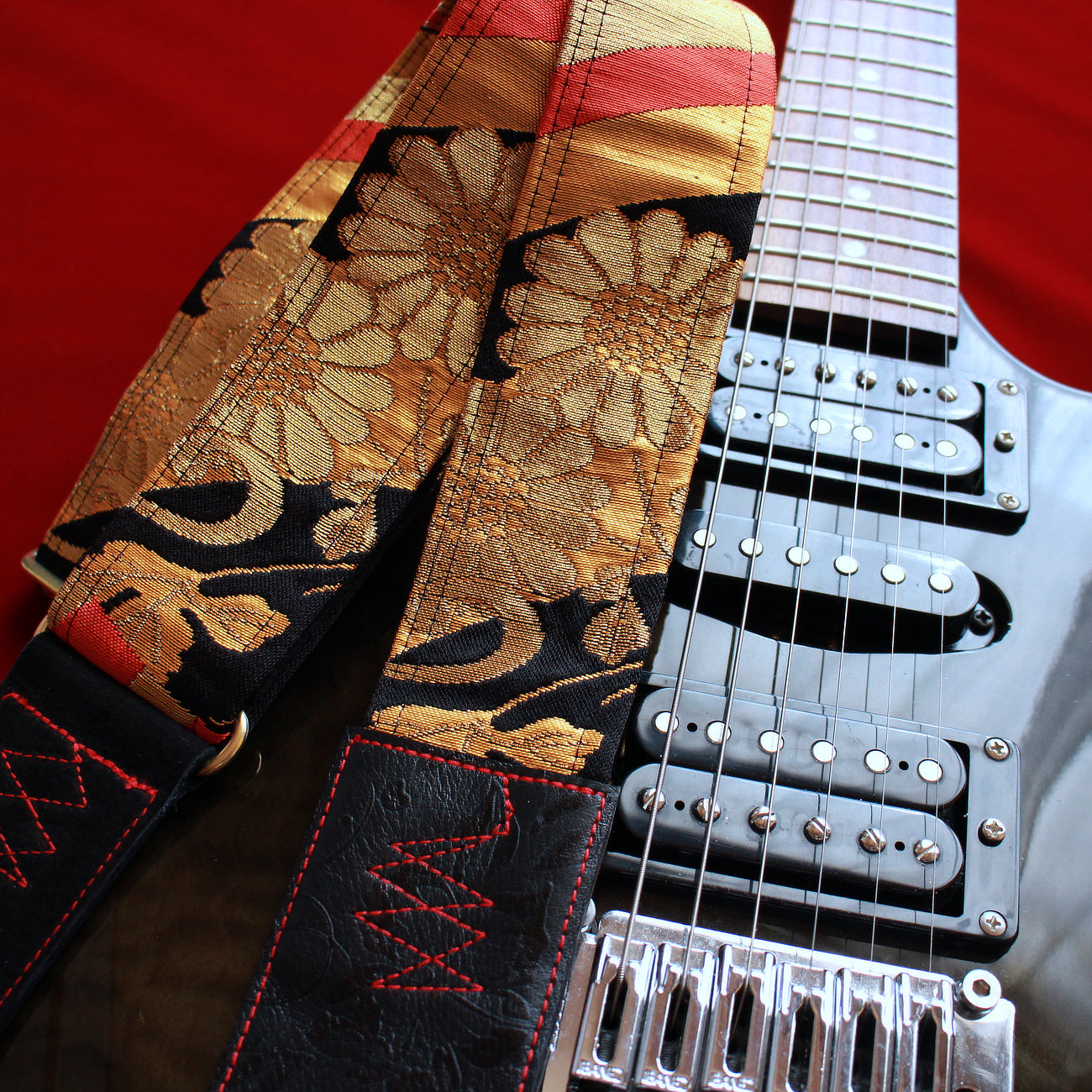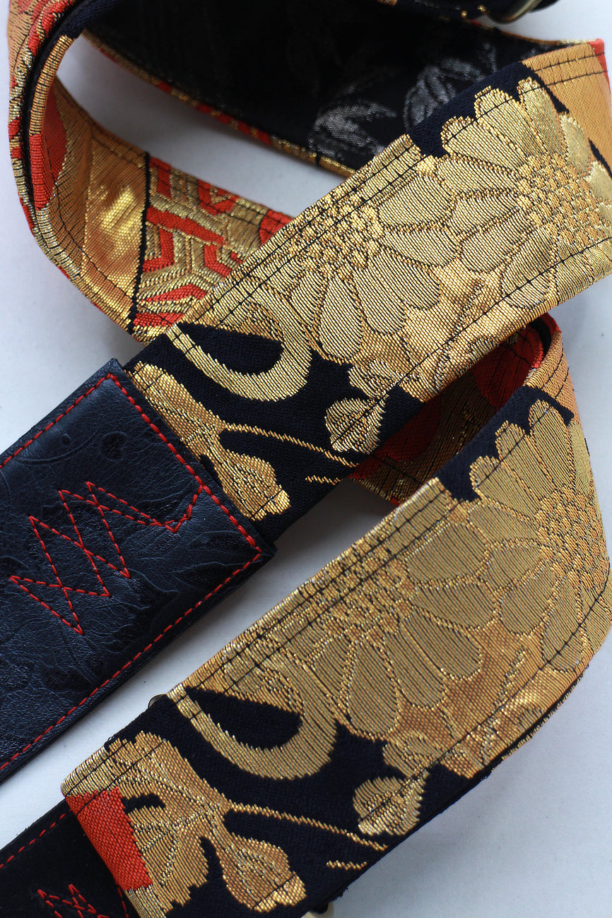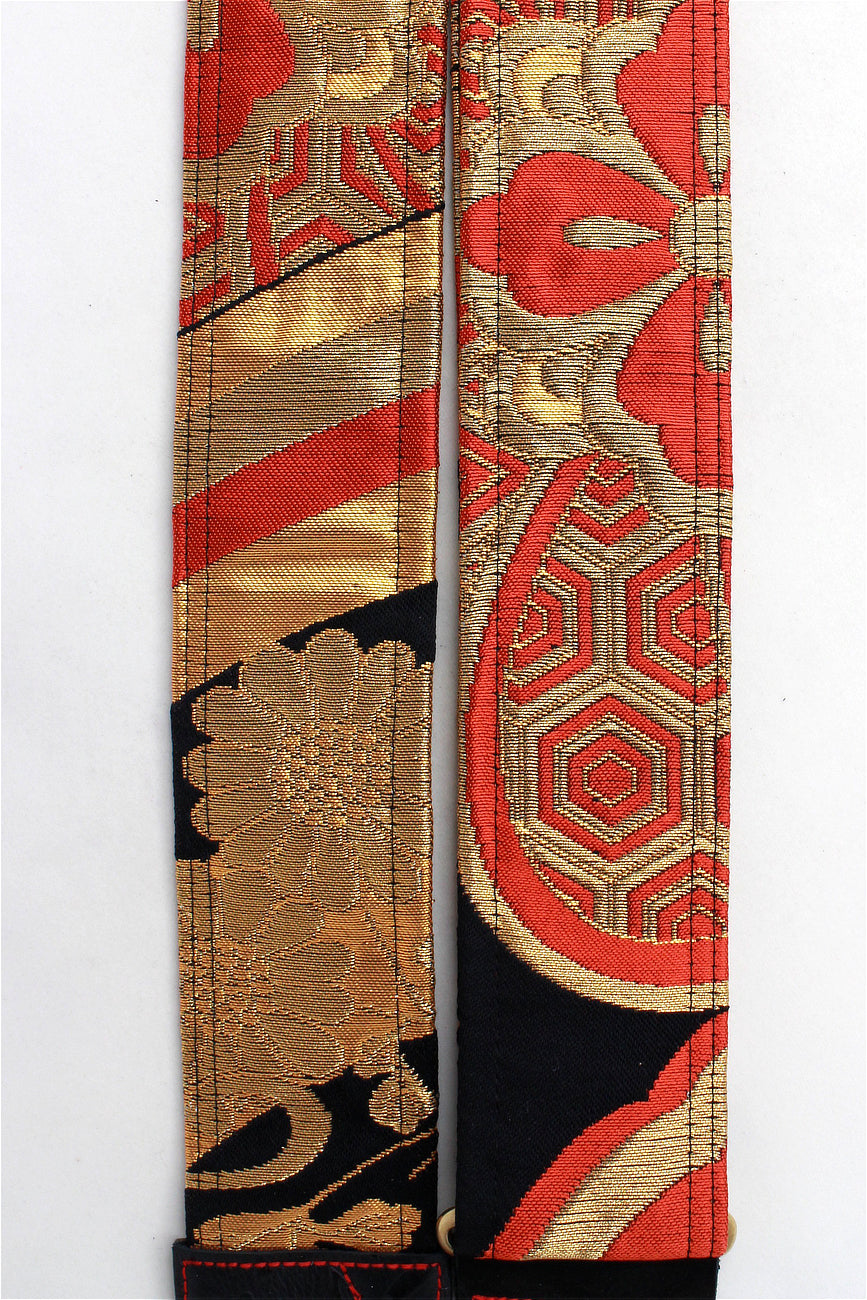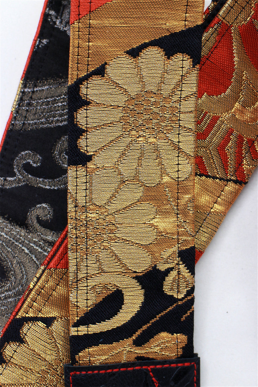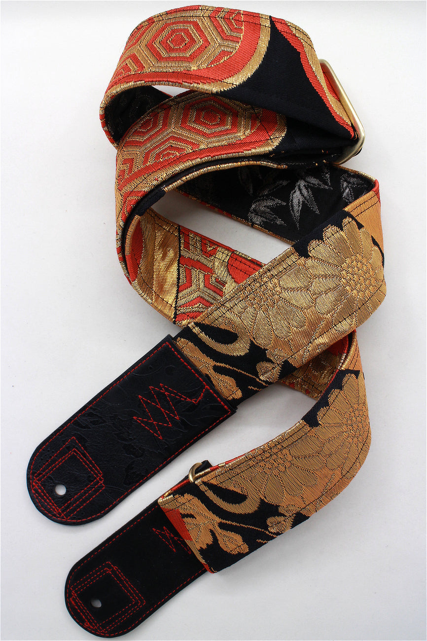 Unique and beautiful guitar strap [SC521073] - hand made in Japan from vintage silk kimono, leather and brass