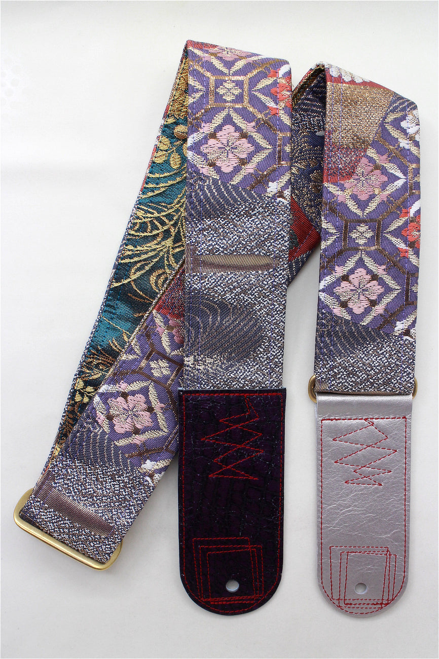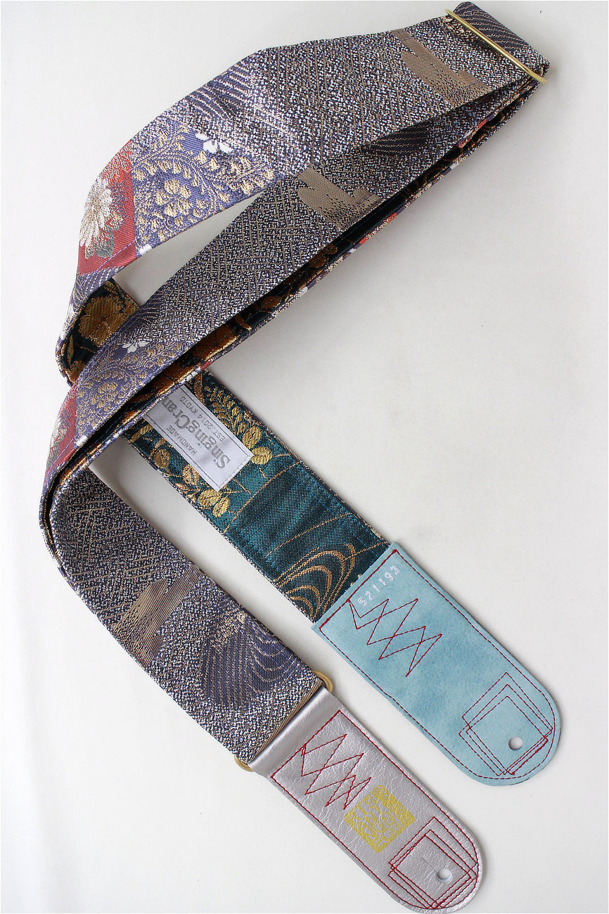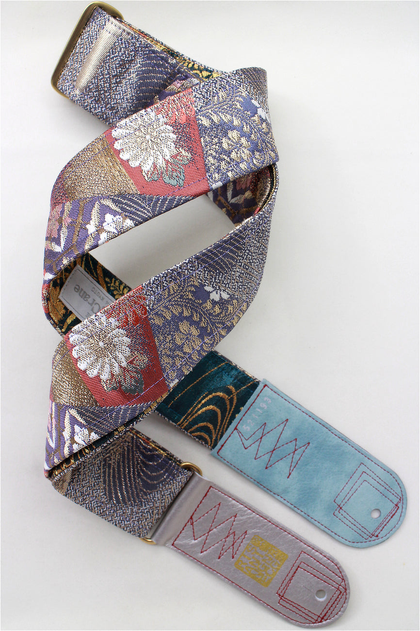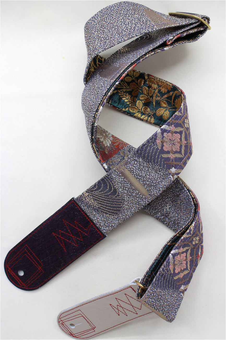 Unique and beautiful guitar strap [SC521193] - hand made in Japan from vintage silk kimono, leather and brass