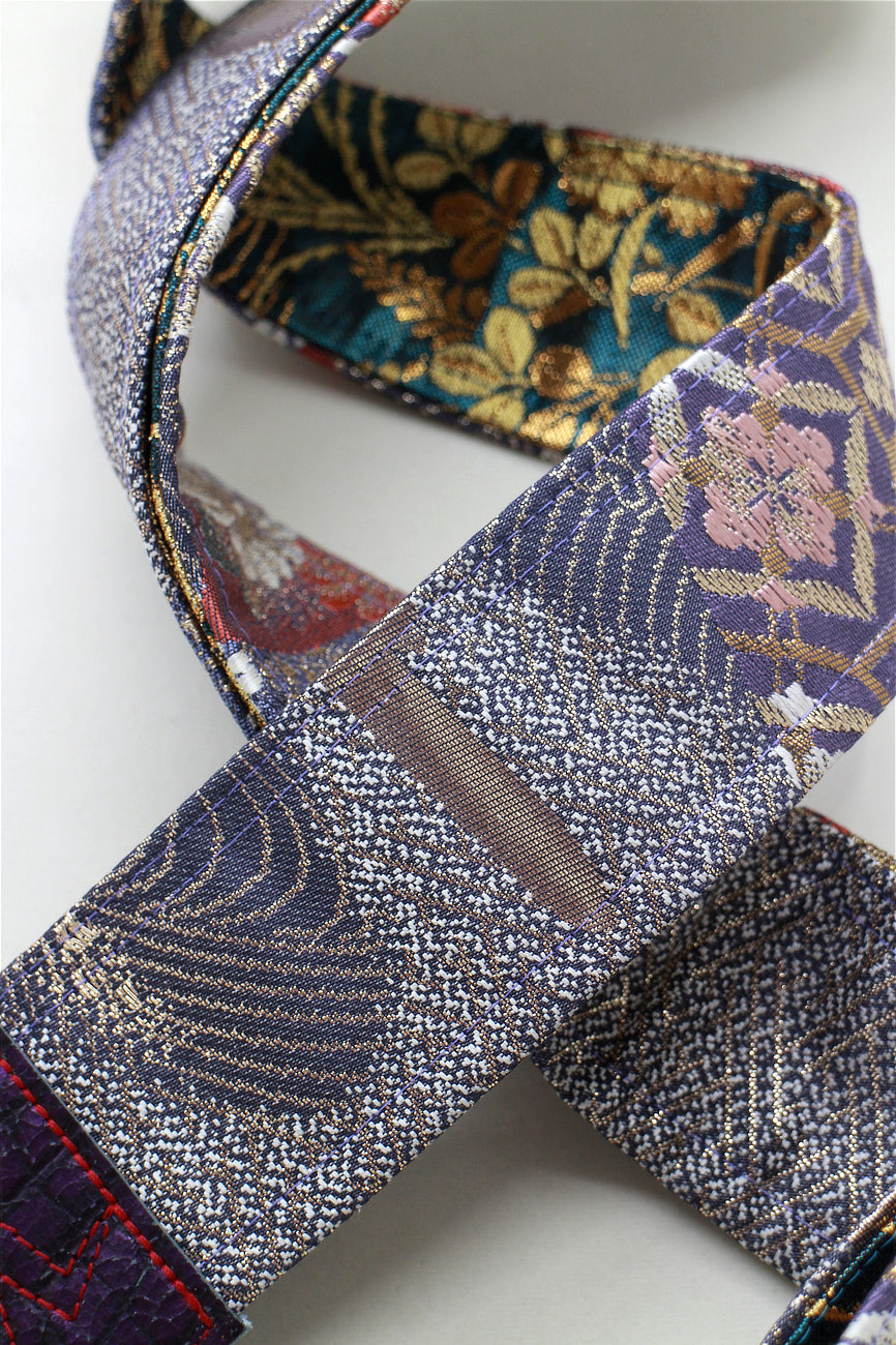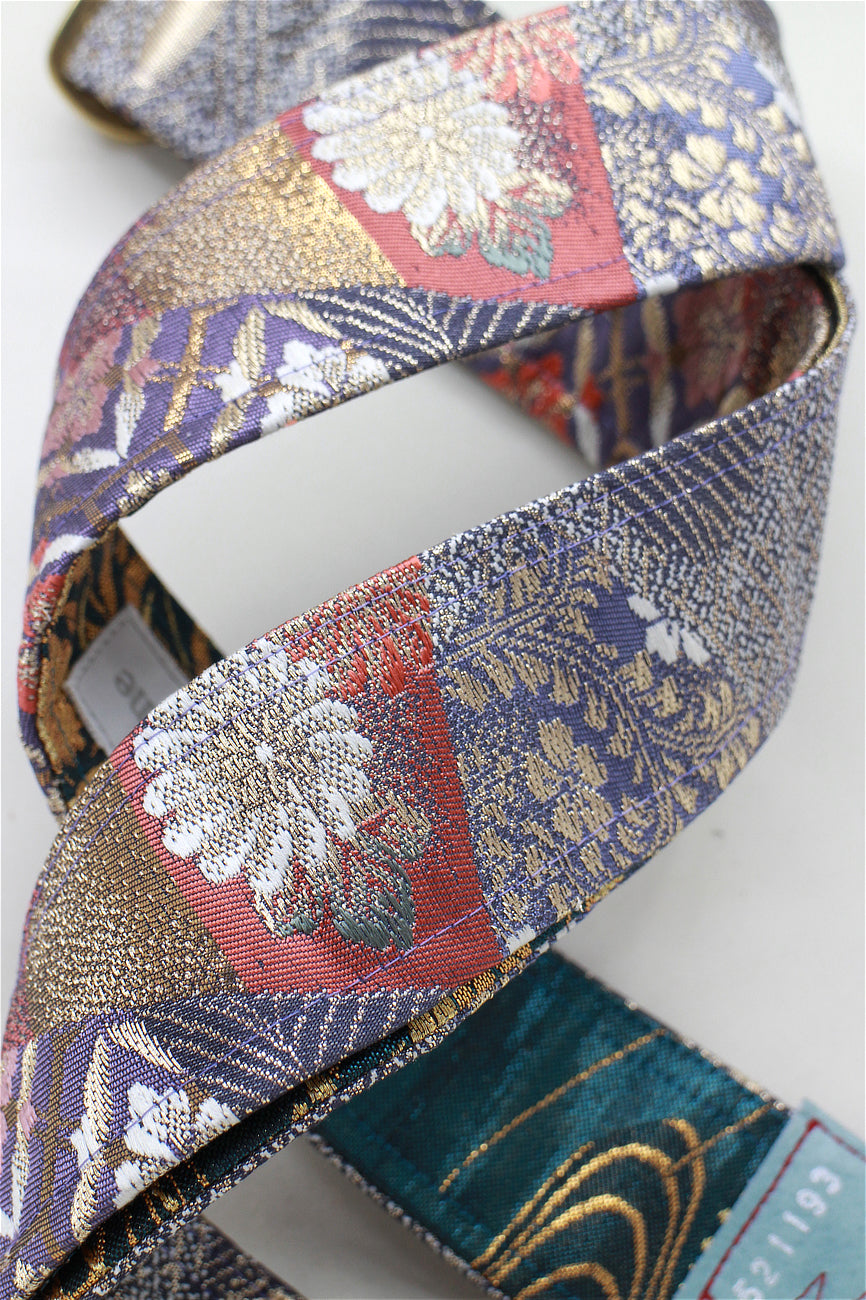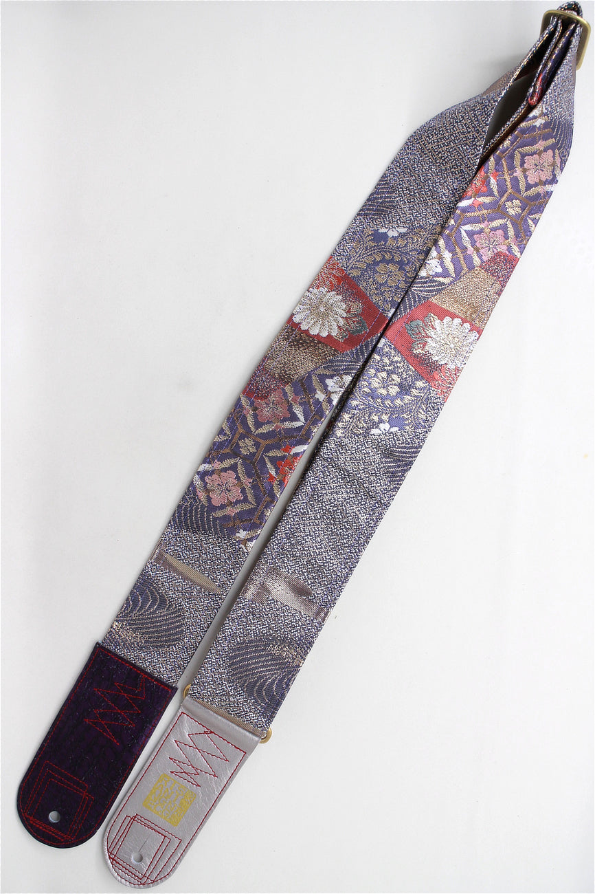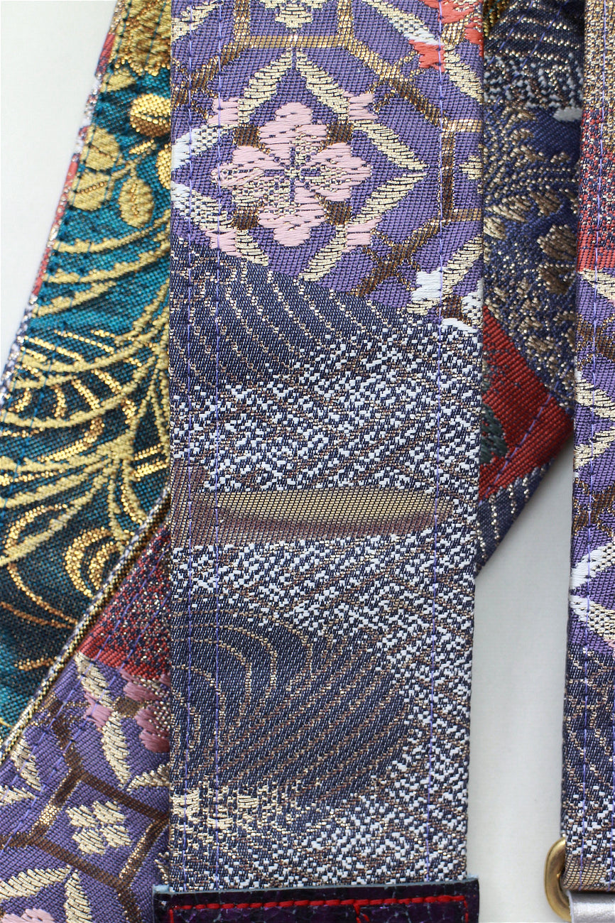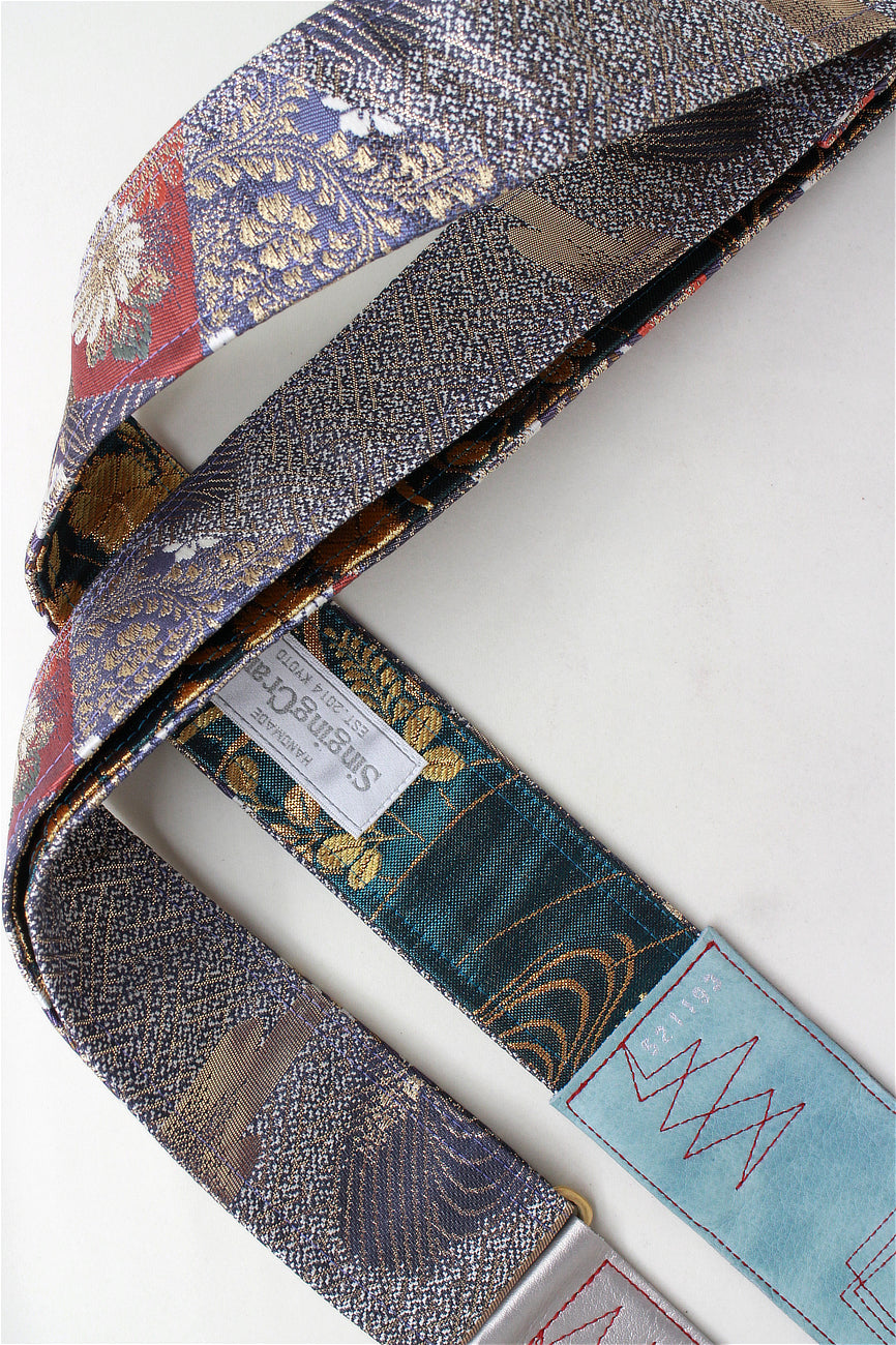 Unique and beautiful guitar strap [SC521193] - hand made in Japan from vintage silk kimono, leather and brass