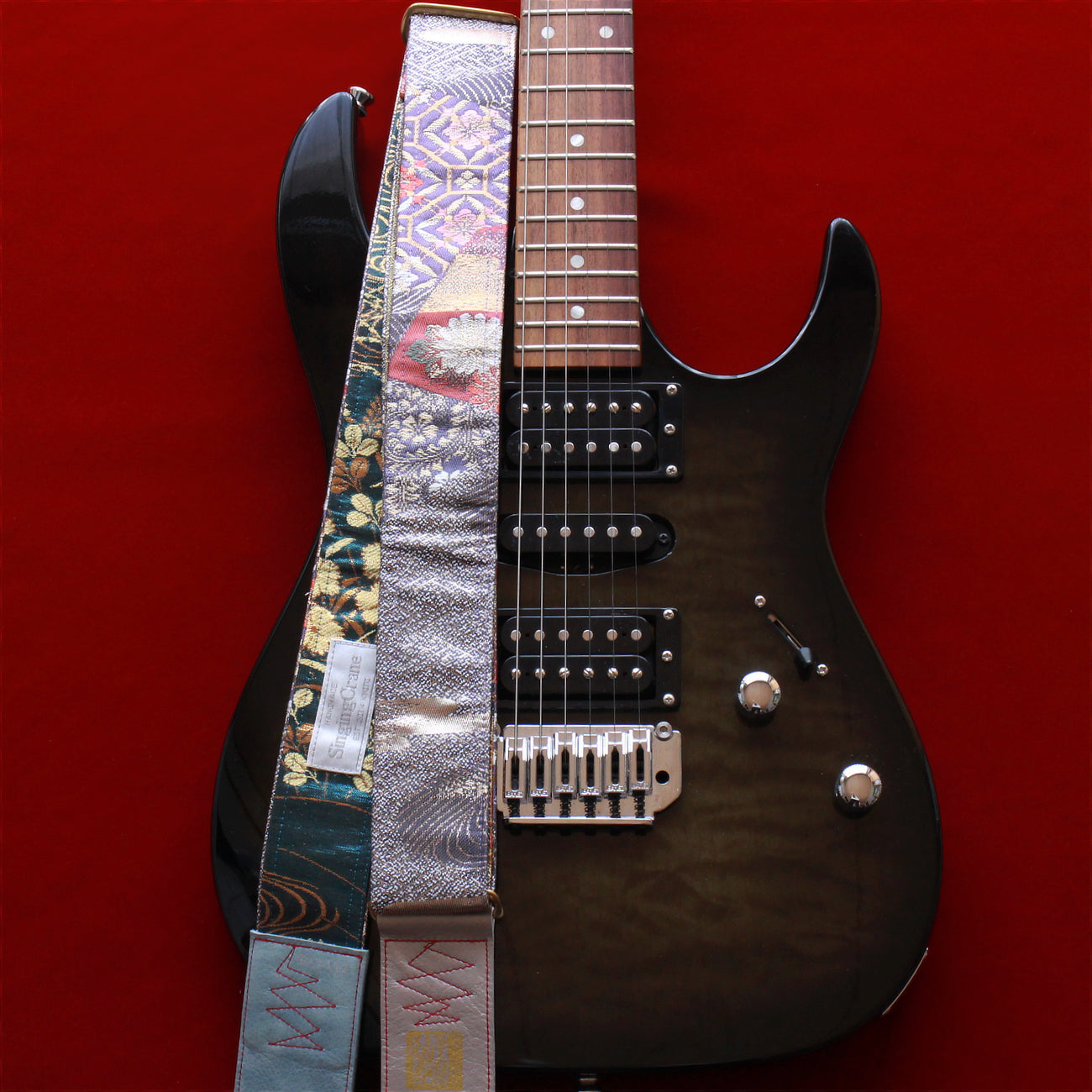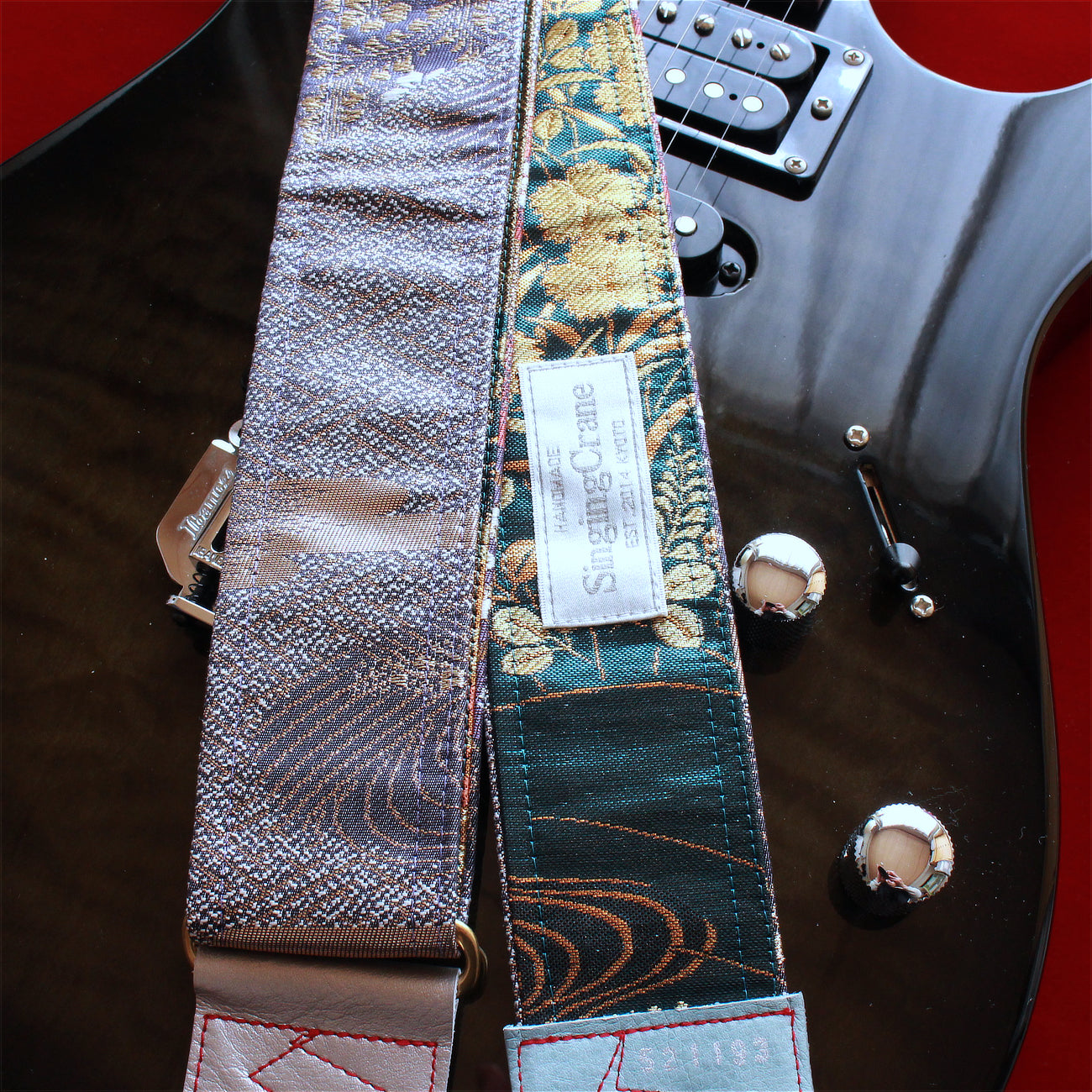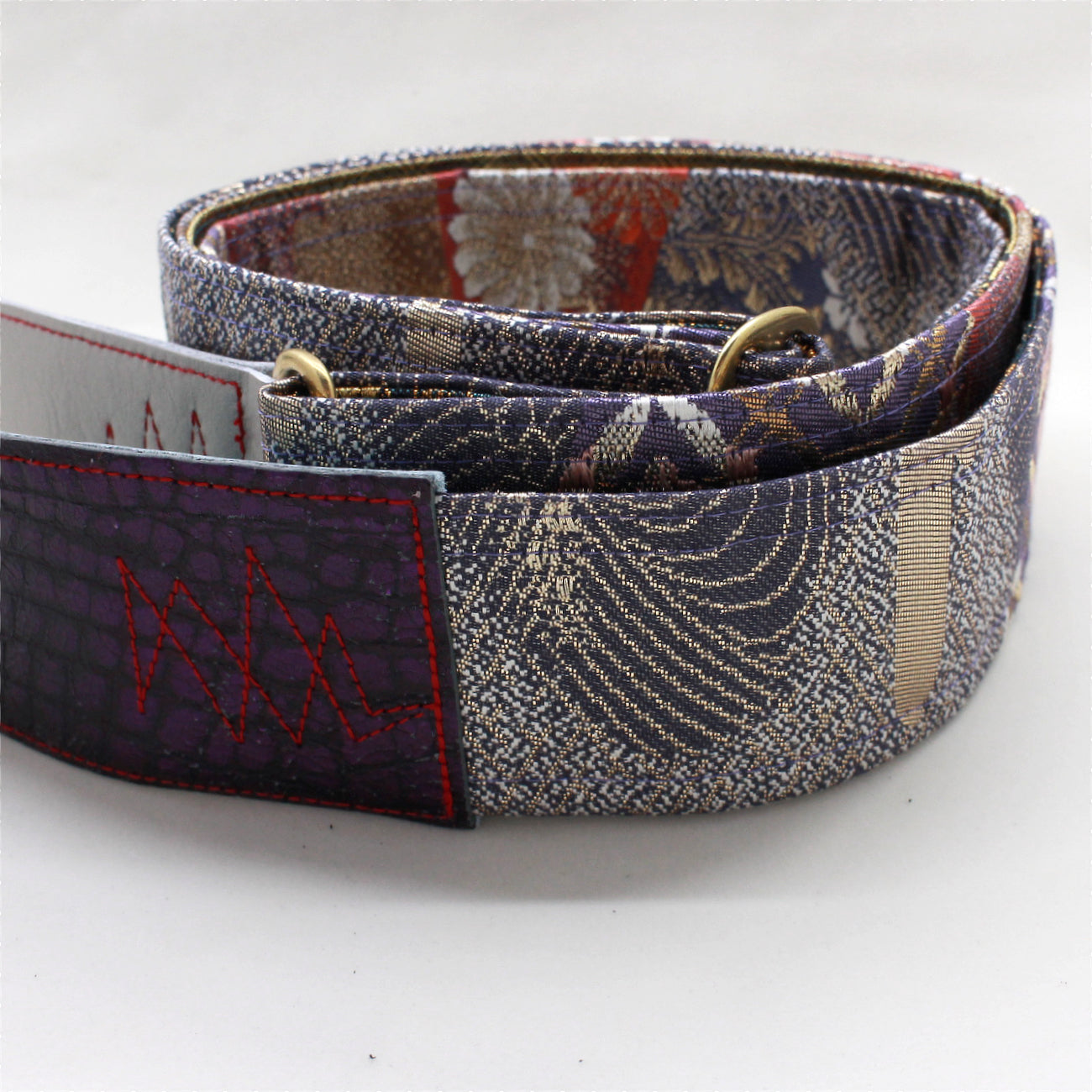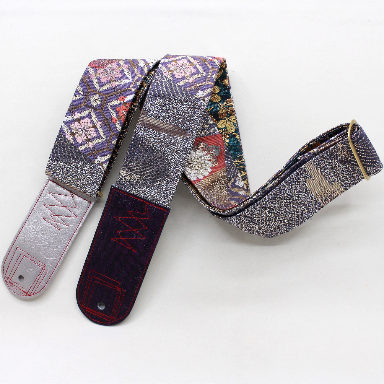 Unique and beautiful guitar strap [SC521193] - hand made in Japan from vintage silk kimono, leather and brass