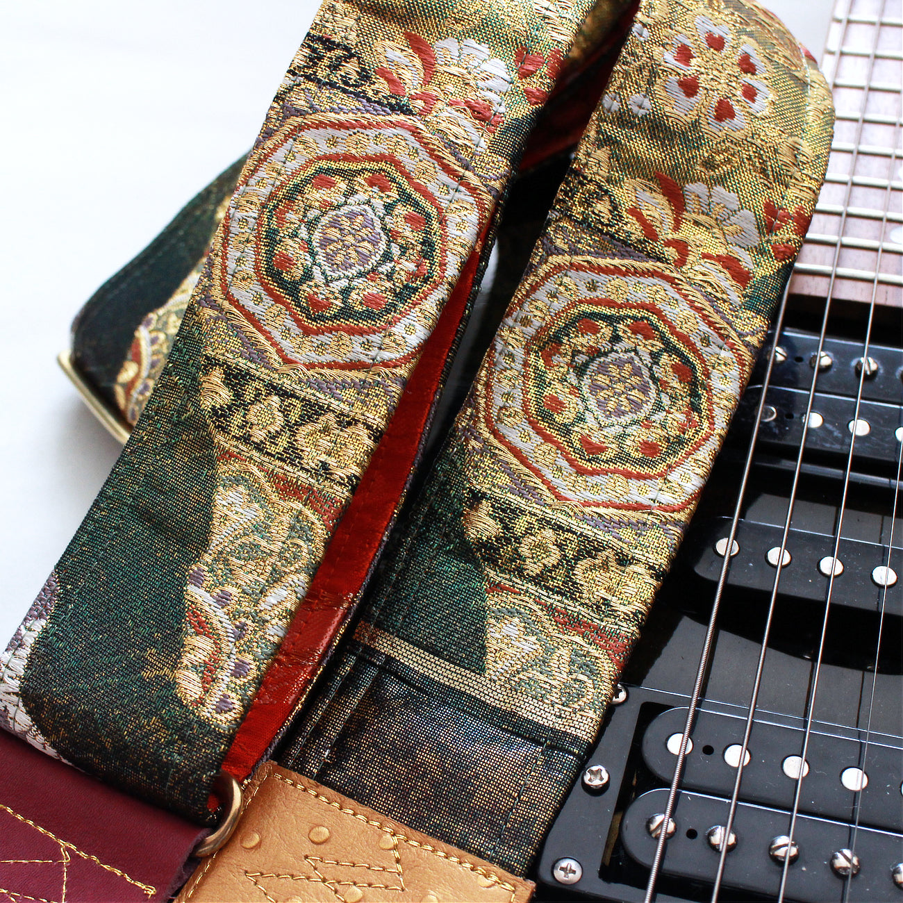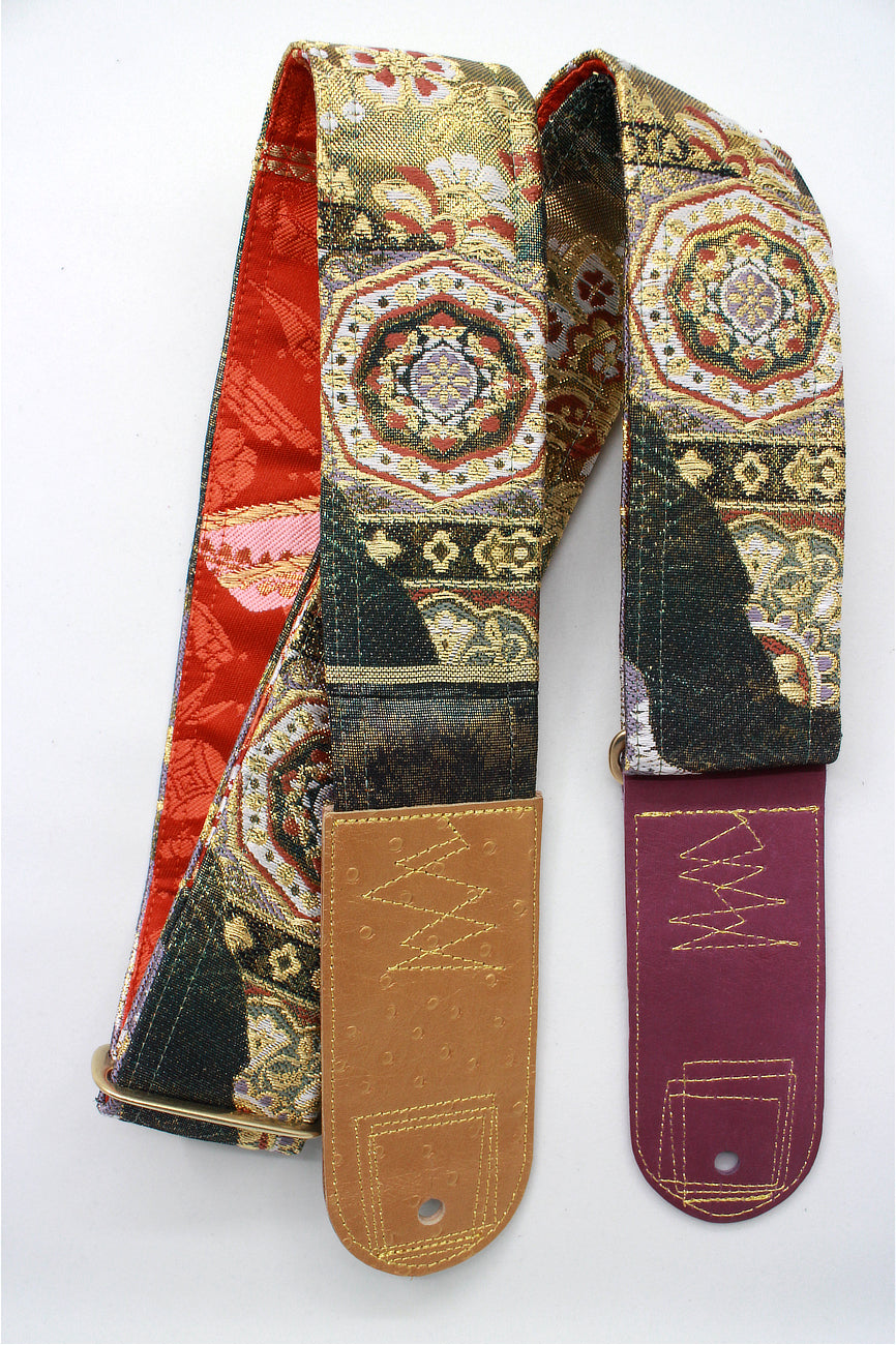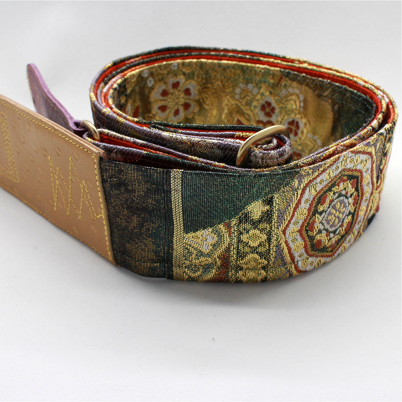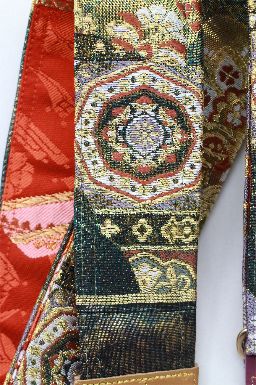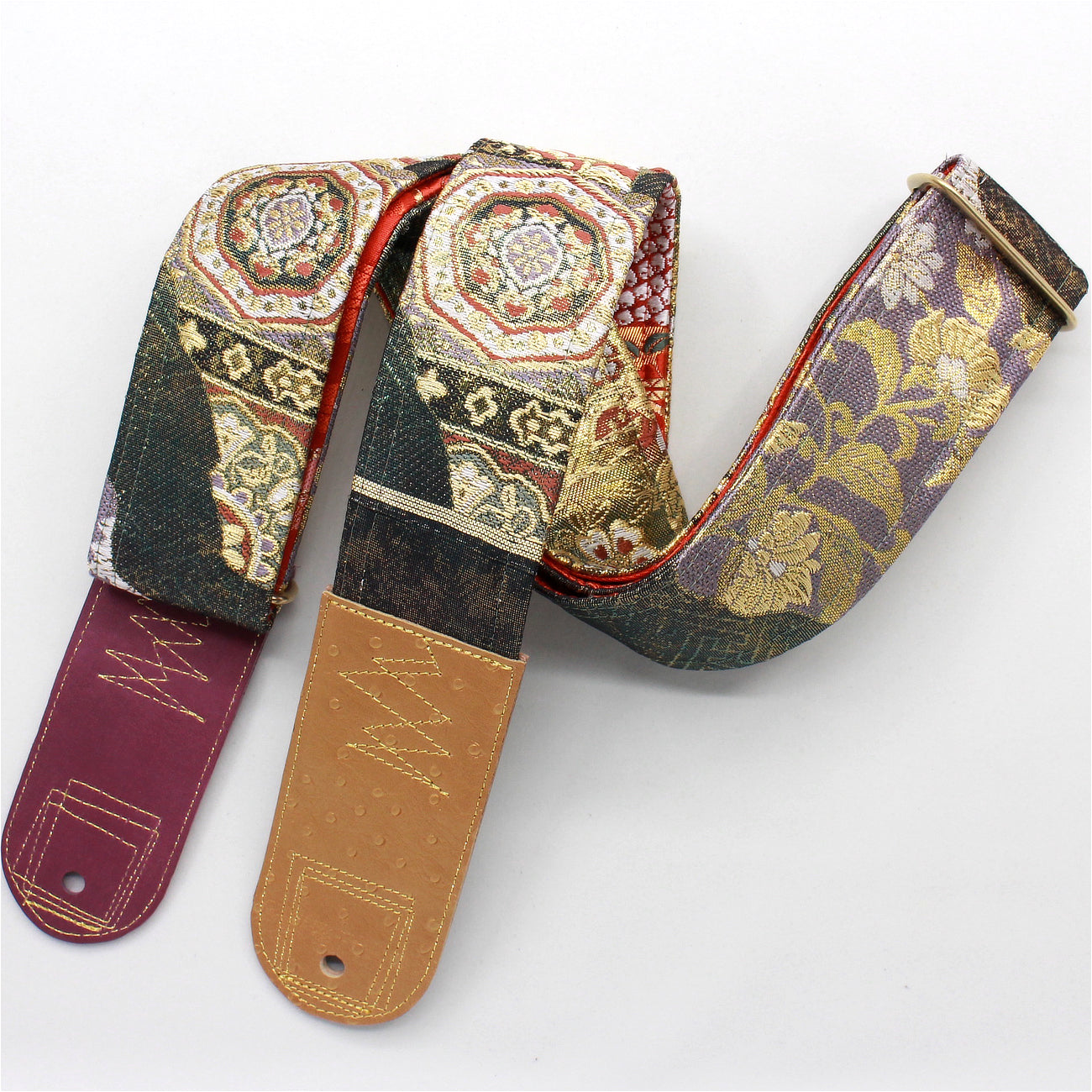 Unique and beautiful guitar strap [SC522233] - hand made in Japan from vintage silk kimono, leather and brass