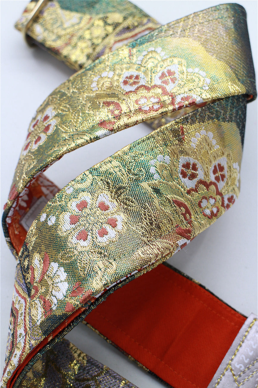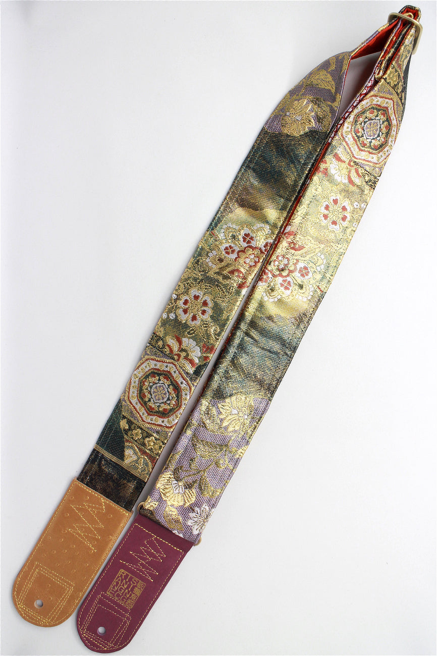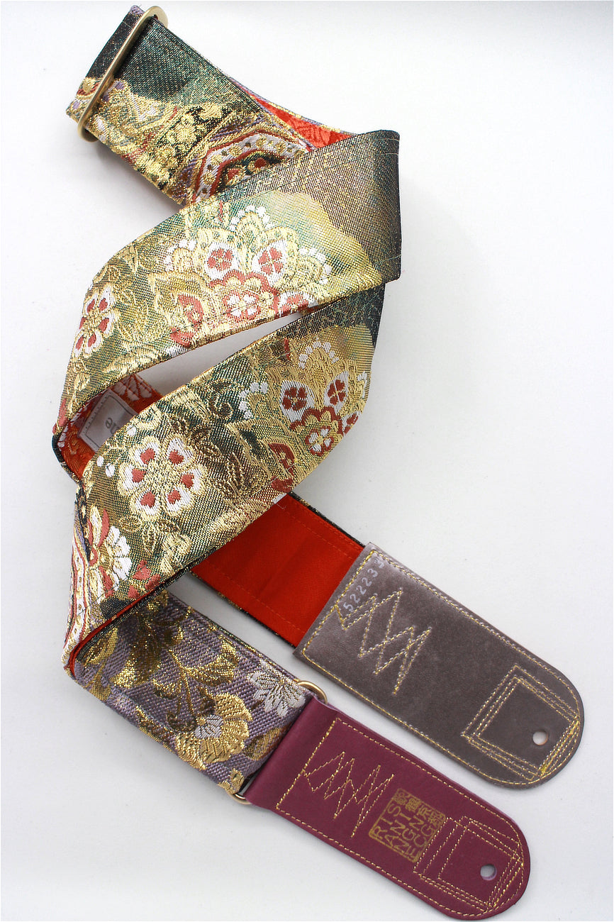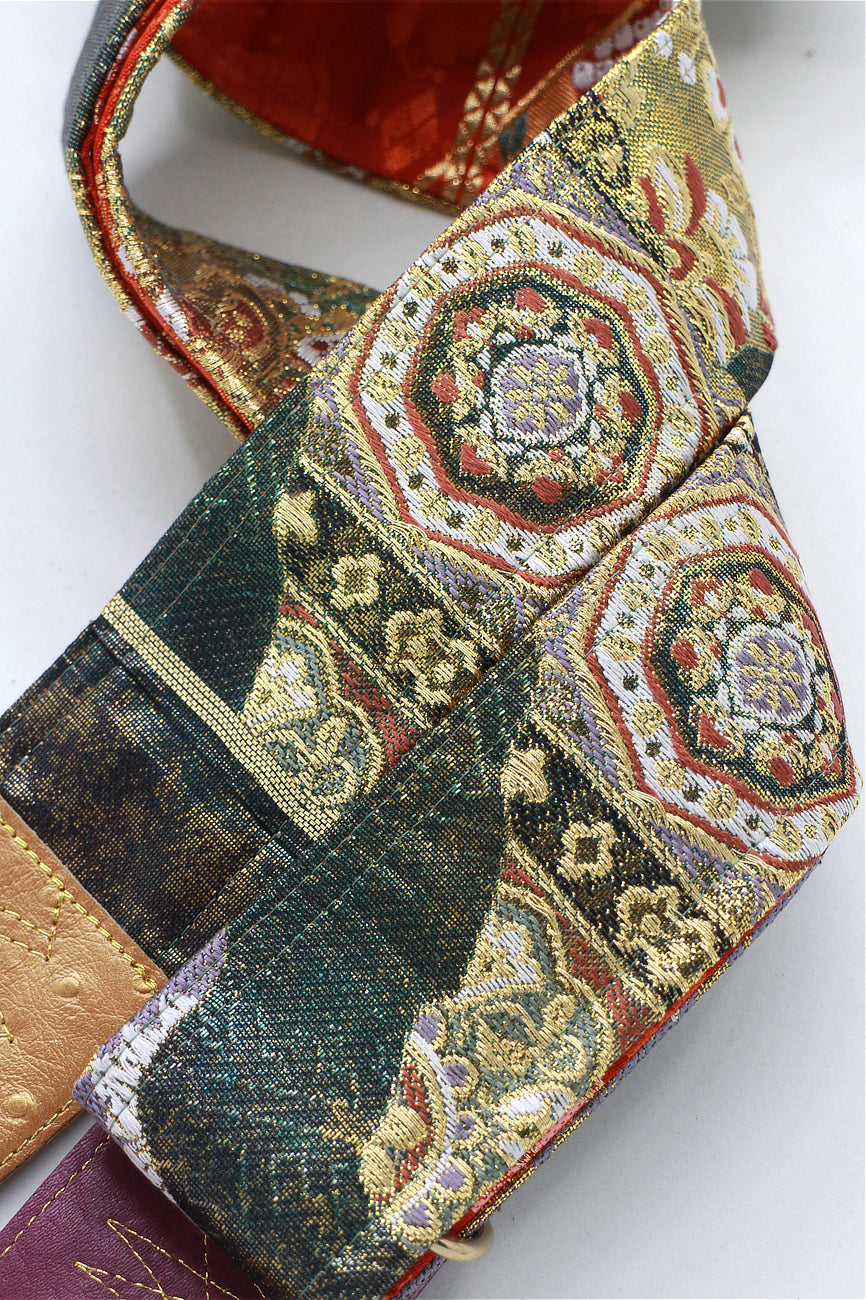 Unique and beautiful guitar strap [SC522233] - hand made in Japan from vintage silk kimono, leather and brass