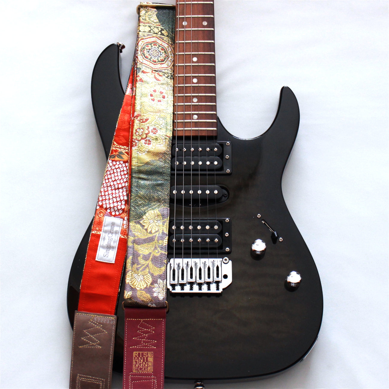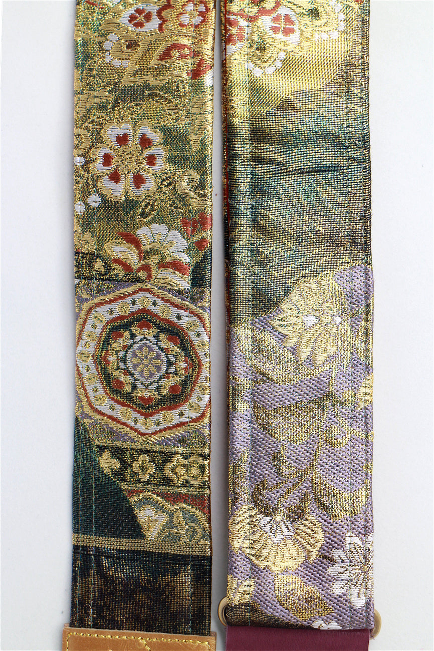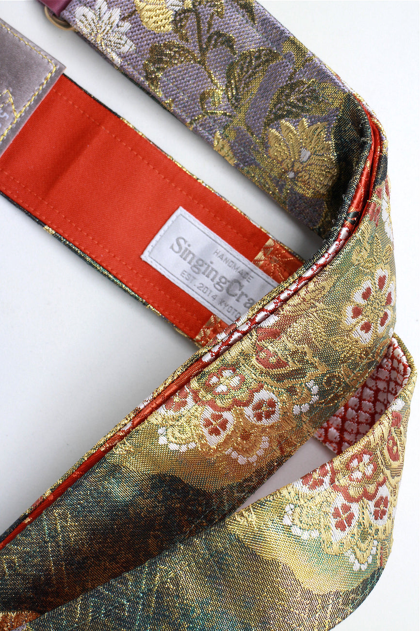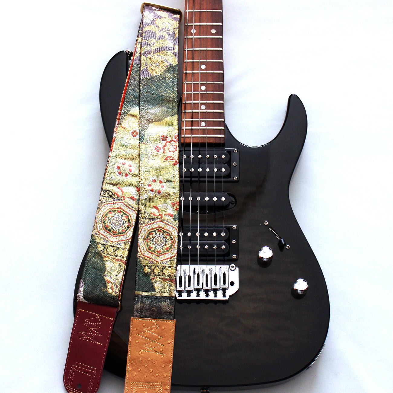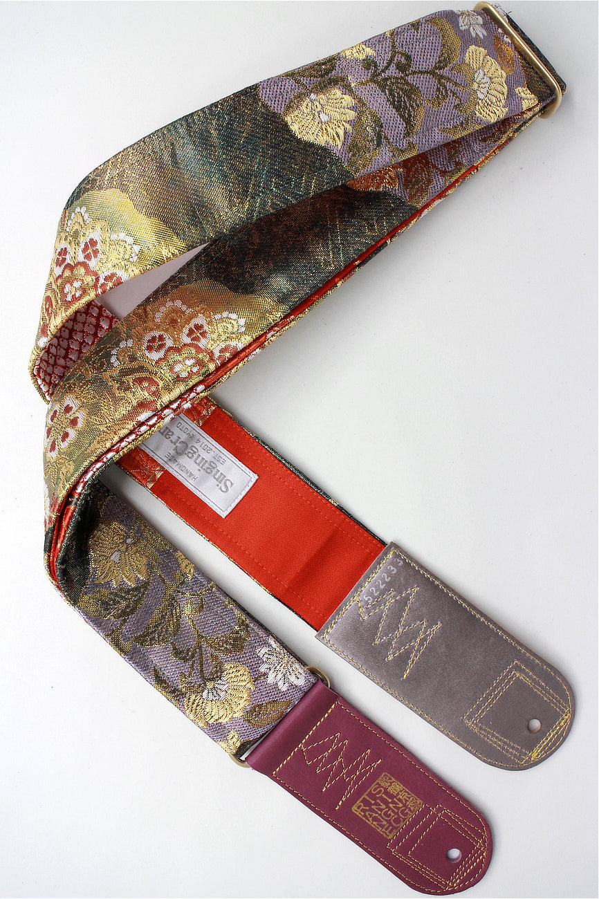 Unique and beautiful guitar strap [SC522233] - hand made in Japan from vintage silk kimono, leather and brass