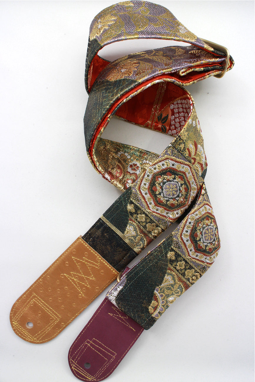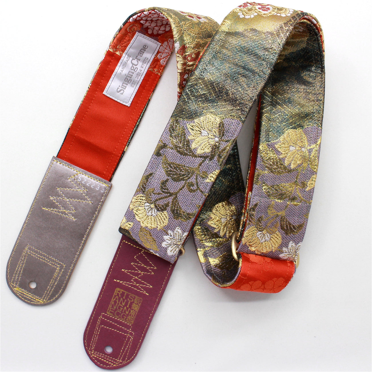 Brand new Singing Crane handmade vintage silk kimono obi guitar strap