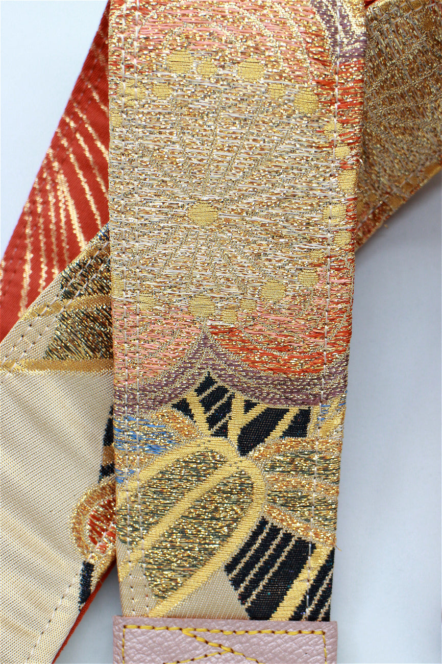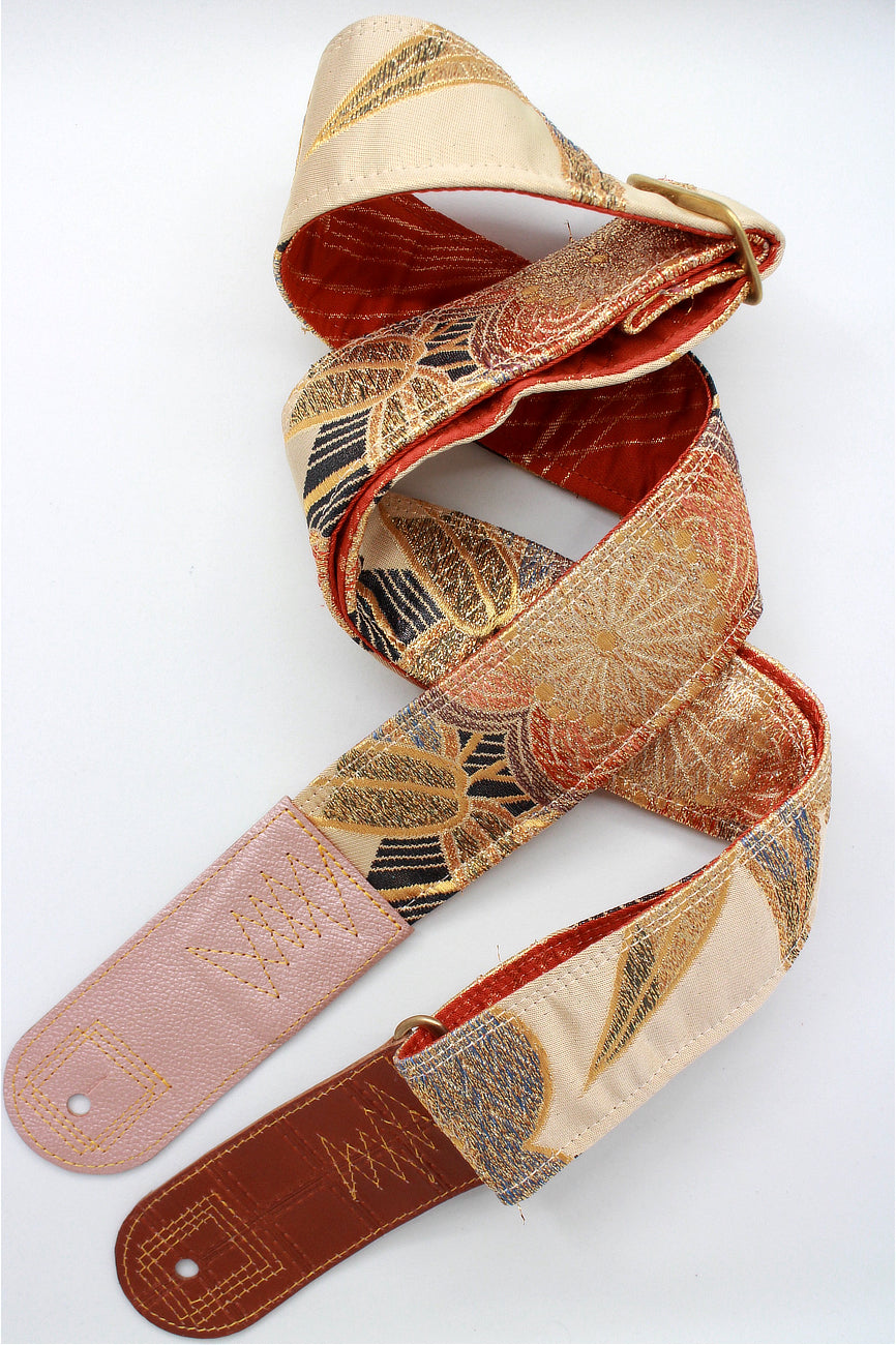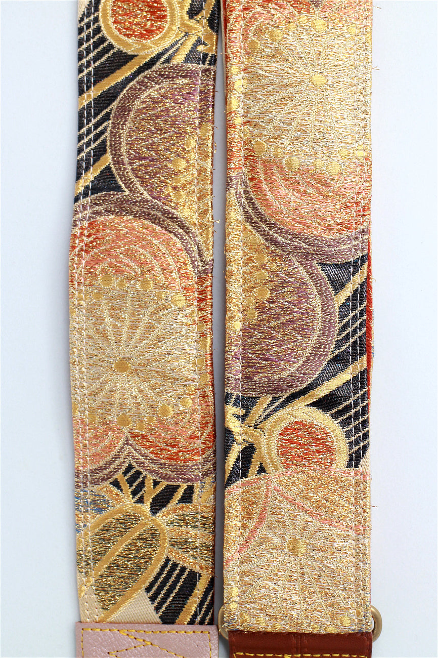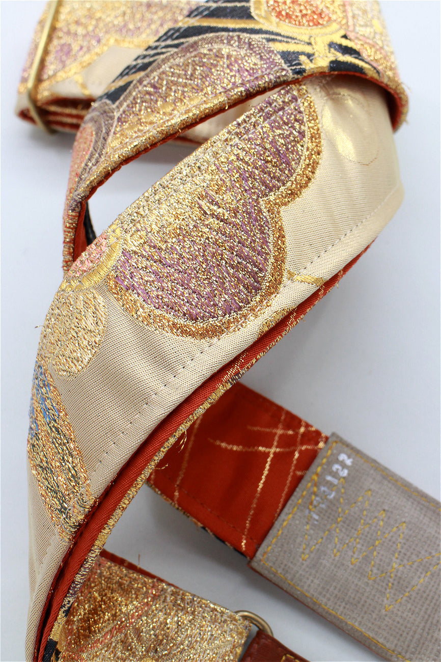 Unique and beautiful guitar strap [SC722122] - hand made in Japan from vintage silk kimono, leather and brass