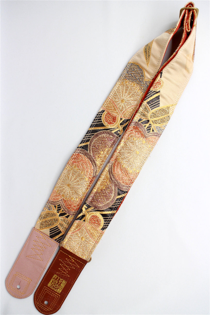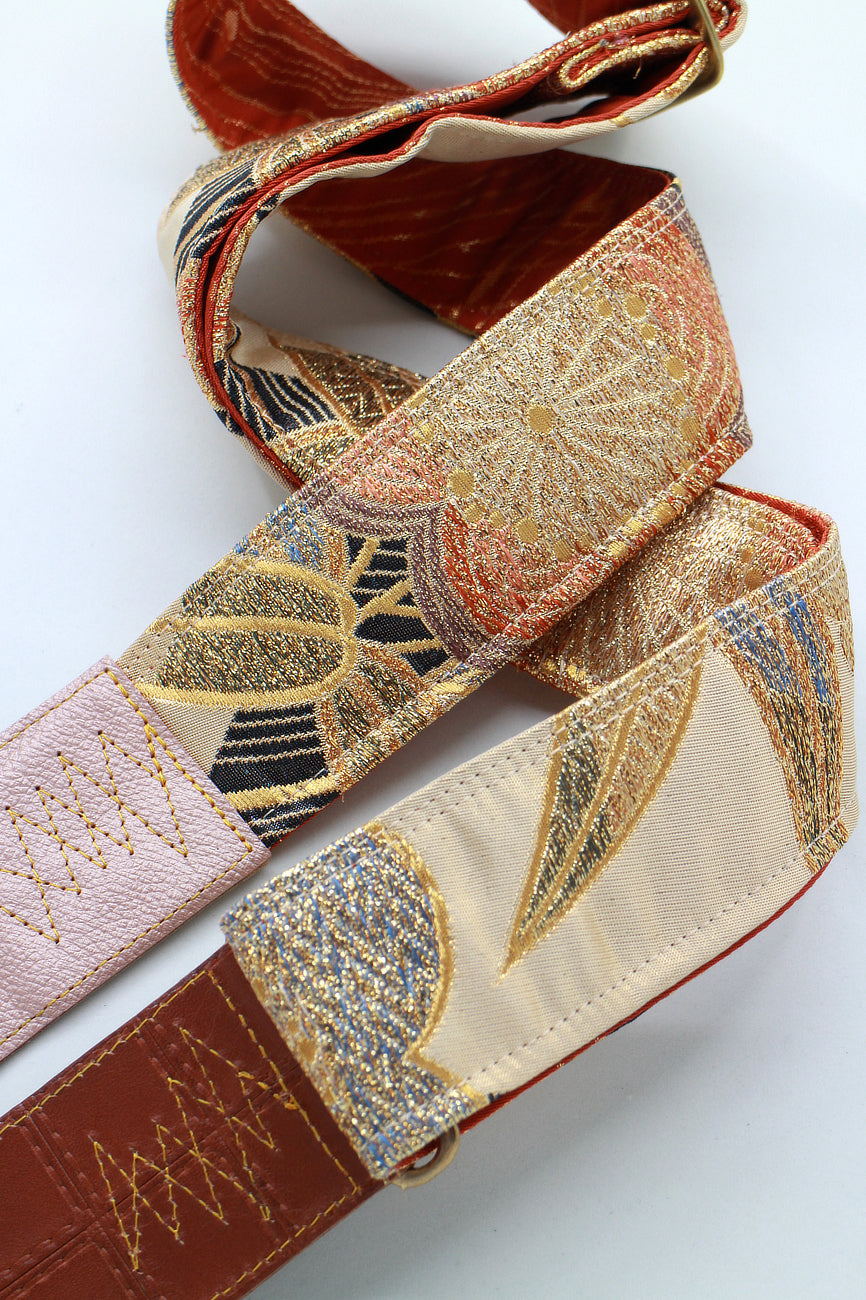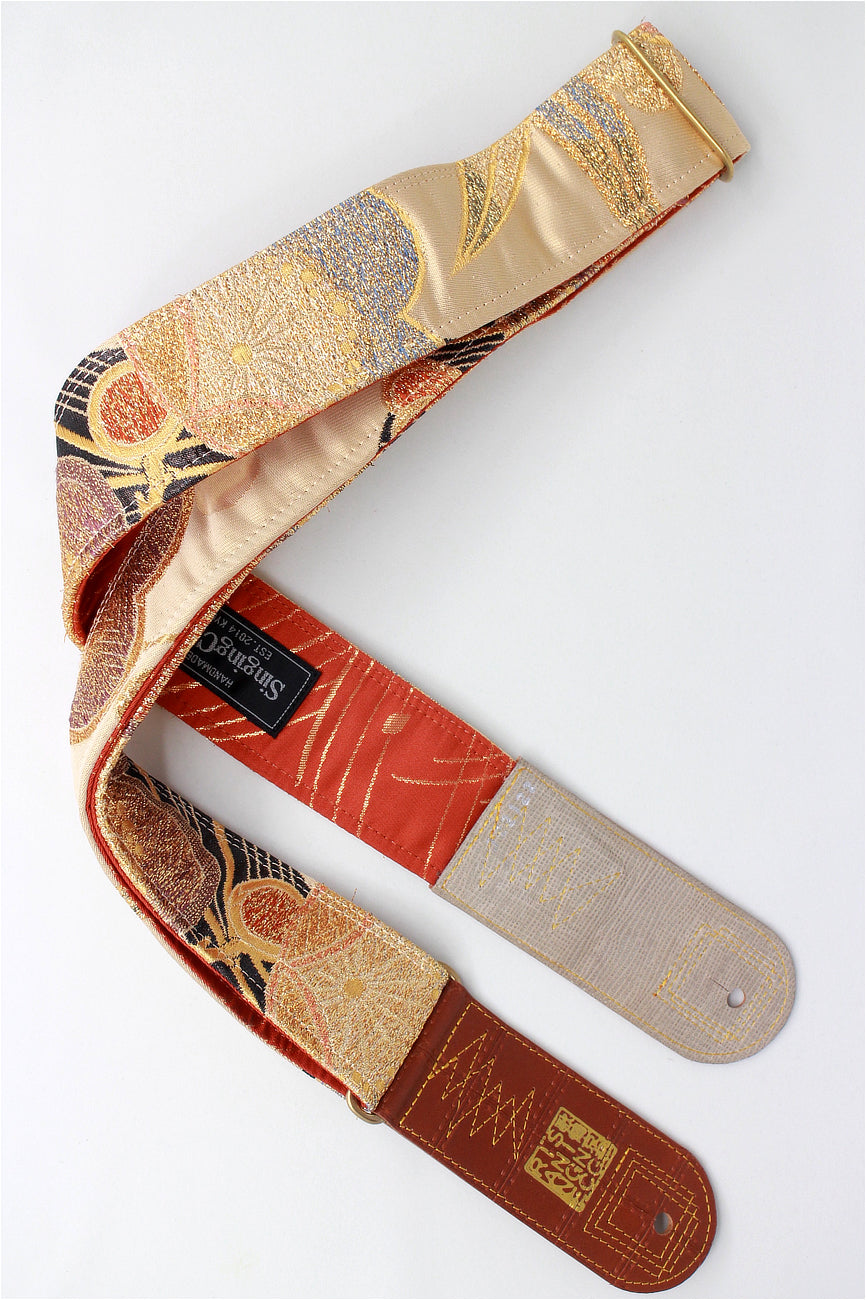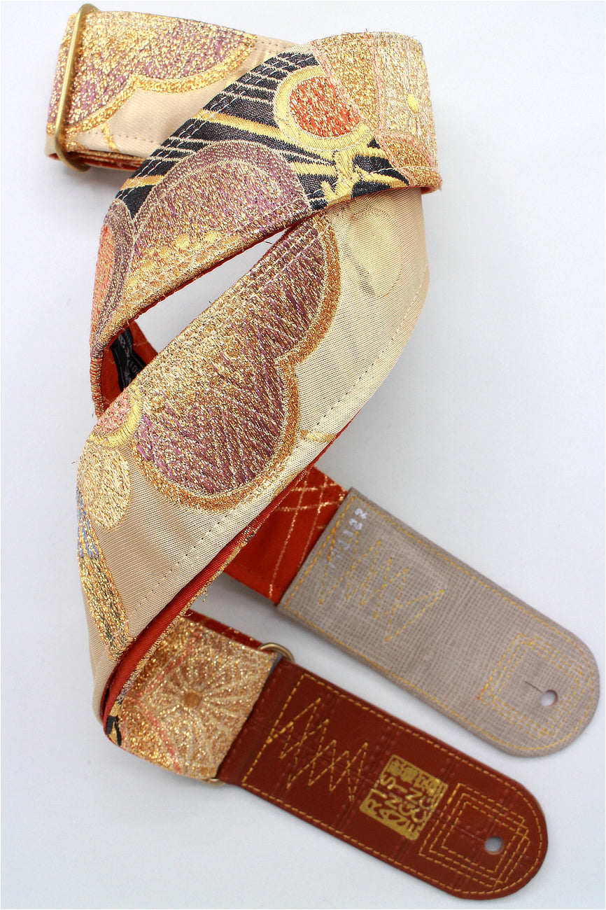 Unique and beautiful guitar strap [SC722122] - hand made in Japan from vintage silk kimono, leather and brass