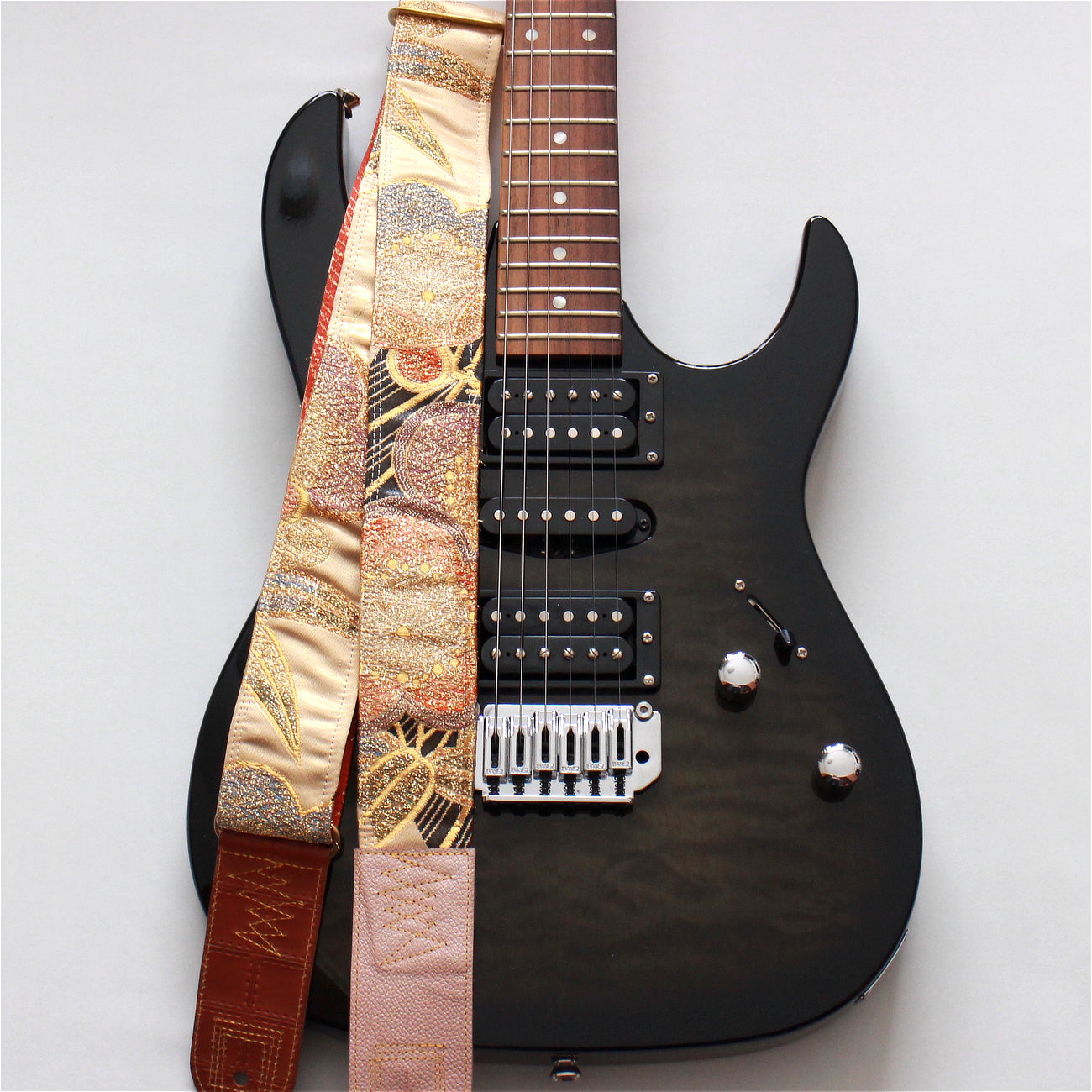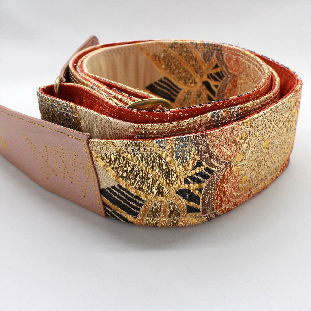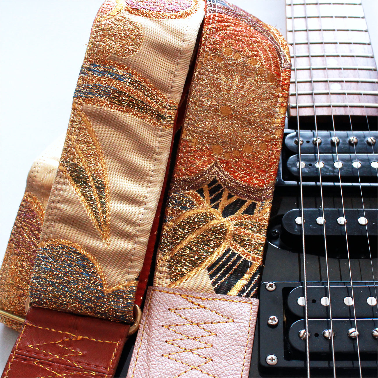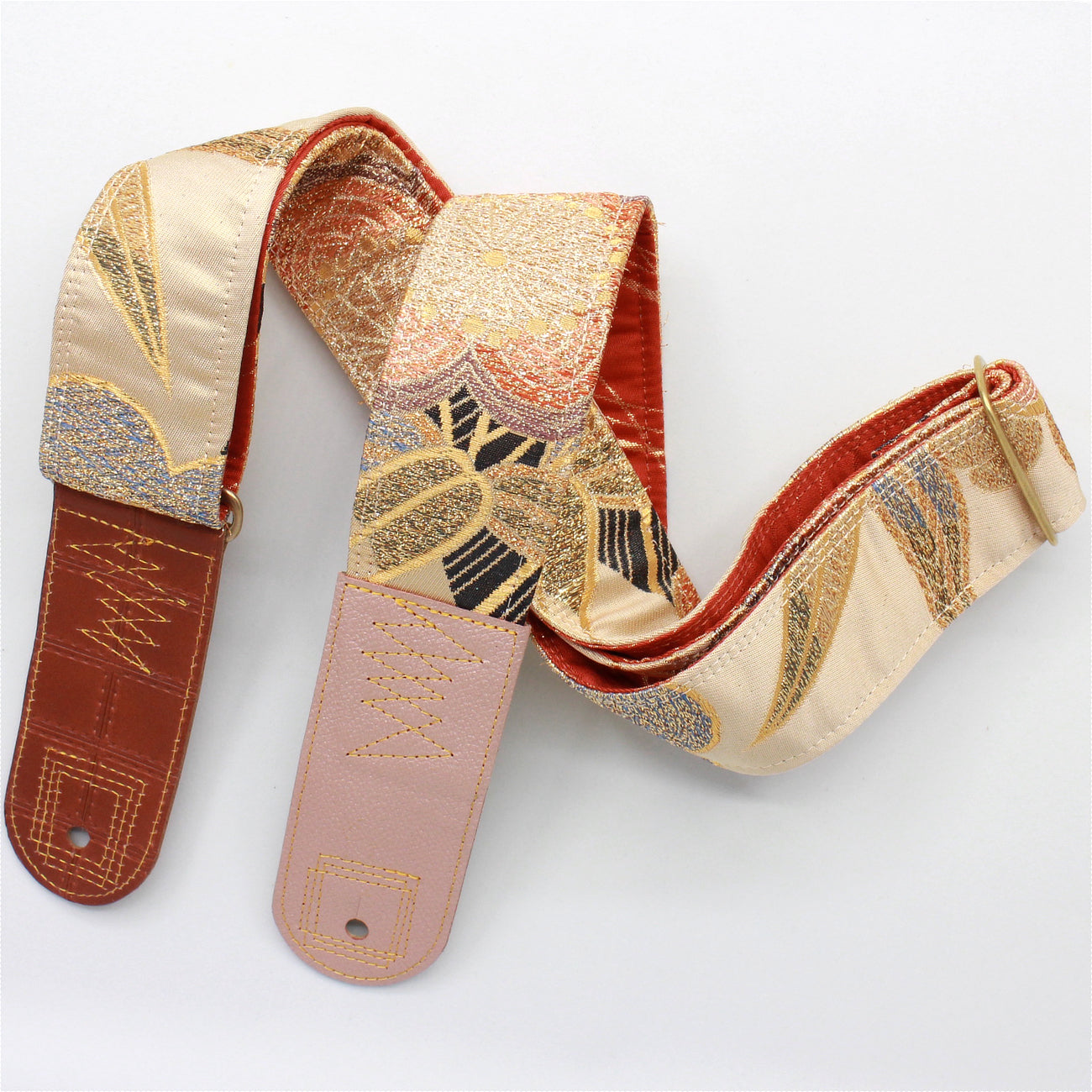 Unique and beautiful guitar strap [SC722122] - hand made in Japan from vintage silk kimono, leather and brass