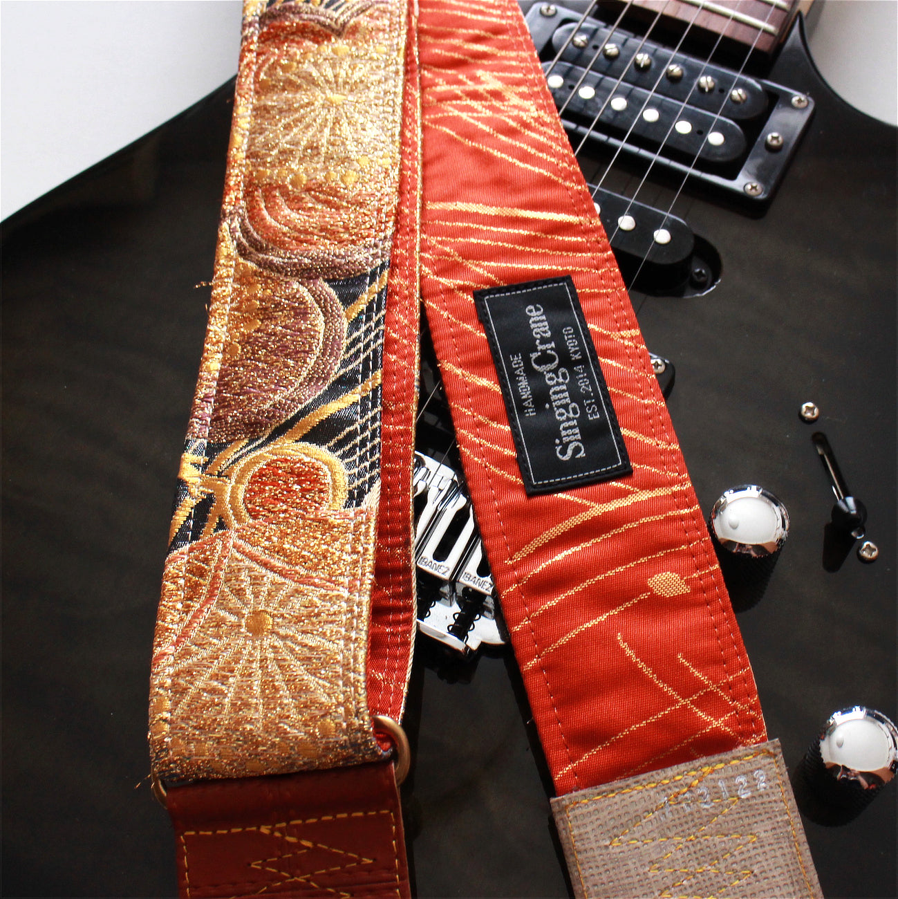 Brand new Singing Crane handmade vintage silk kimono obi guitar strap