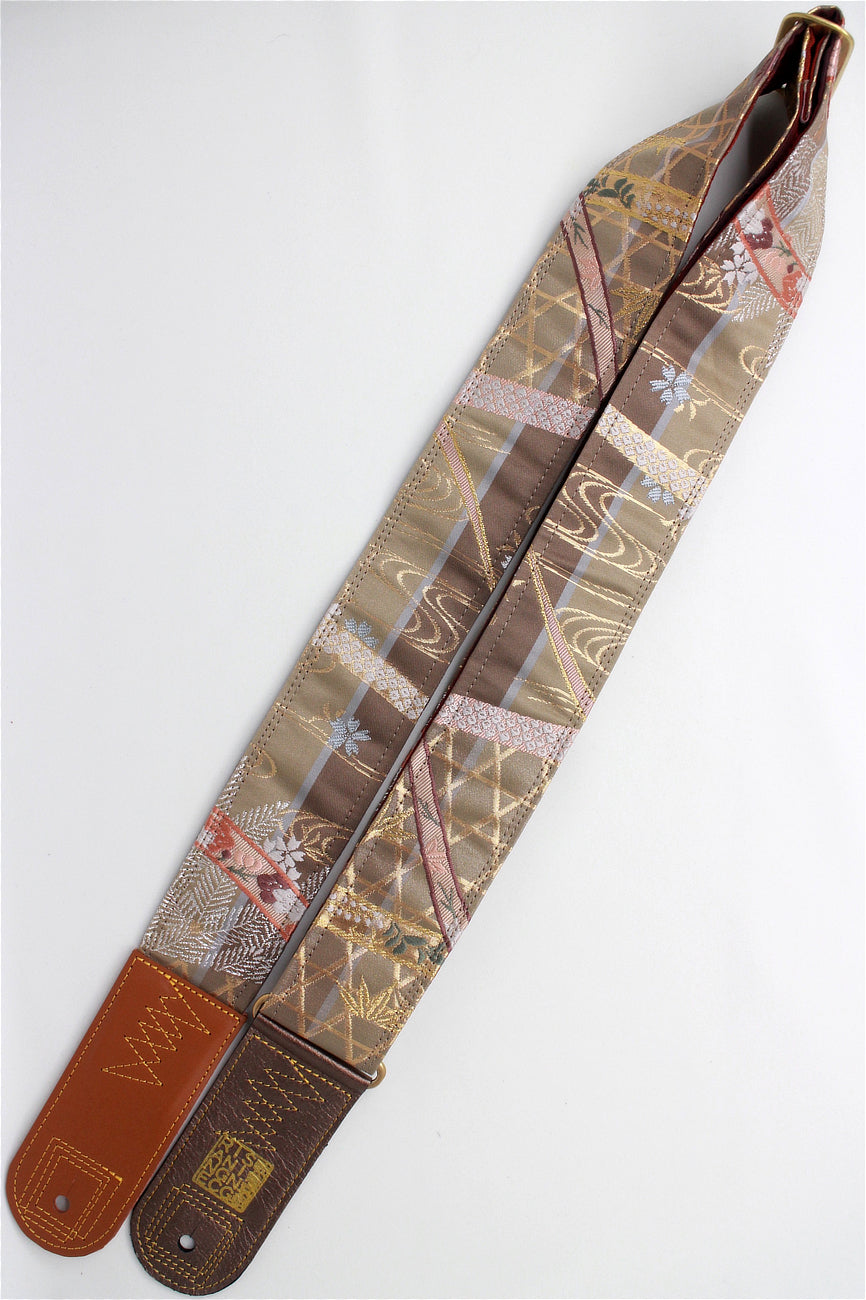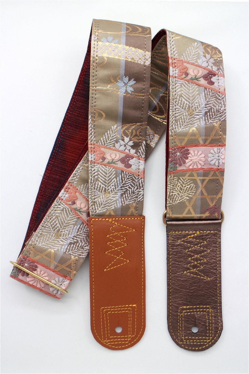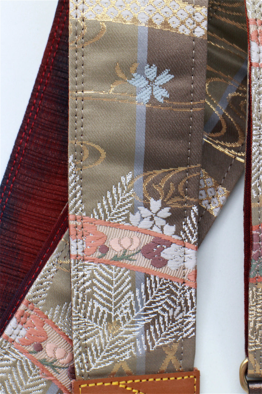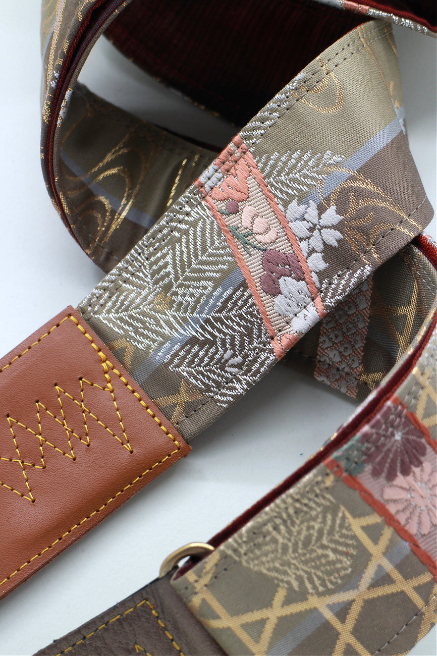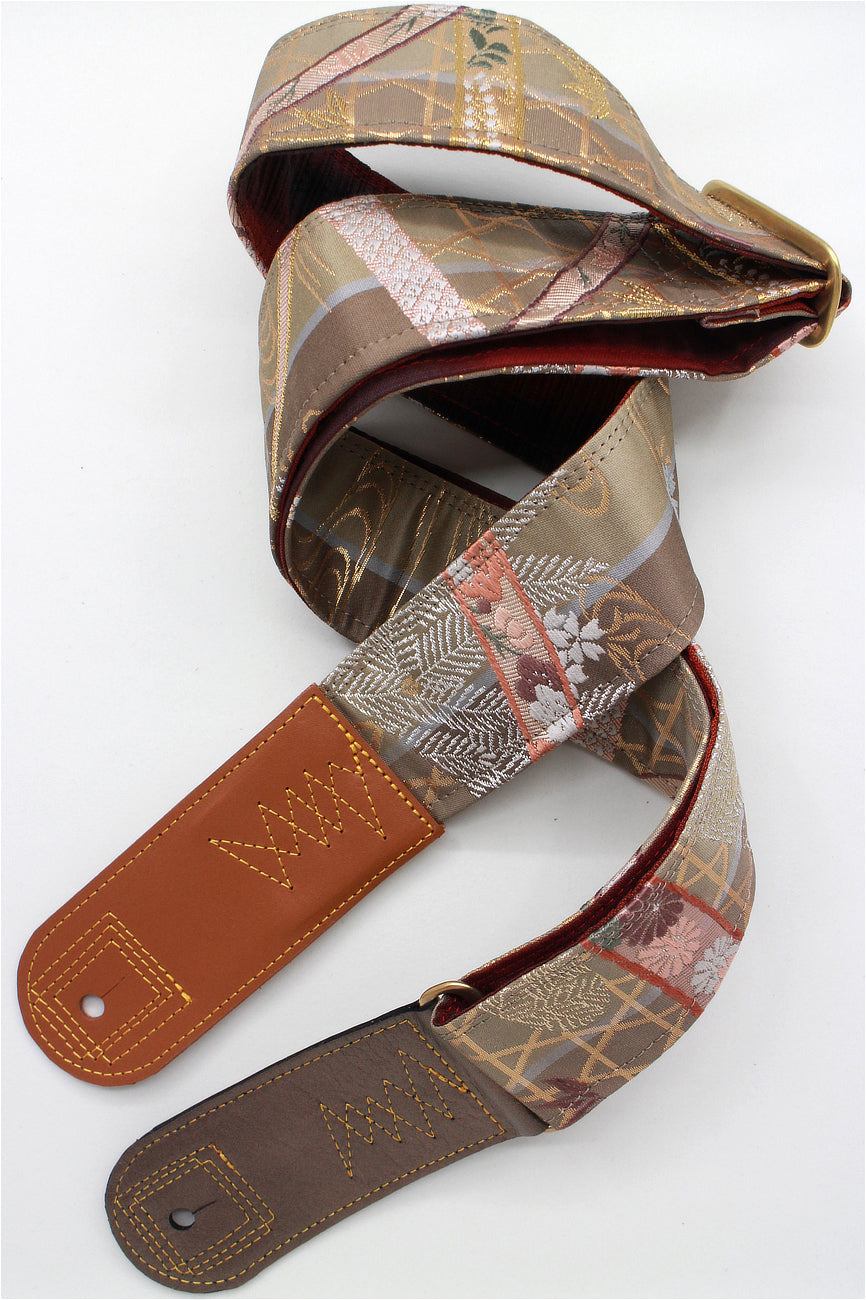 Unique and beautiful guitar strap [SC722141] - hand made in Japan from recycled silk woven kimono obi, leather and brass