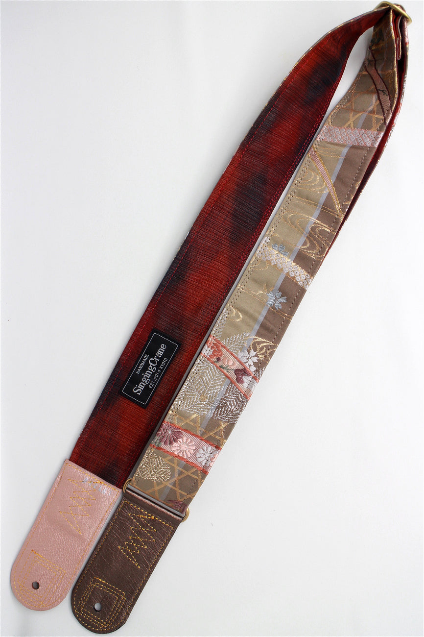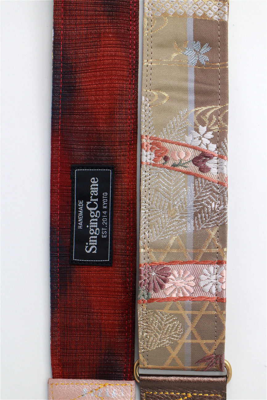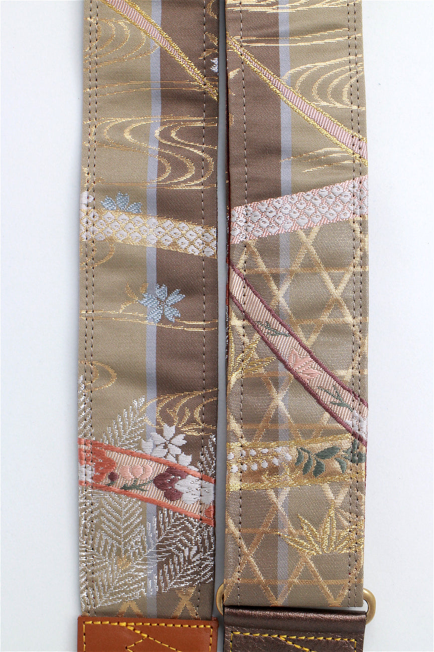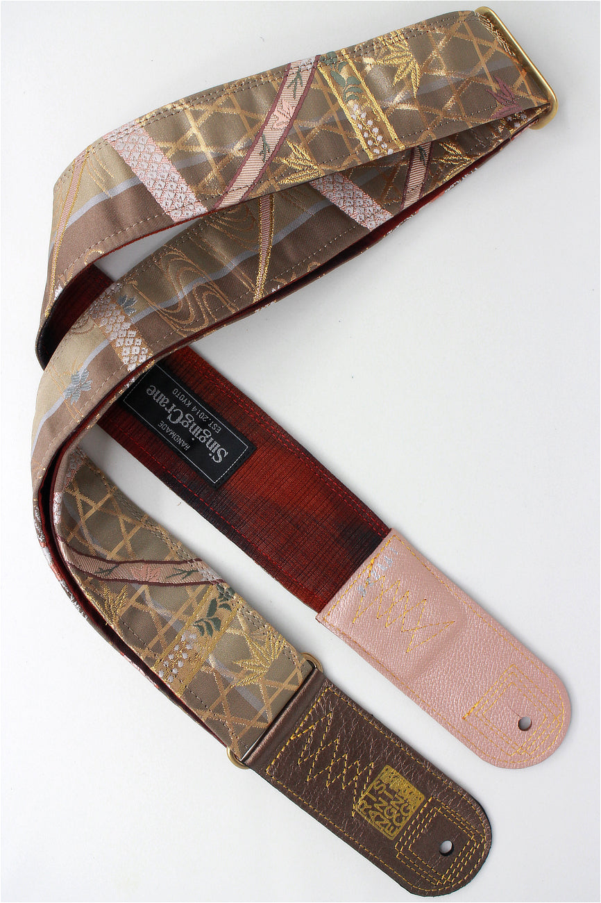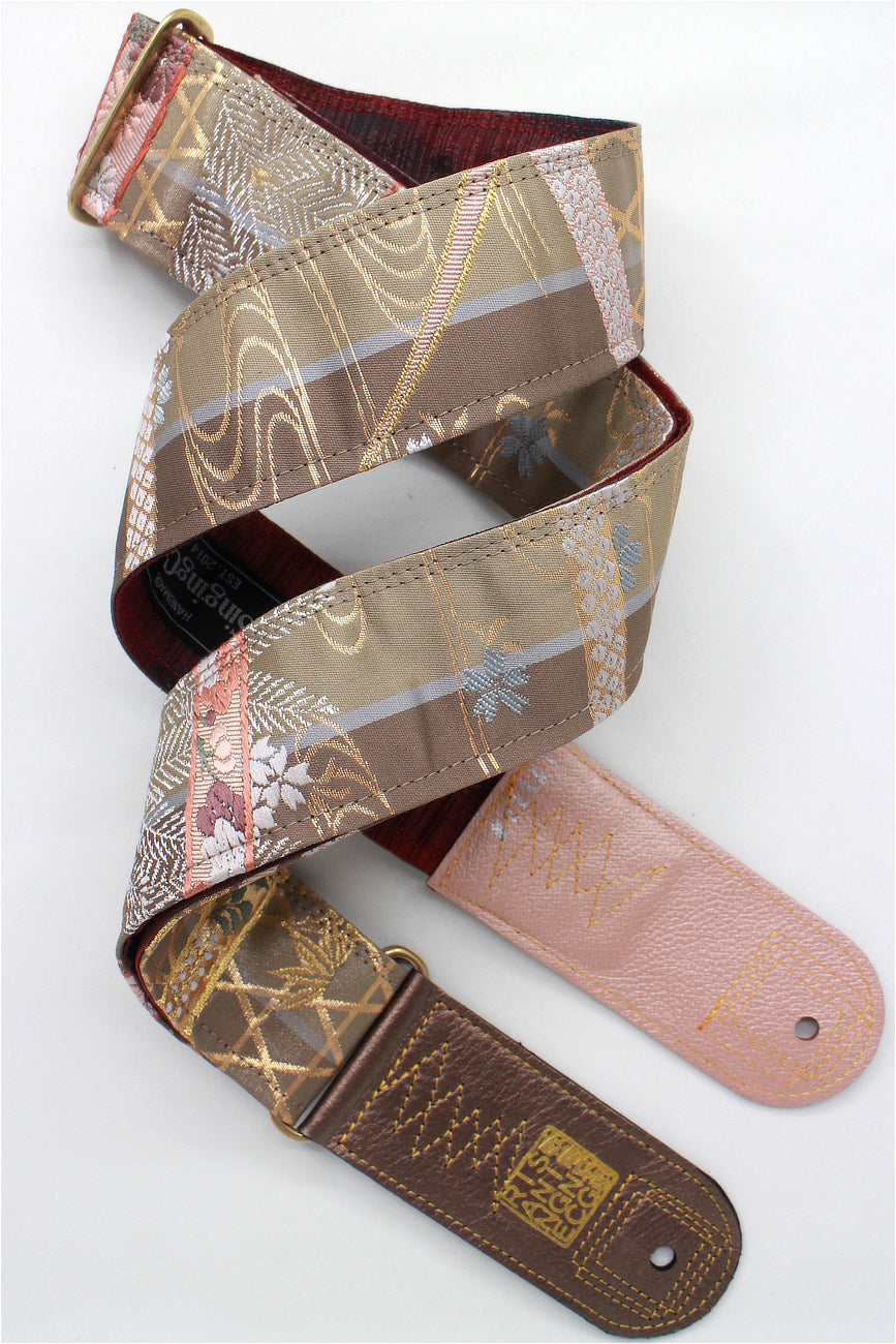 Unique and beautiful guitar strap [SC722141] - hand made in Japan from recycled silk woven kimono obi, leather and brass