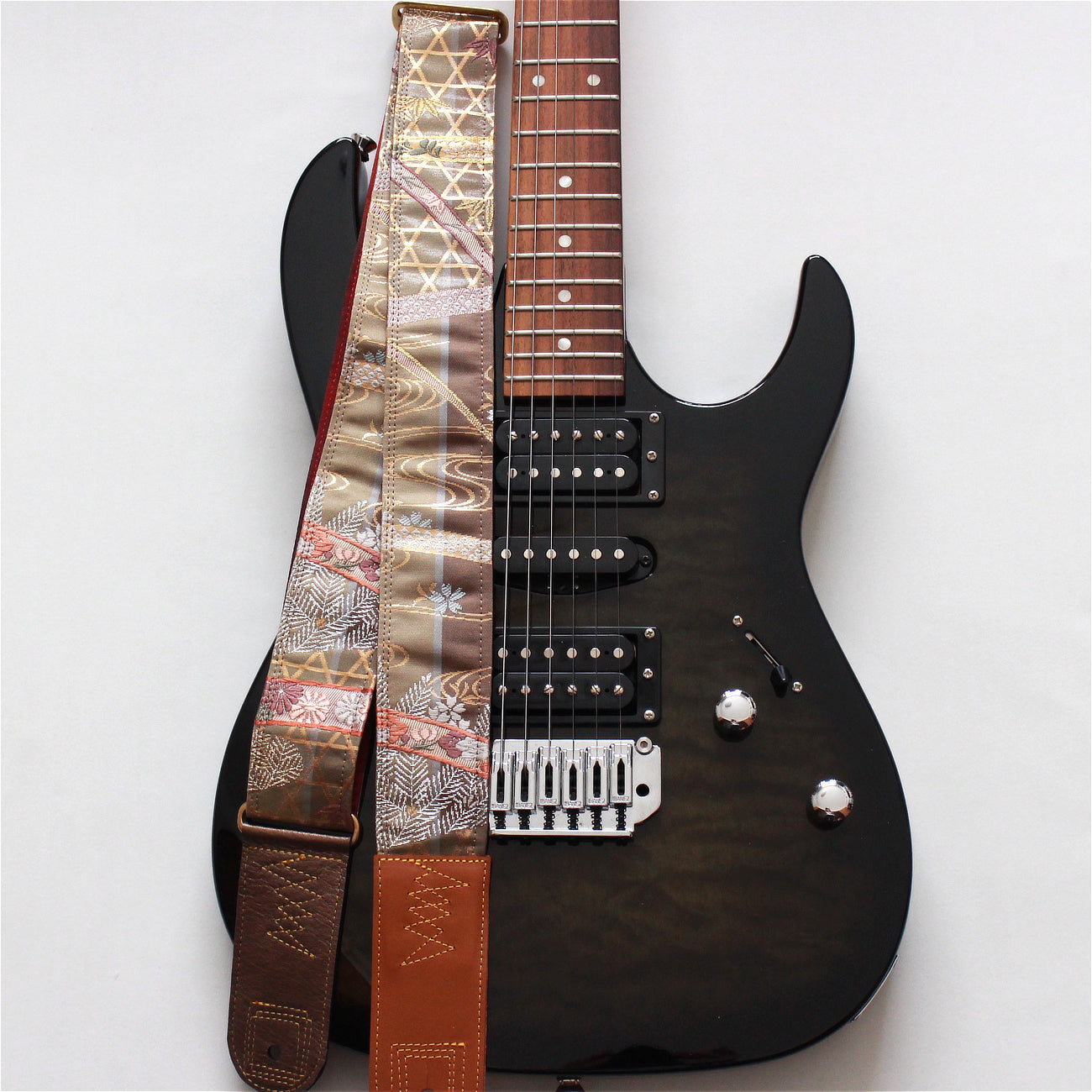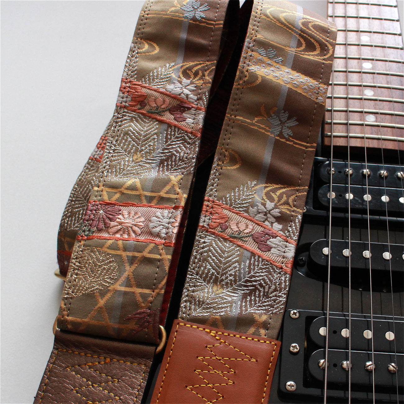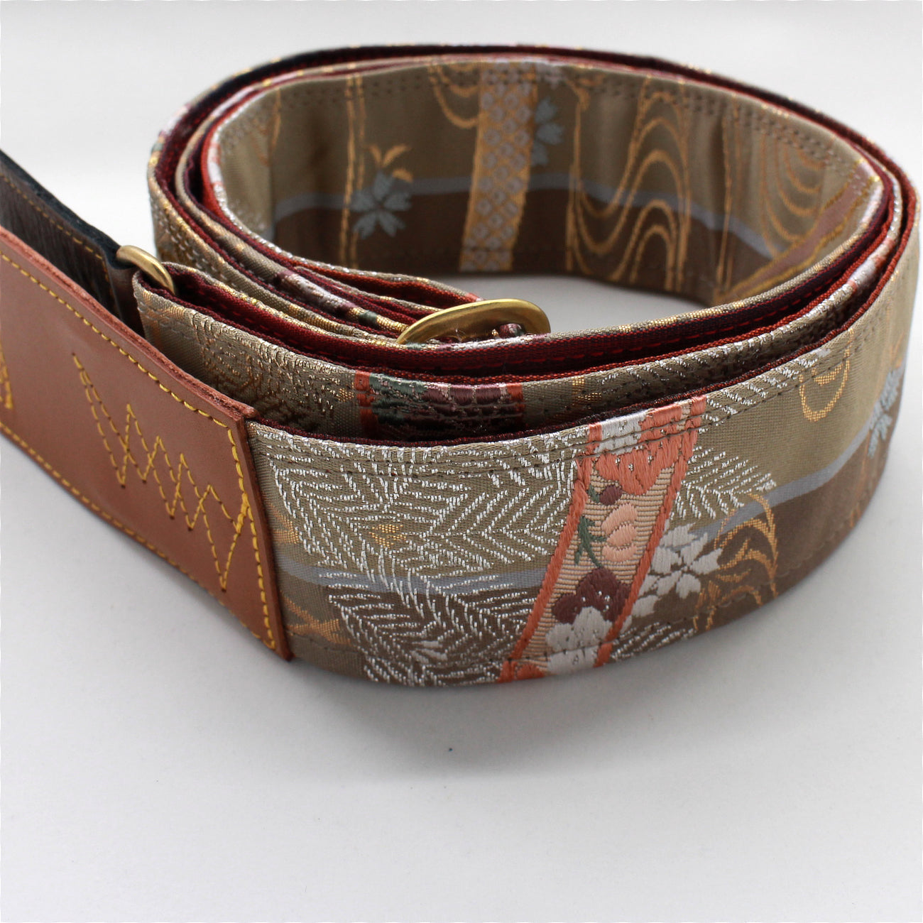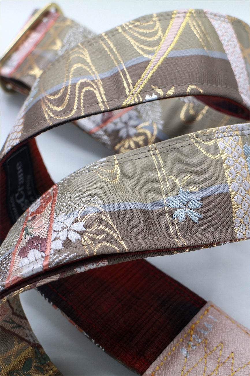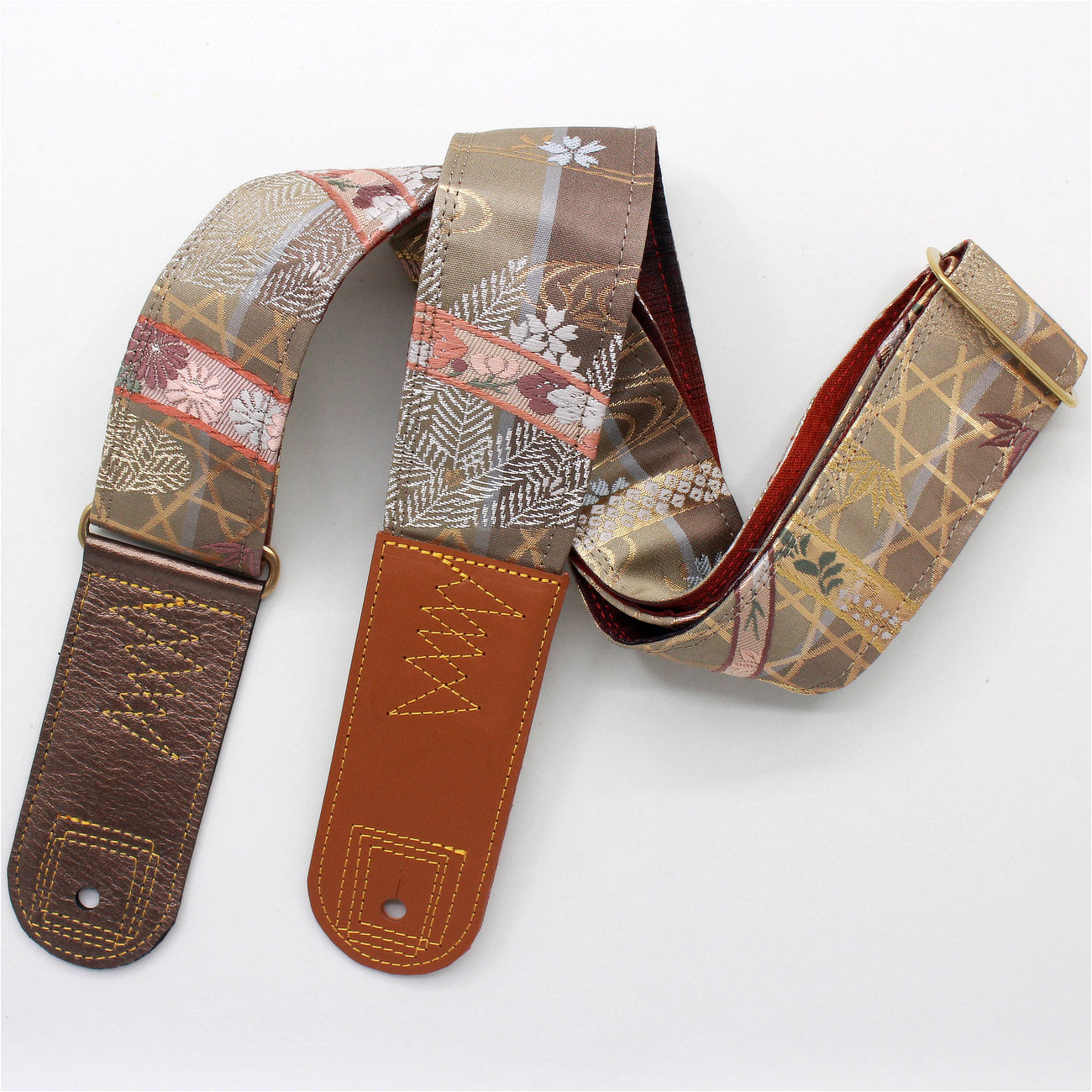 Unique and beautiful guitar strap [SC722141] - hand made in Japan from recycled silk woven kimono obi, leather and brass