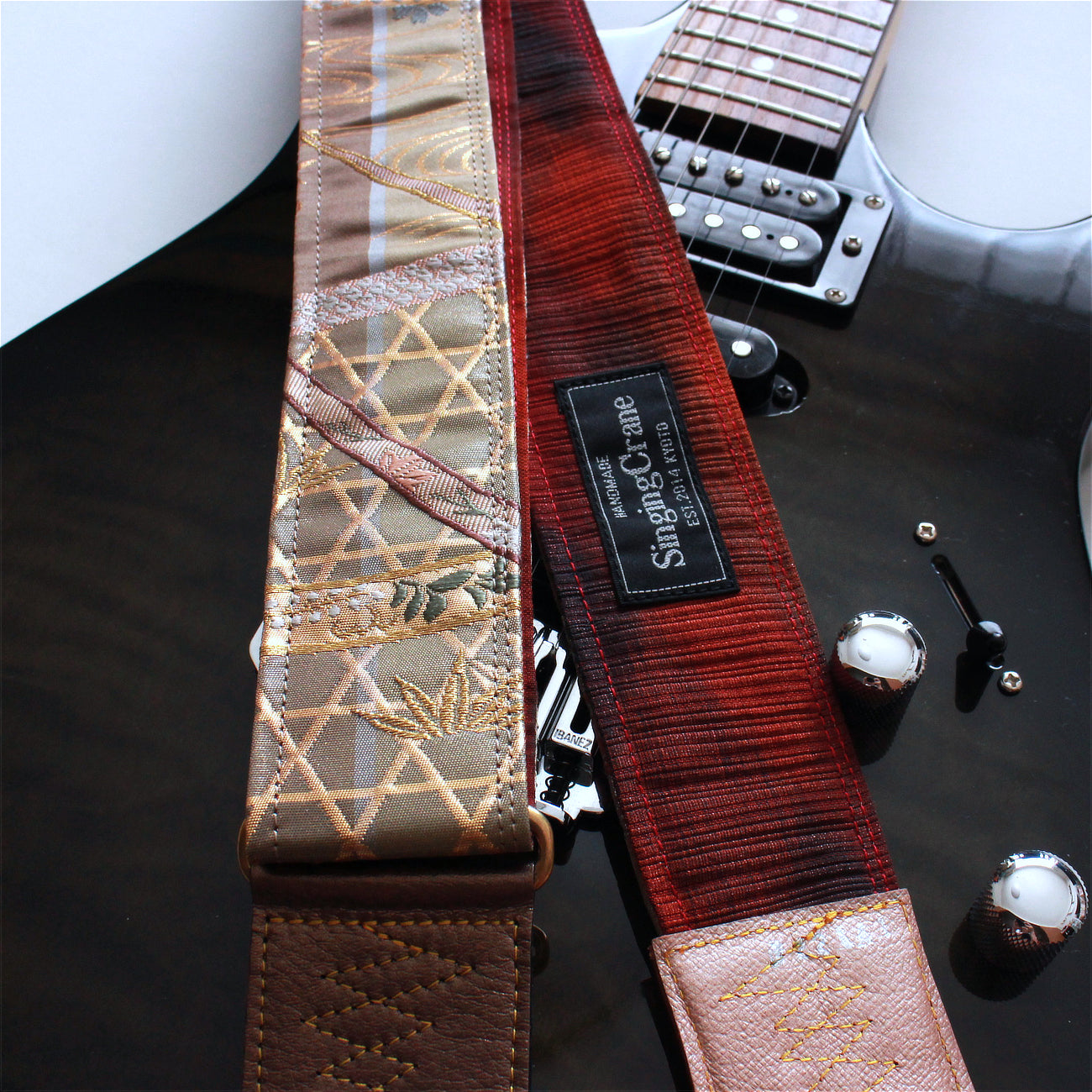 Brand new Singing Crane handmade silk kimono obi guitar strap
