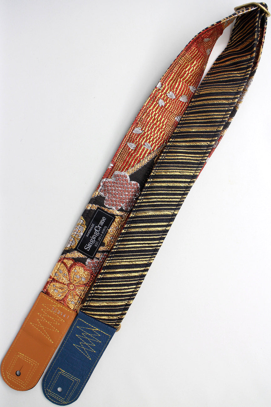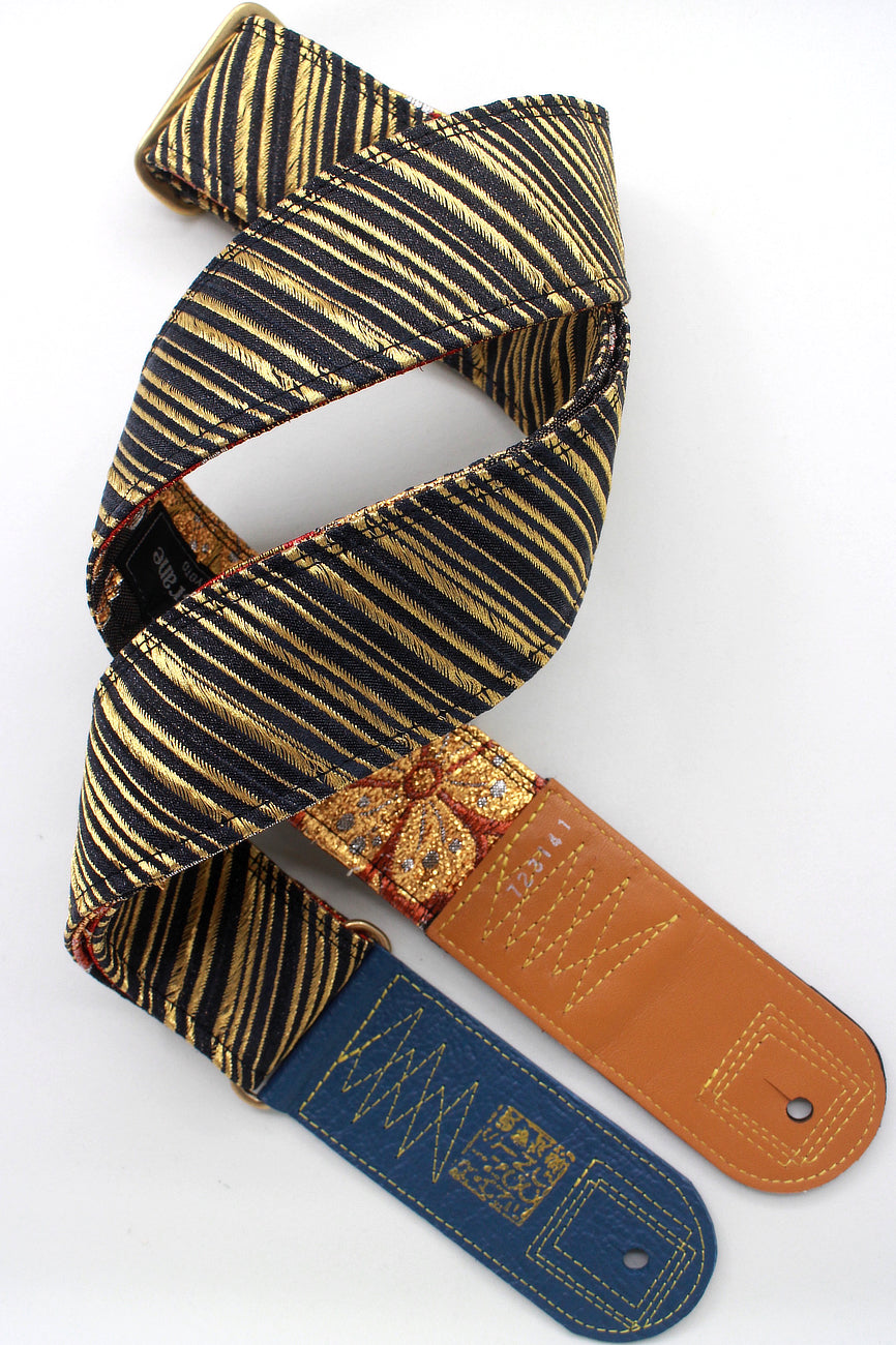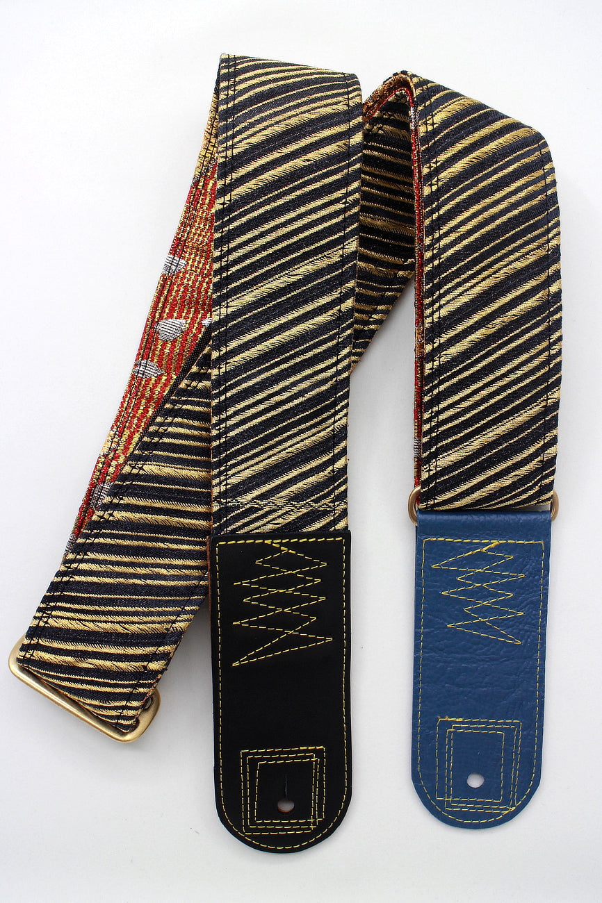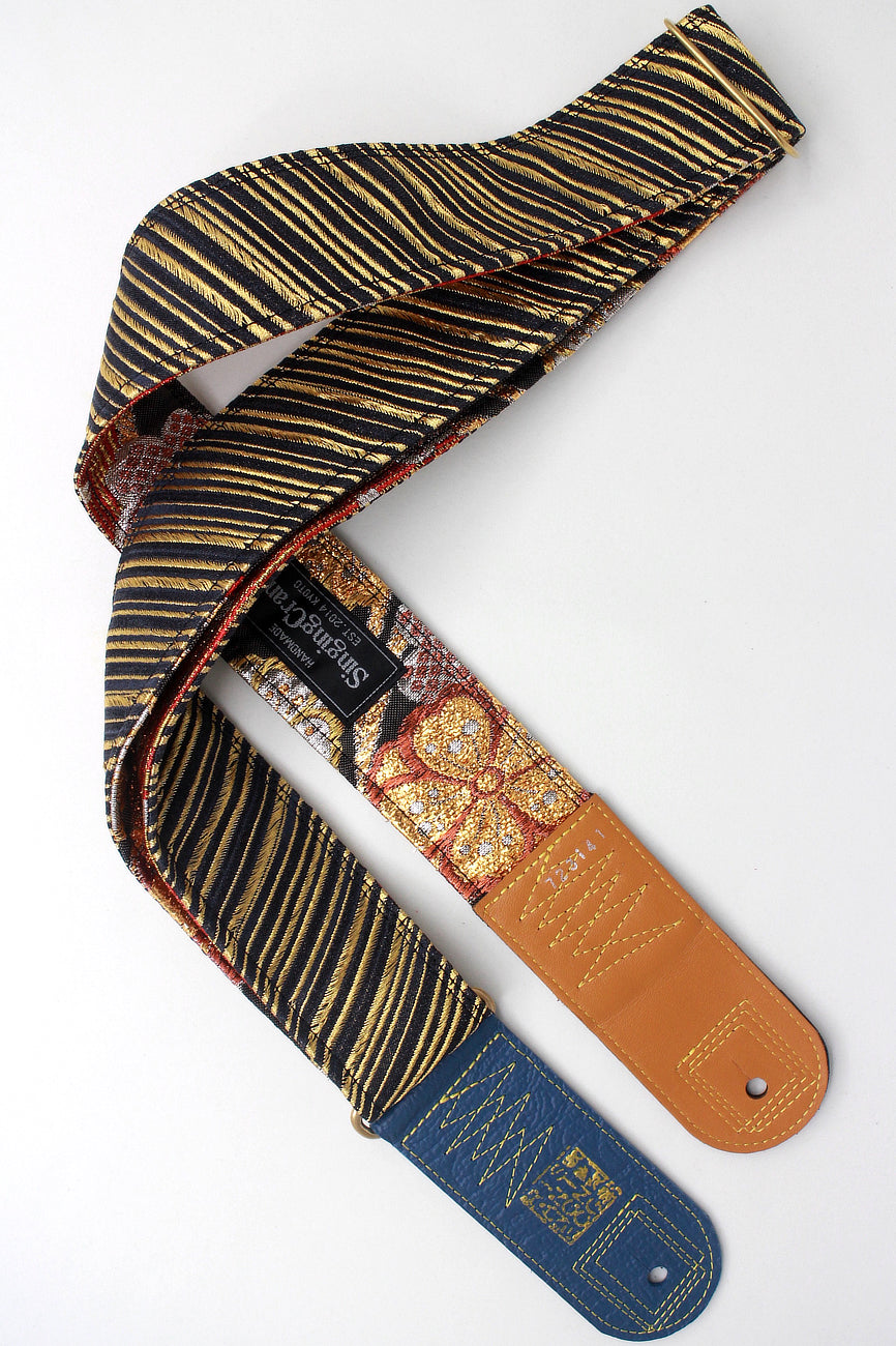Unique and beautiful guitar strap [SC723141] - hand made in Japan from recycled silk woven kimono obi, leather and brass