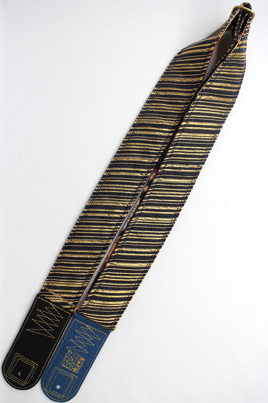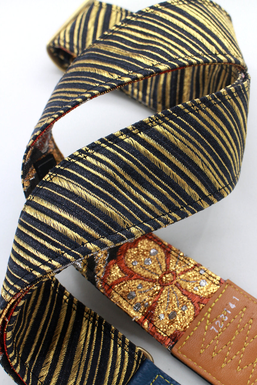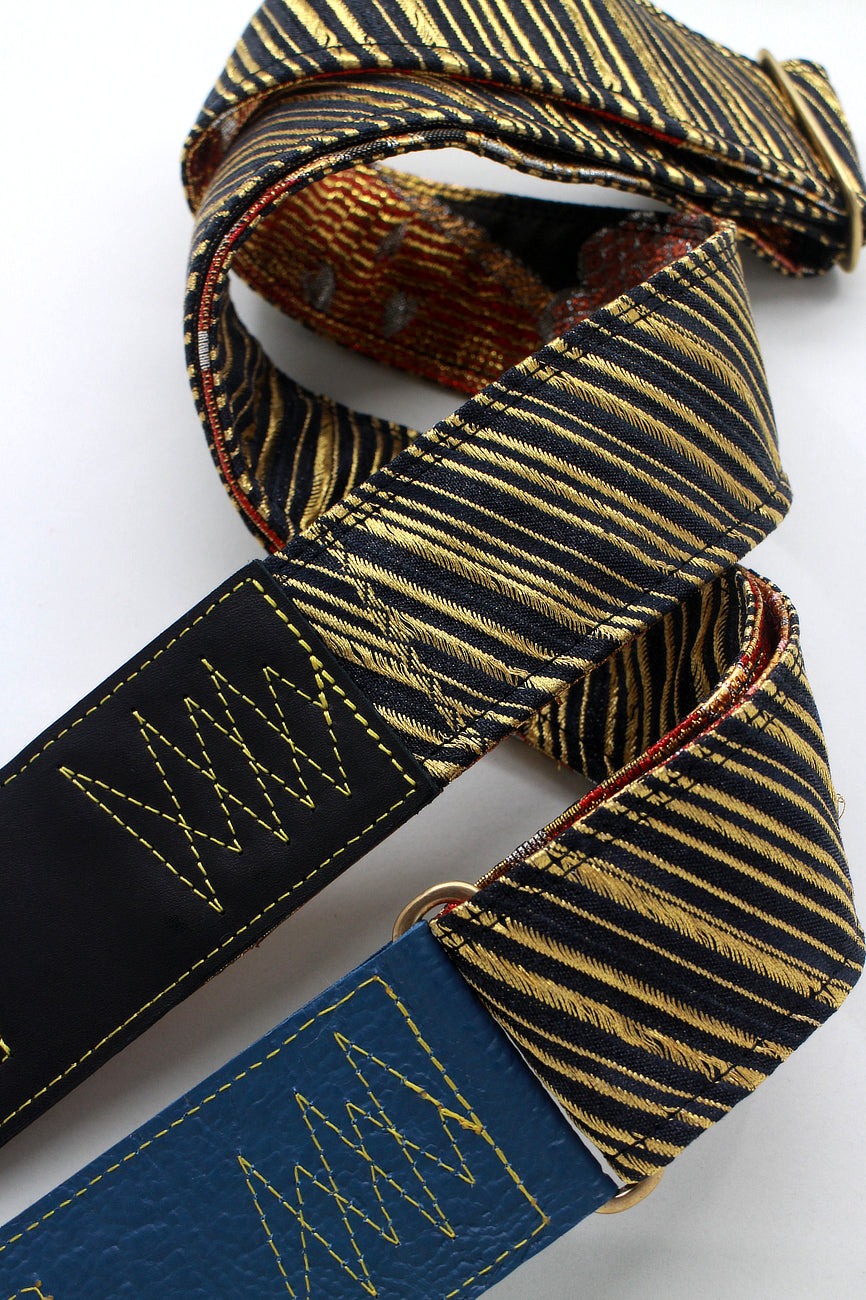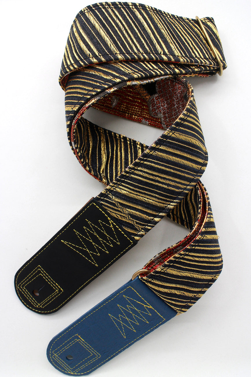 Unique and beautiful guitar strap [SC723141] - hand made in Japan from recycled silk woven kimono obi, leather and brass