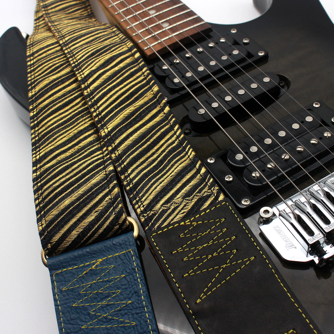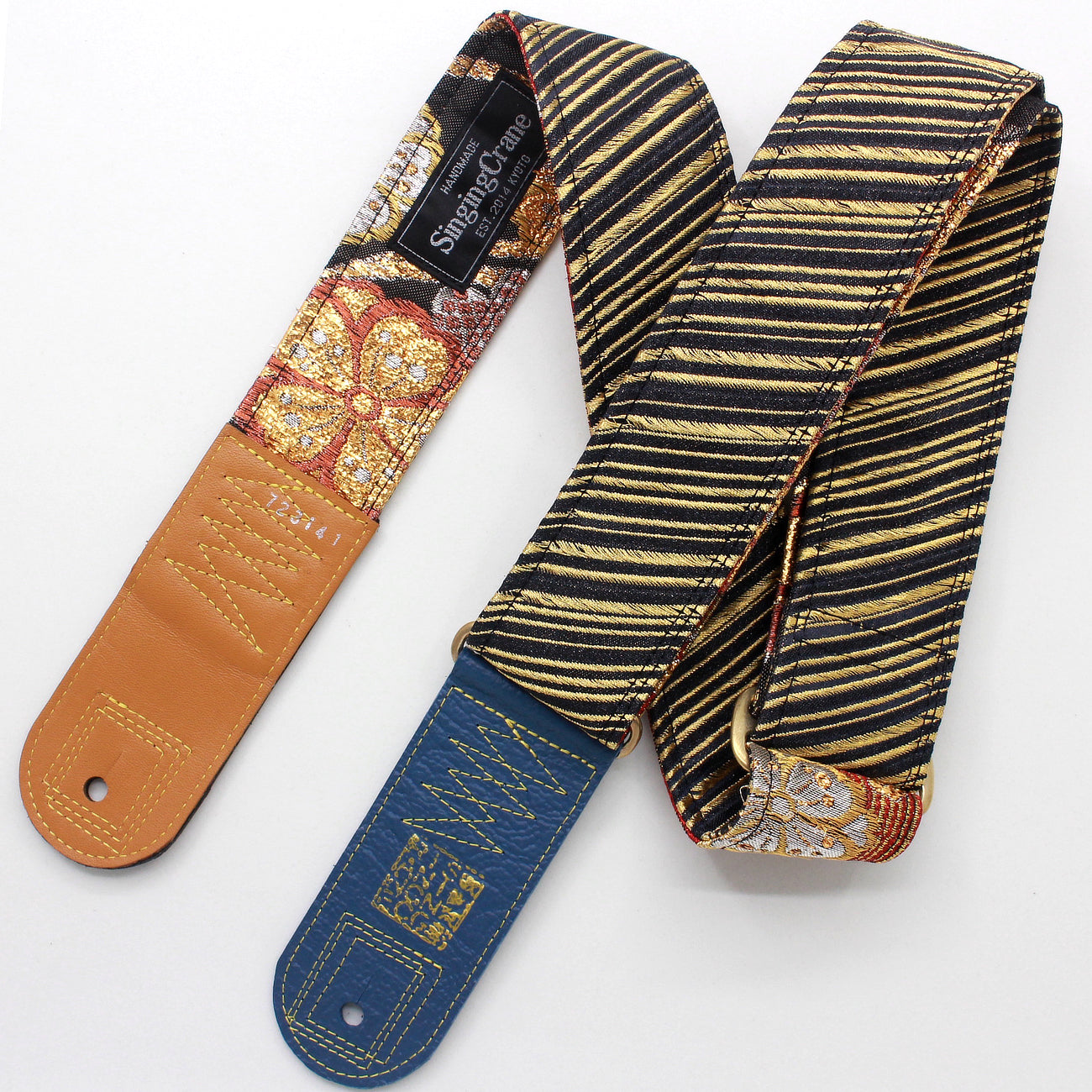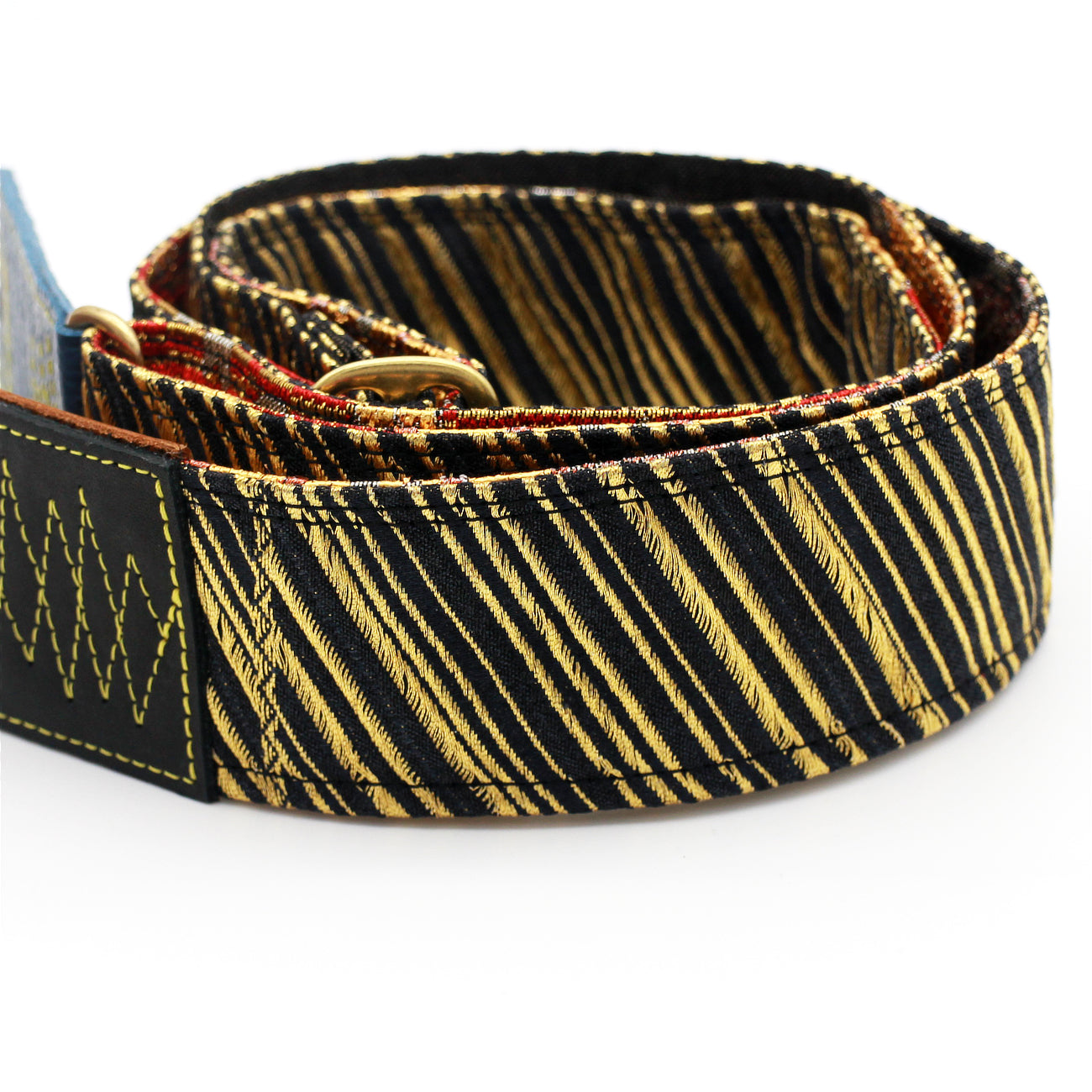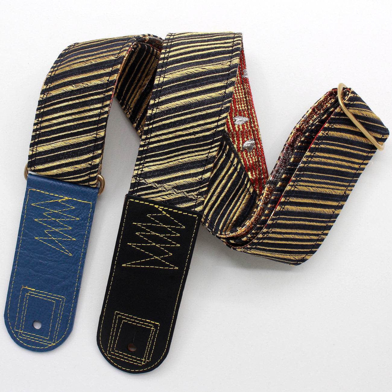 Unique and beautiful guitar strap [SC723141] - hand made in Japan from recycled silk woven kimono obi, leather and brass