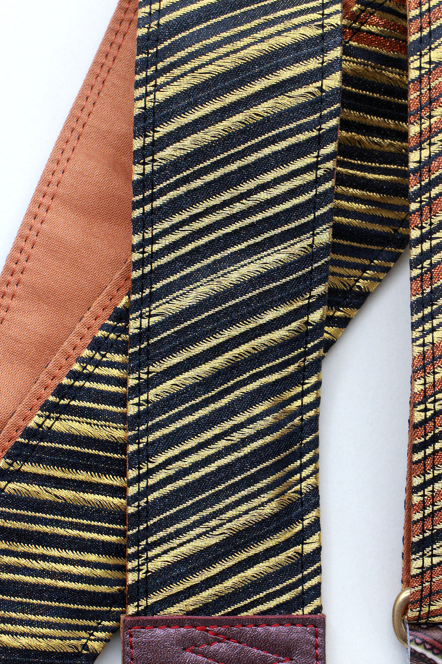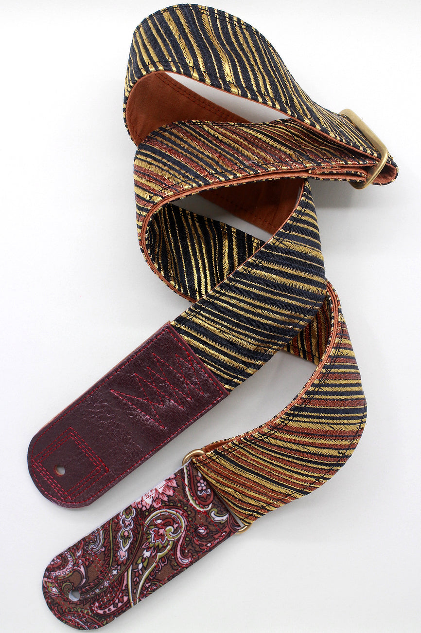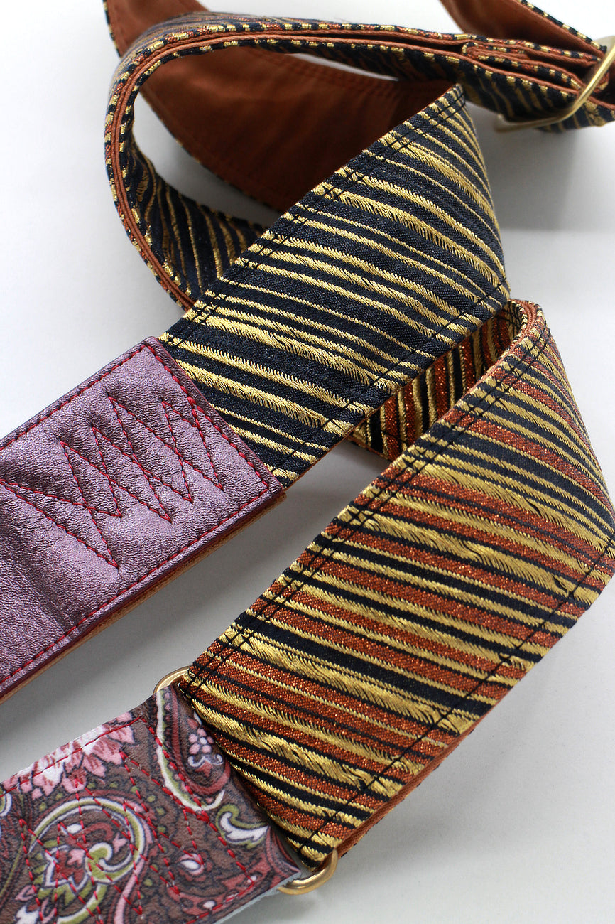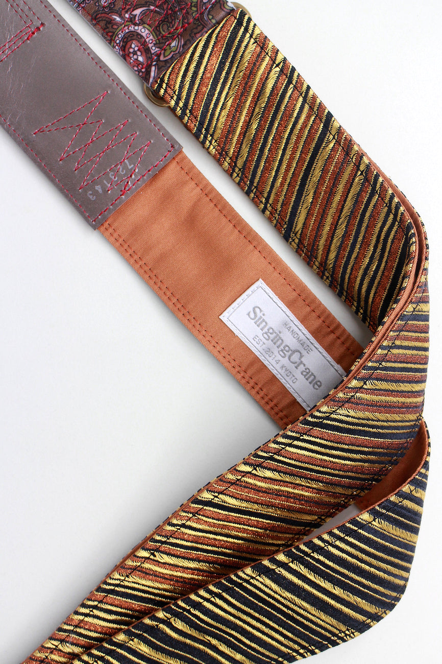 Unique and beautiful guitar strap [SC723143] - hand made in Japan from recycled silk woven kimono obi, leather and brass